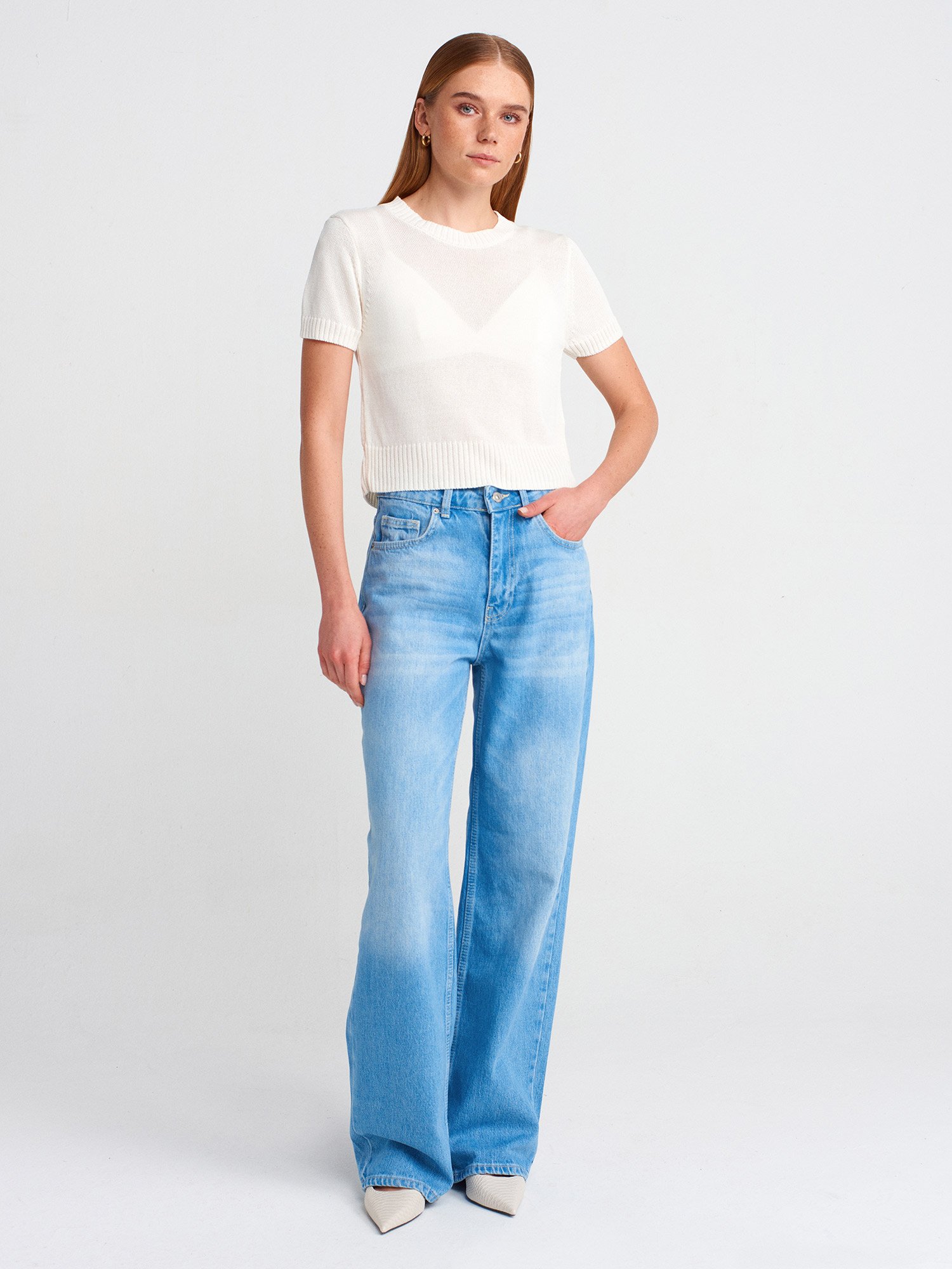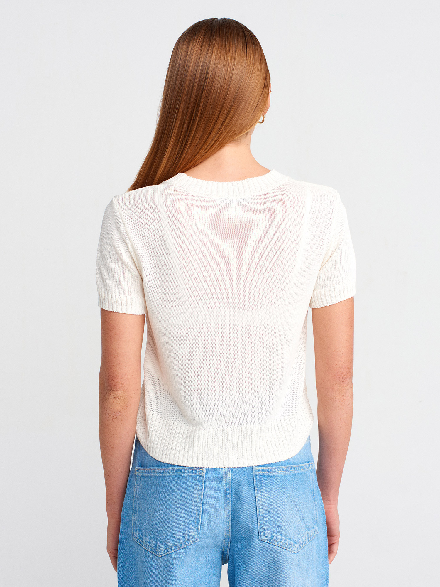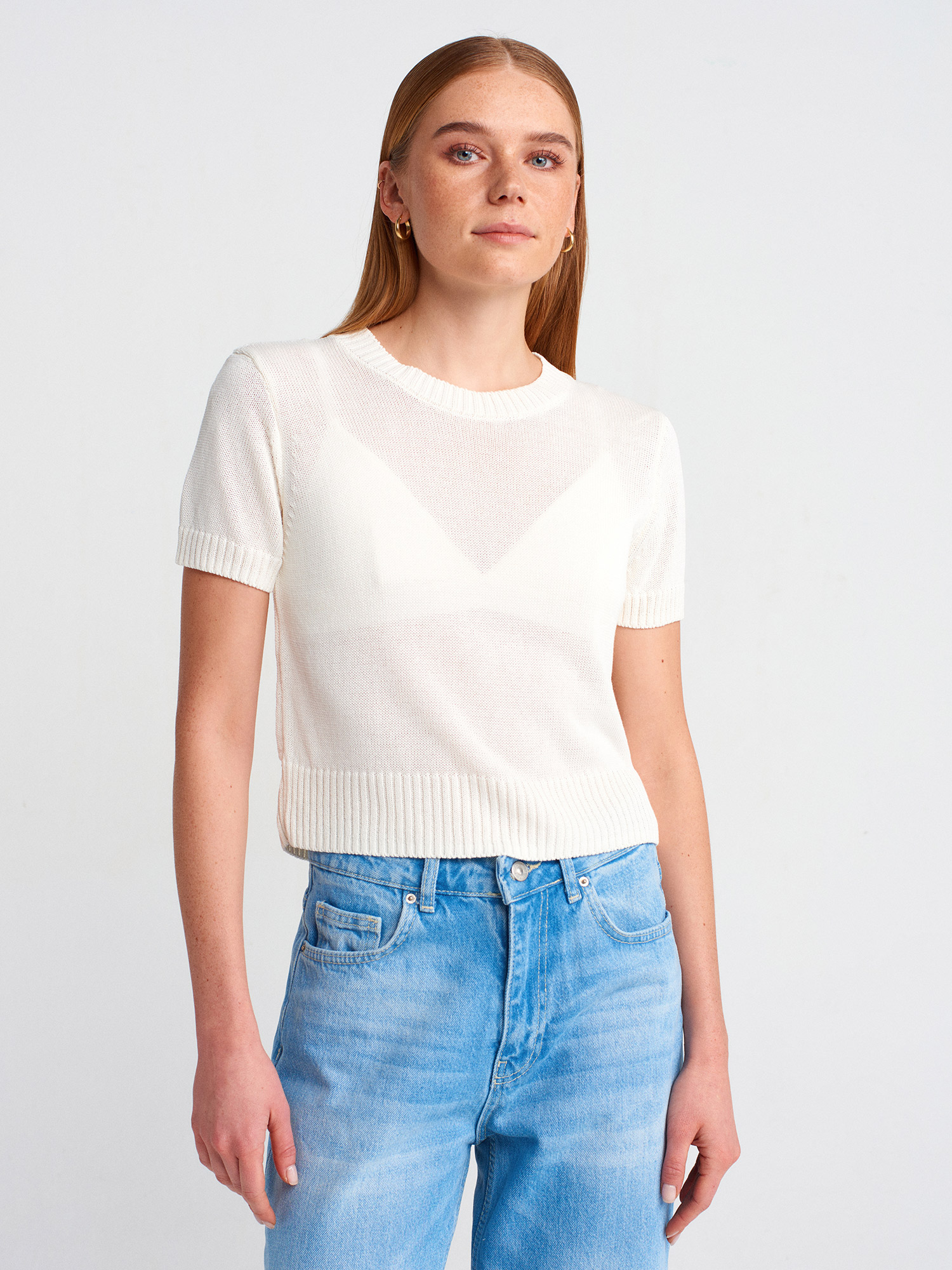 10718 Bisiklet Yaka İnce Dokulu Triko Bluz-Ekru