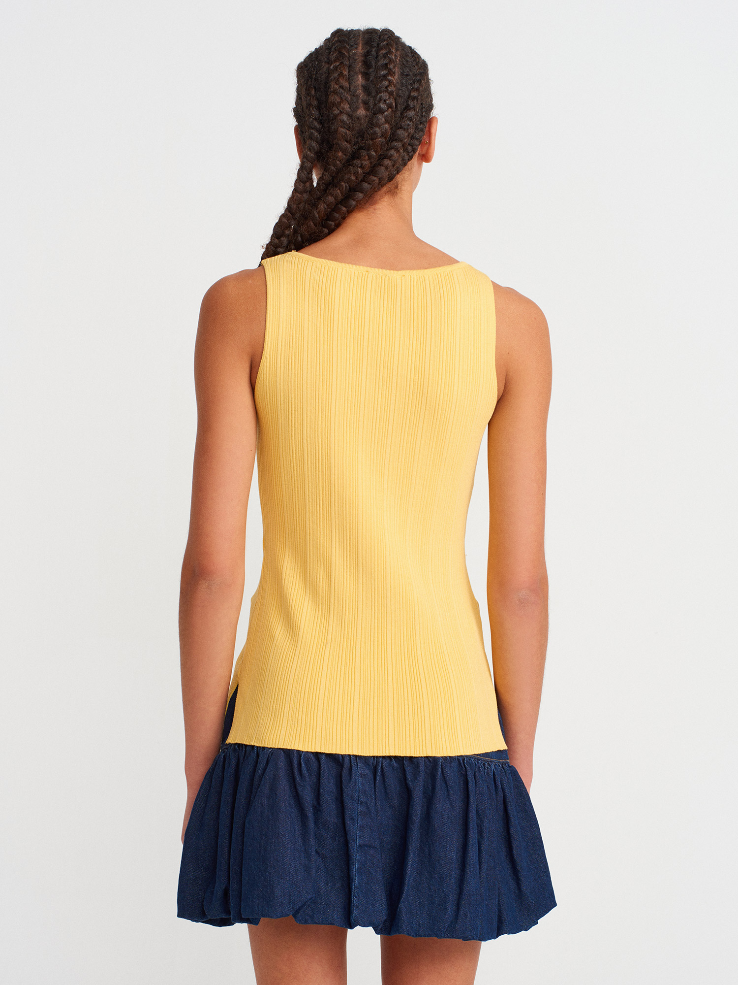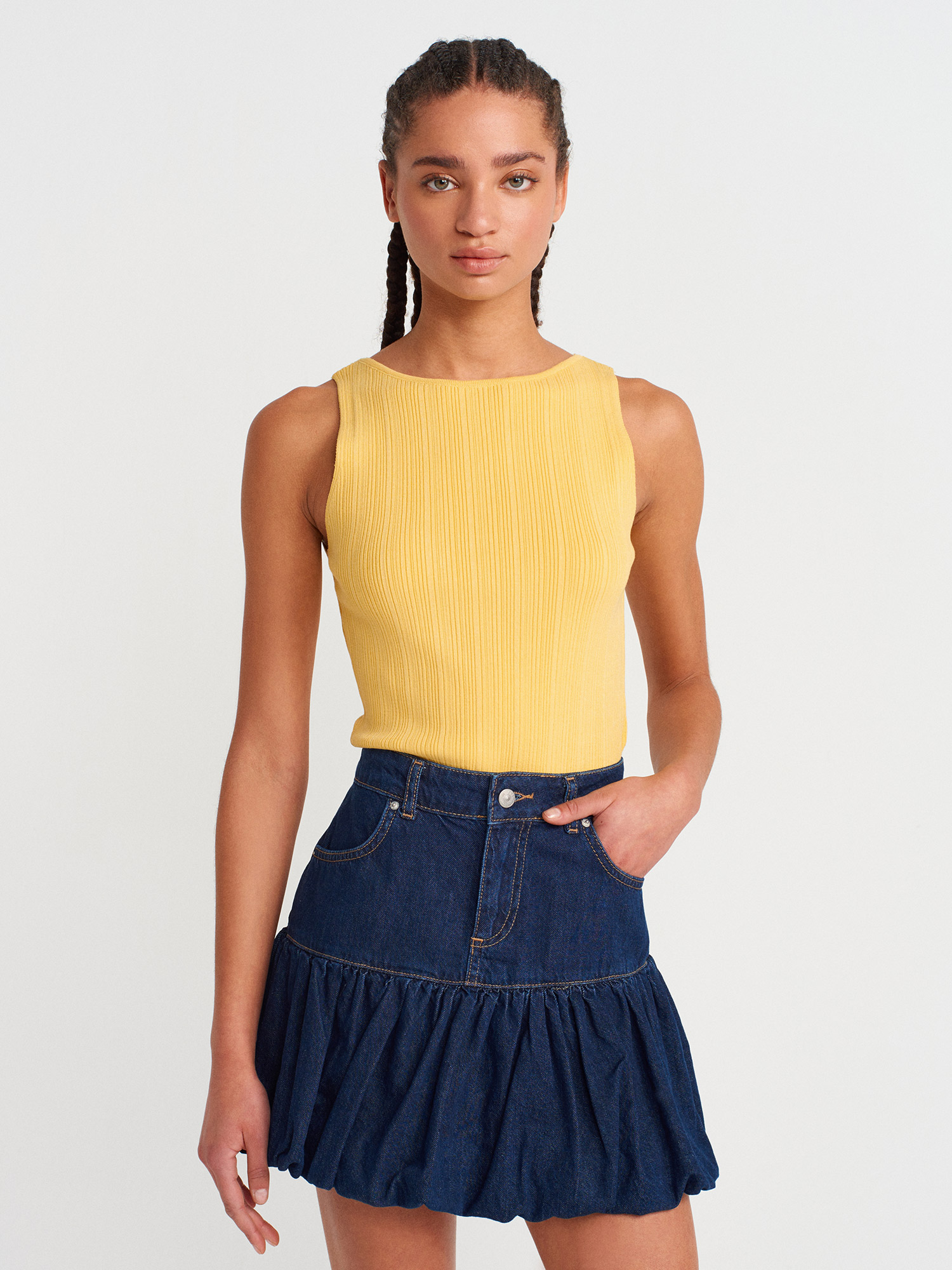 10726 Kayık Yaka Fitilli Triko Bluz-Koyu Sarı