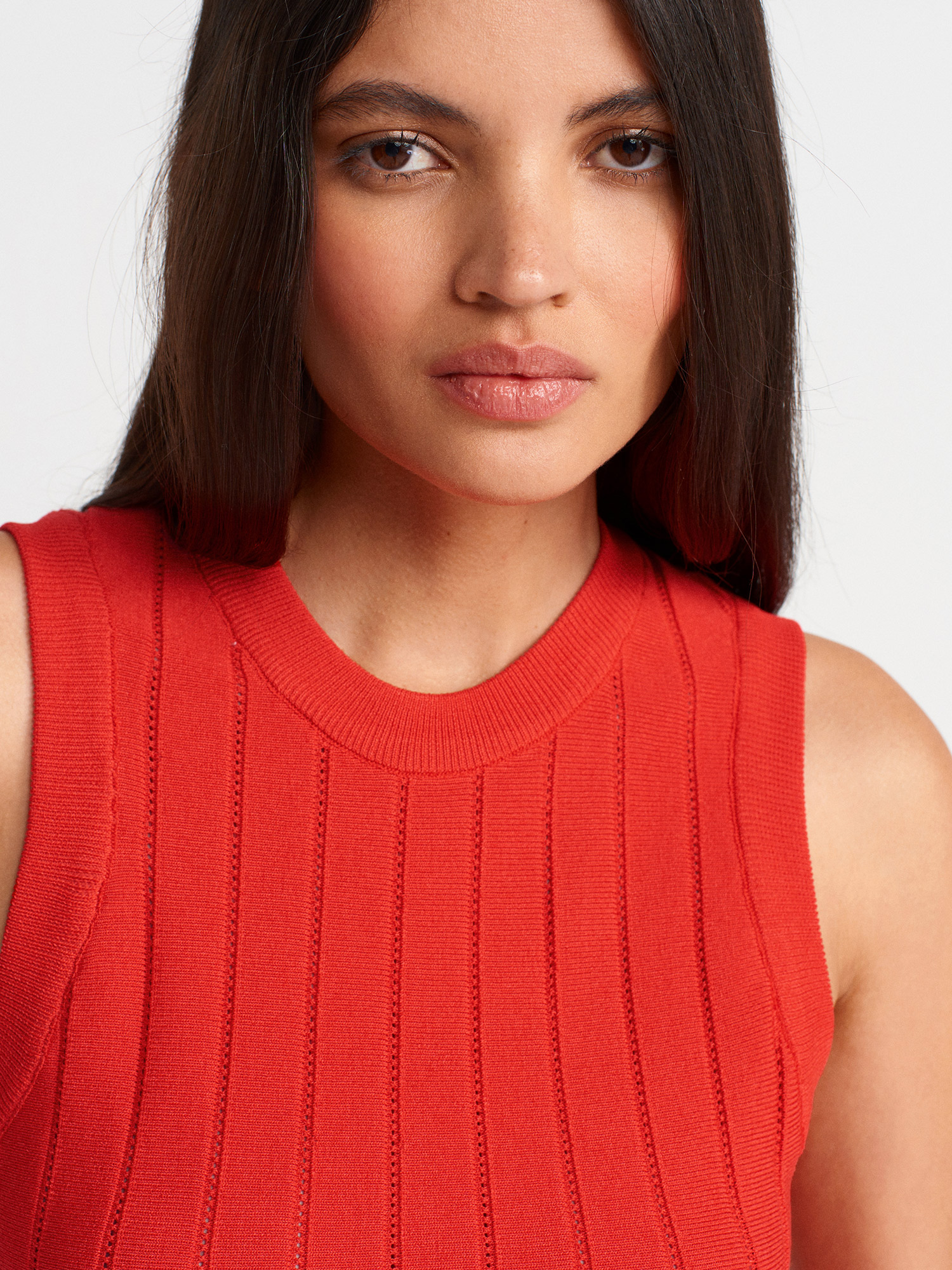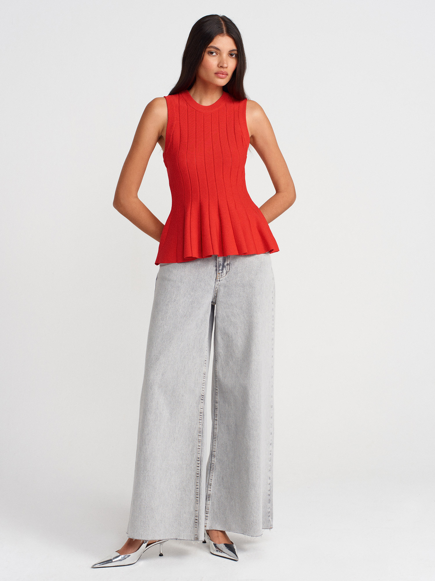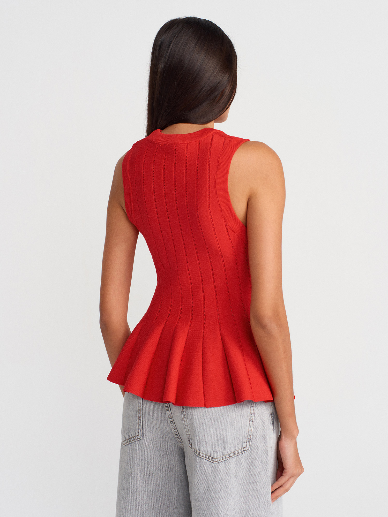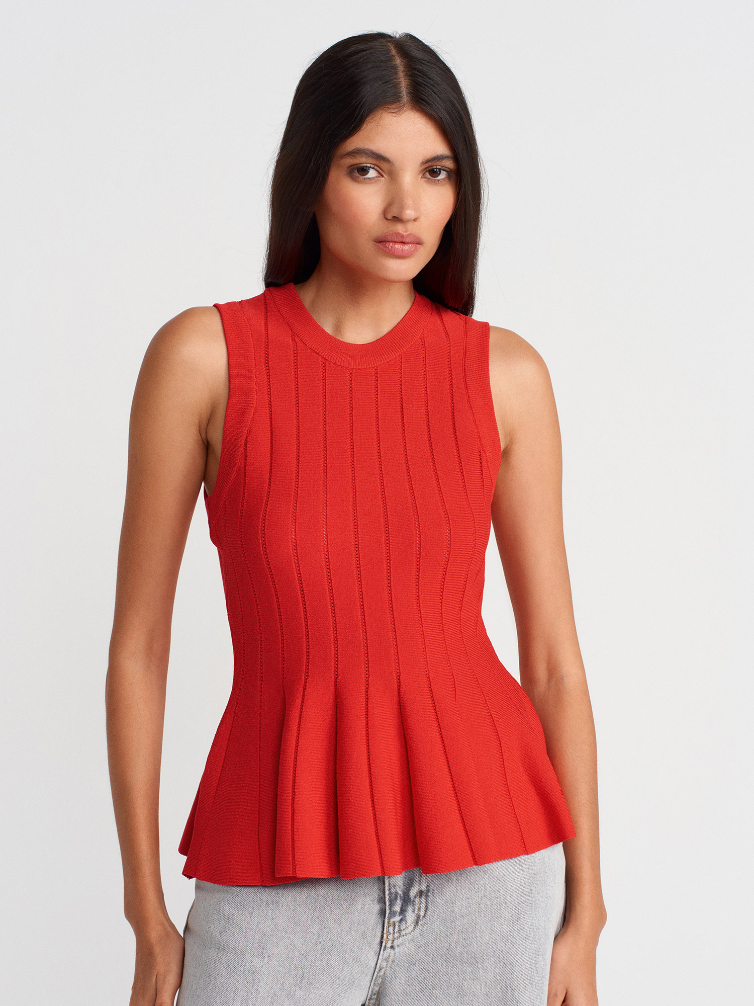 10740 Bisiklet Yaka Volanlı Triko Bluz-Kırmızı