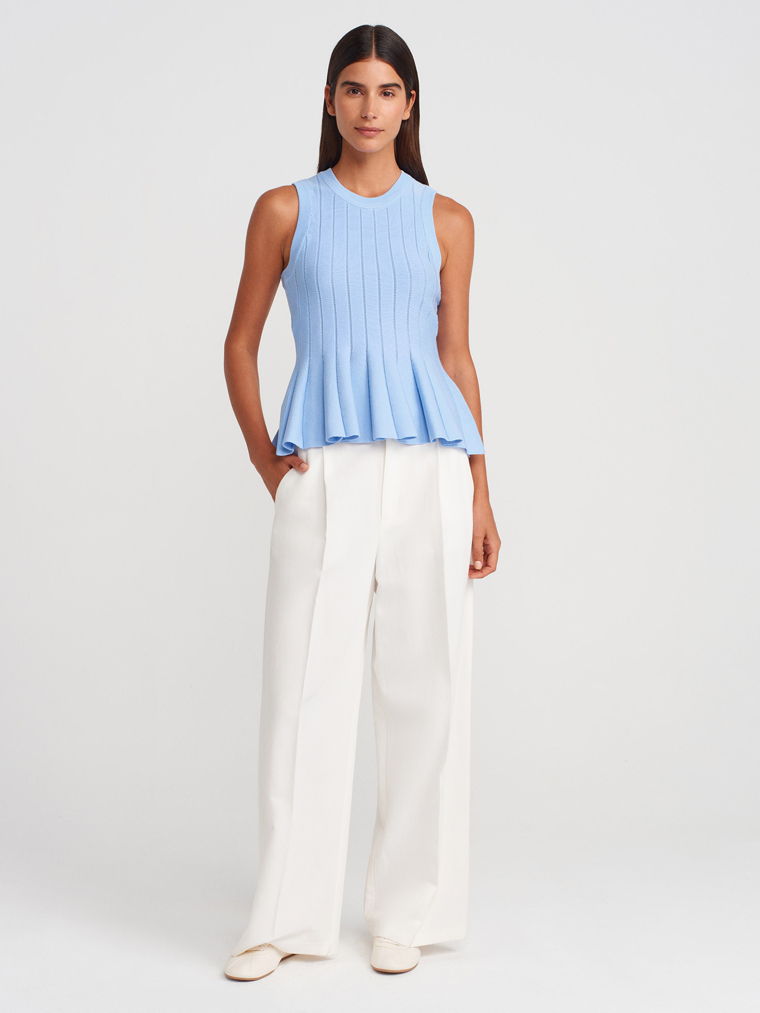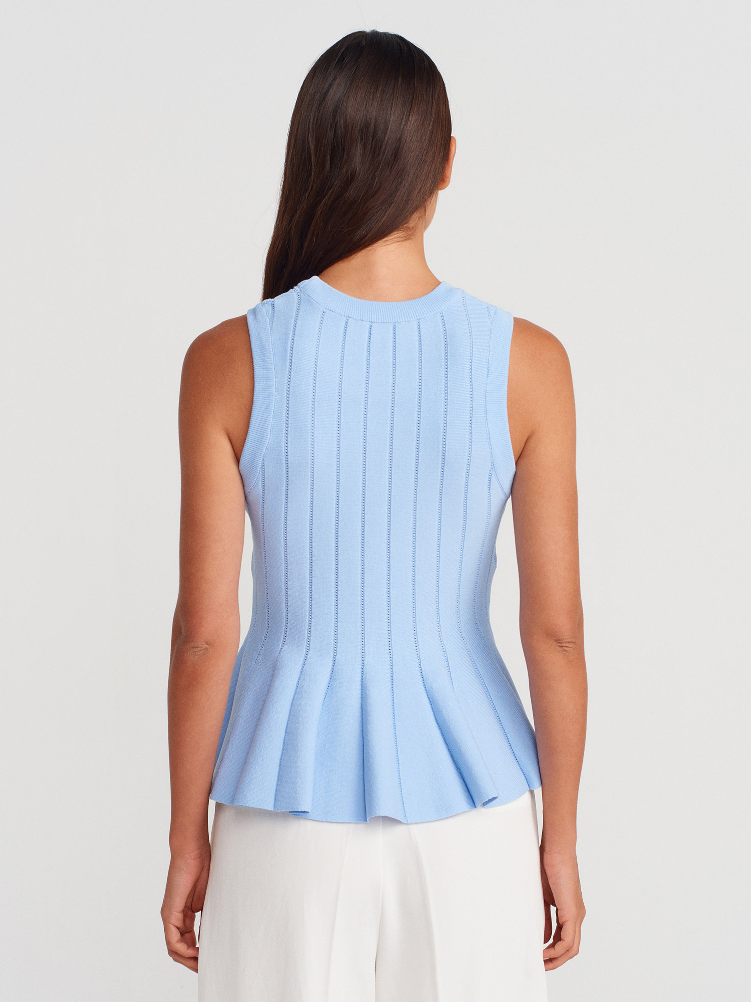 10740 Bisiklet Yaka Volanlı Triko Bluz-Mavi