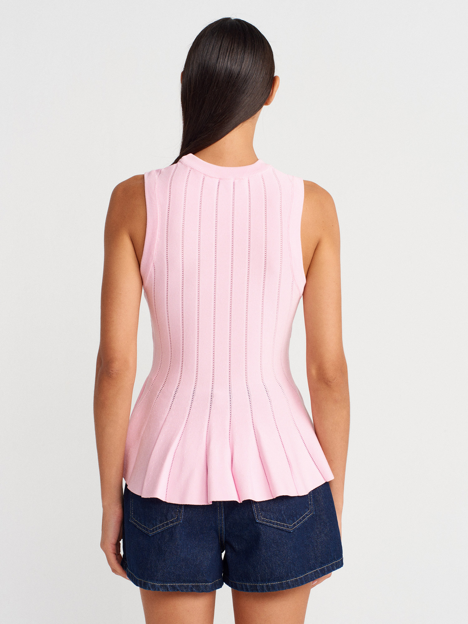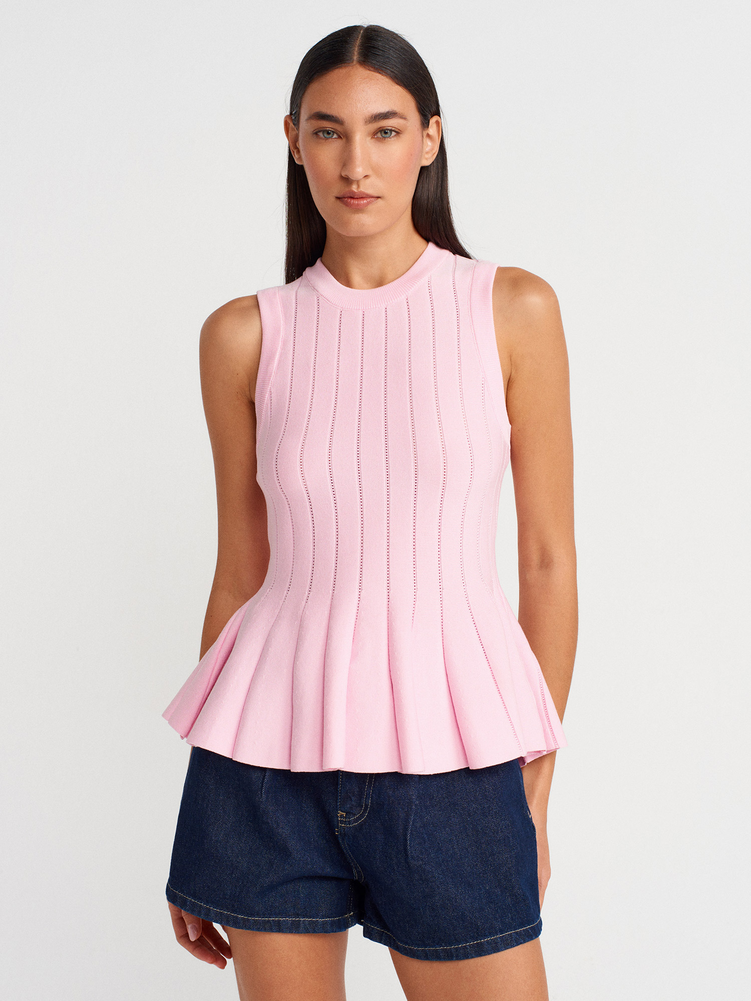 10740 Bisiklet Yaka Volanlı Triko Bluz-Pembe