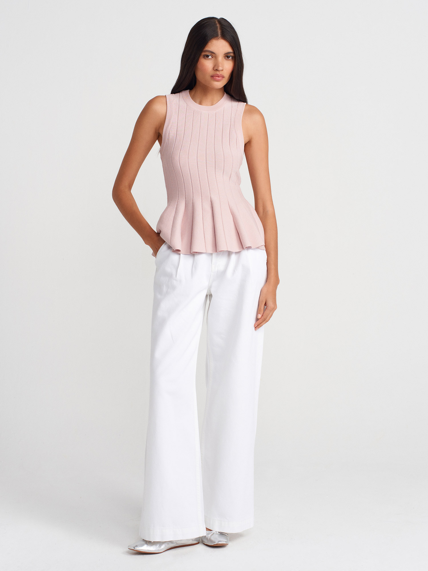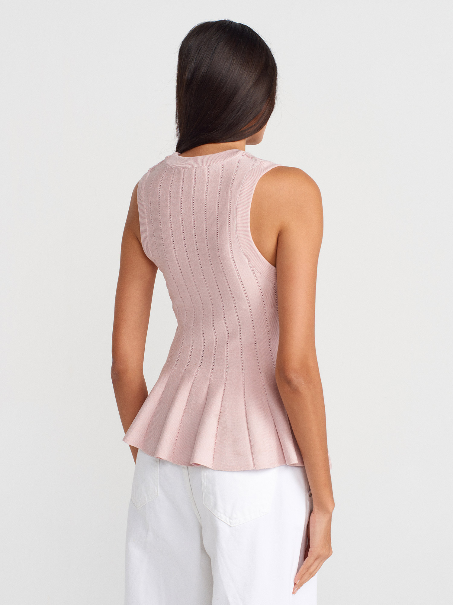 10740 Bisiklet Yaka Volanlı Triko Bluz-Pudra