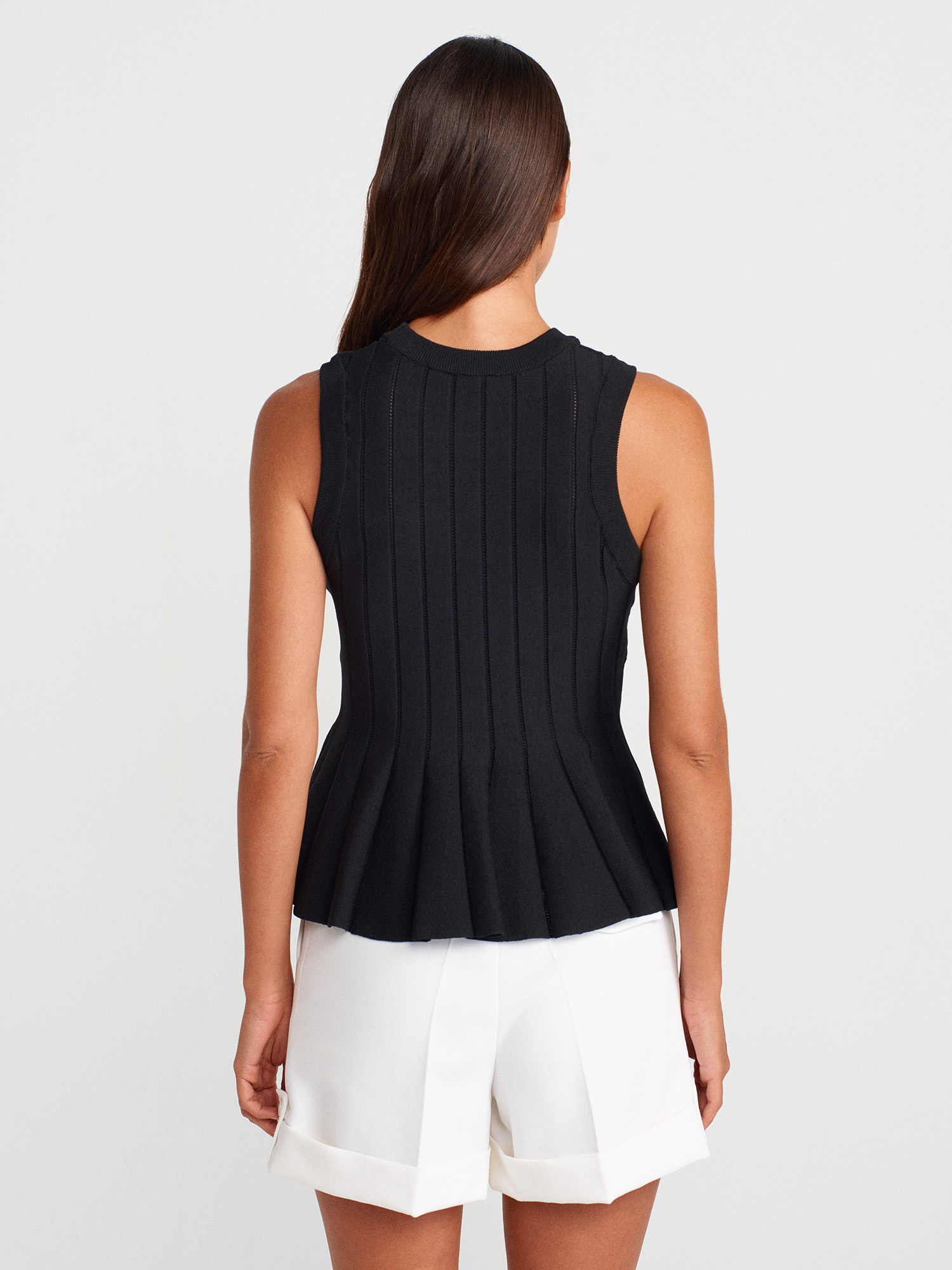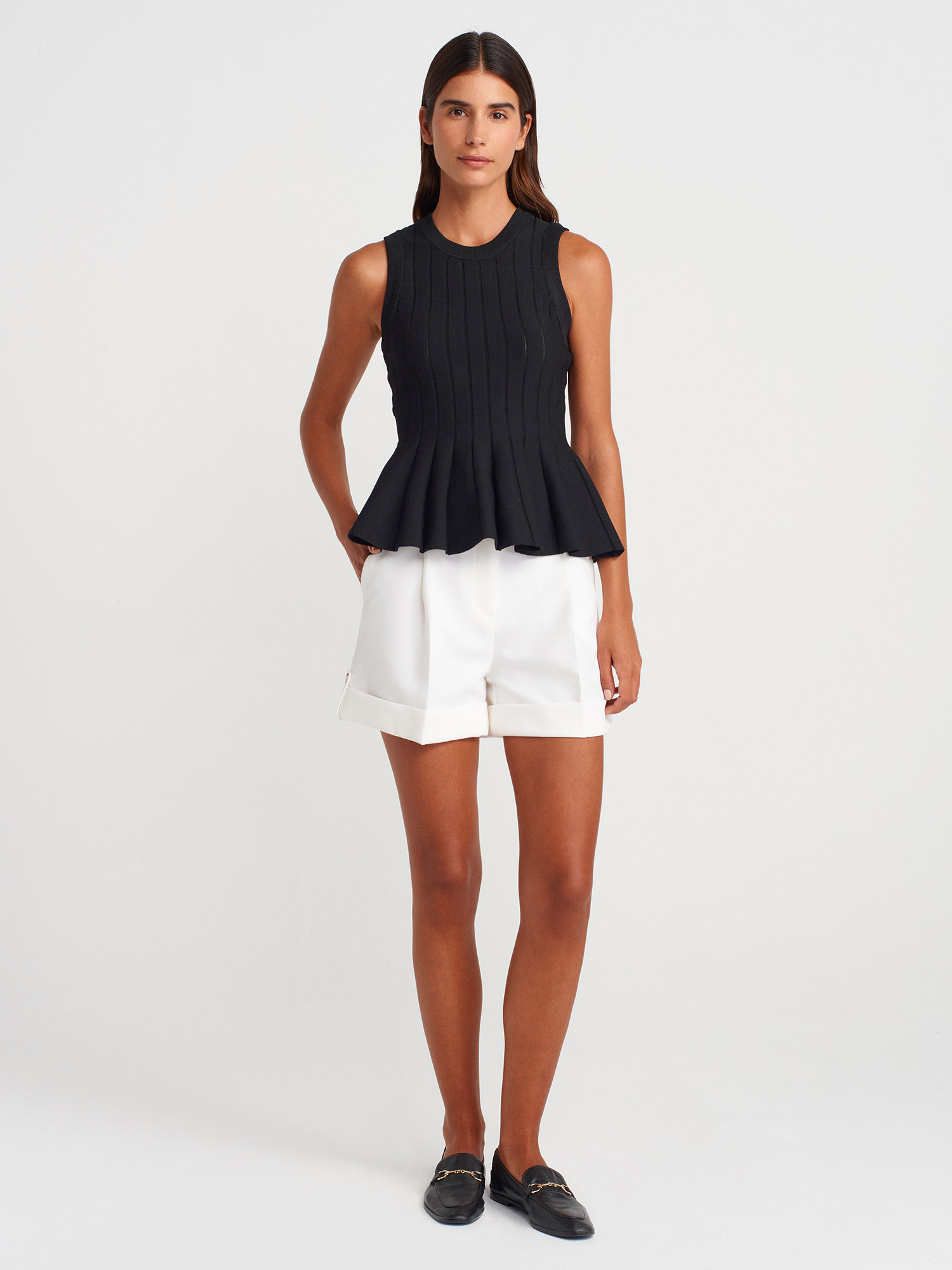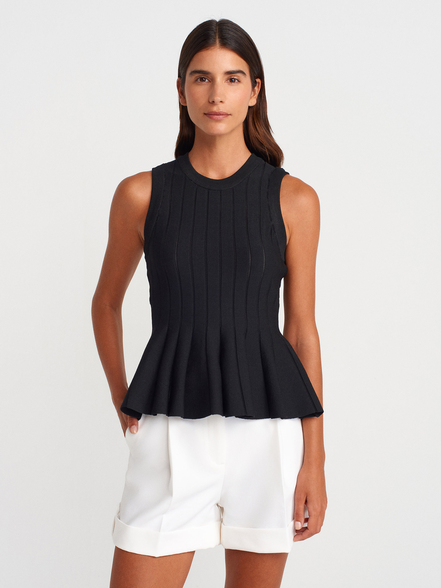 10740 Bisiklet Yaka Volanlı Triko Bluz-Siyah