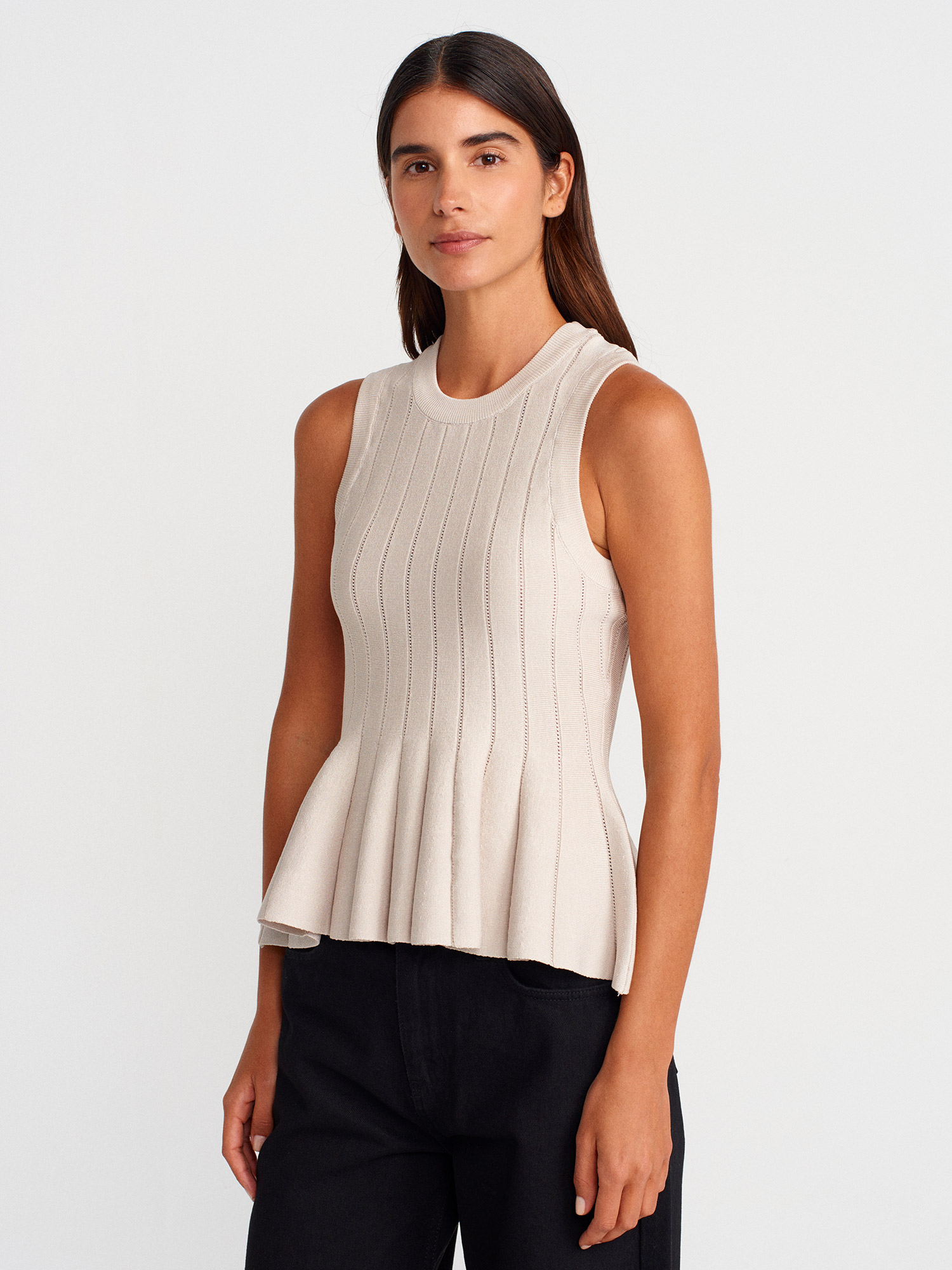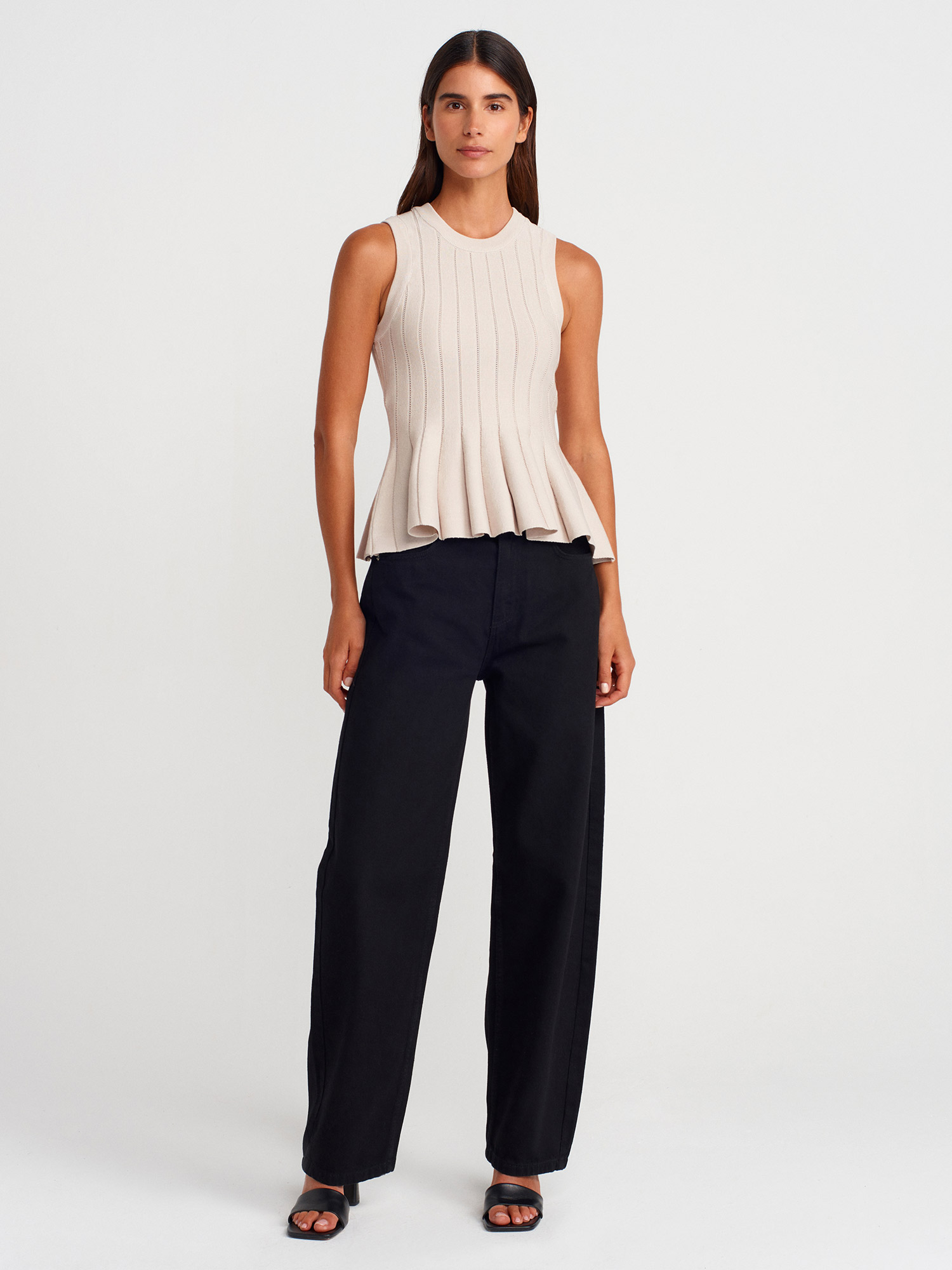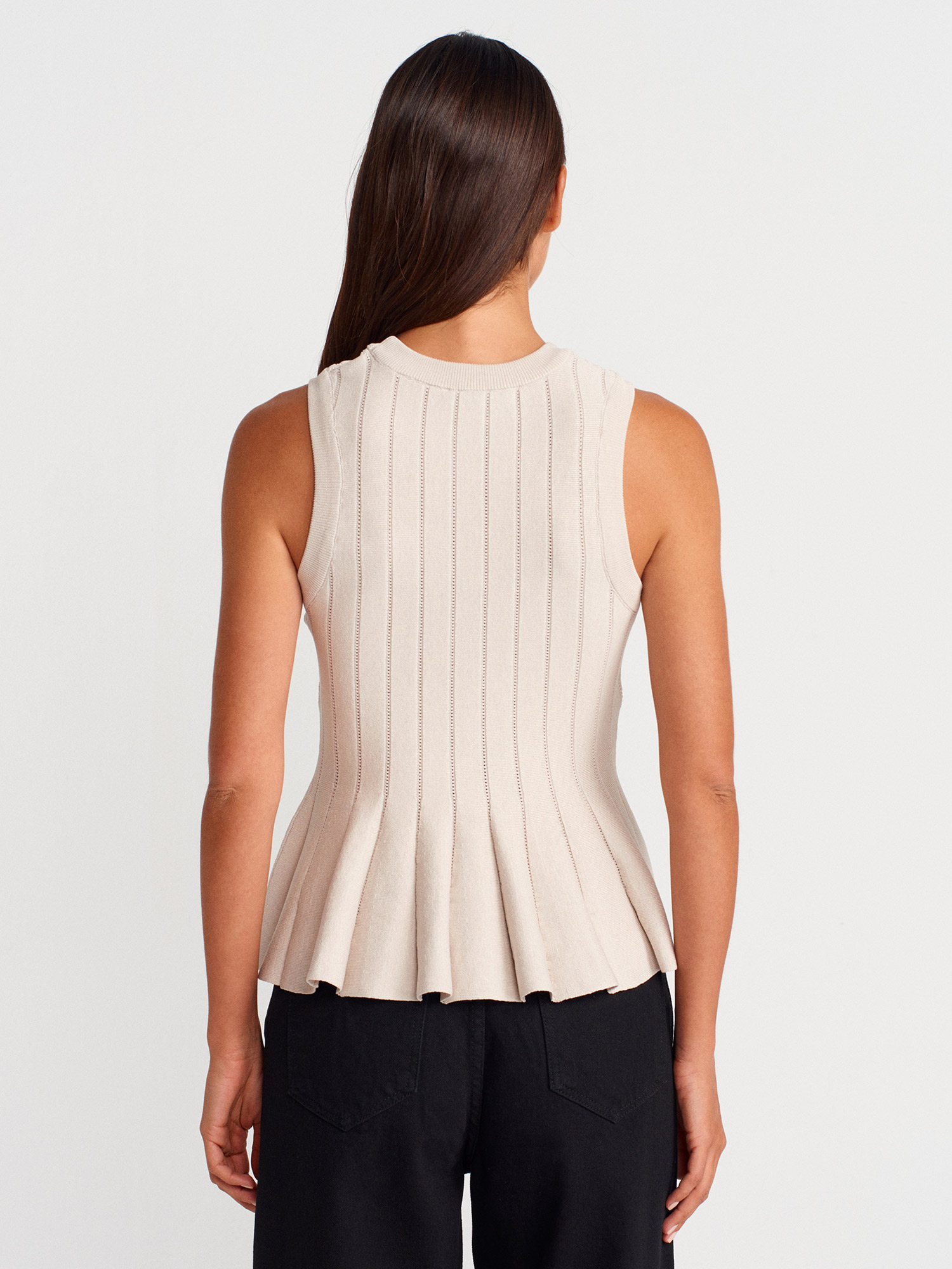 10740 Bisiklet Yaka Volanlı Triko Bluz-Taş