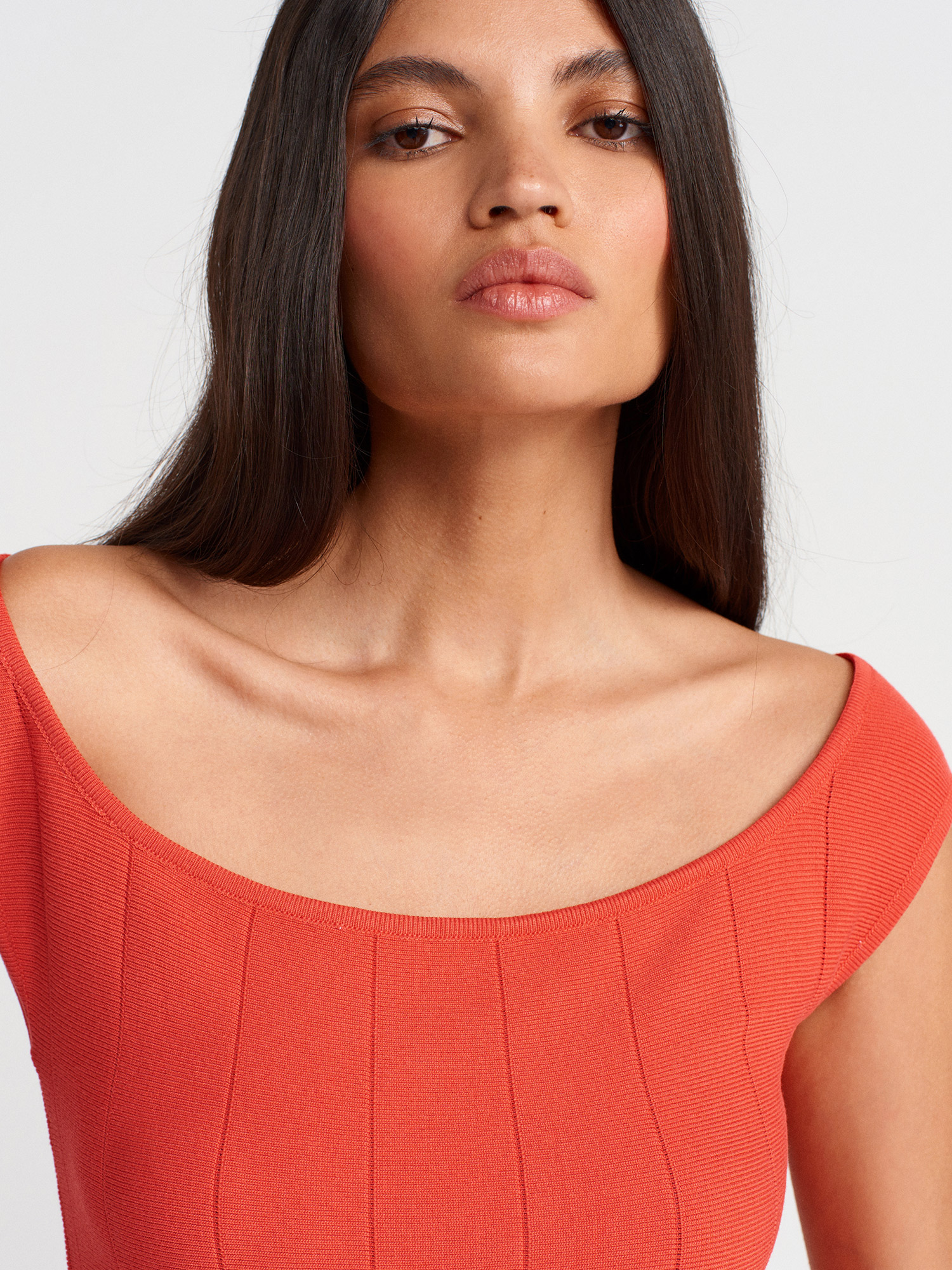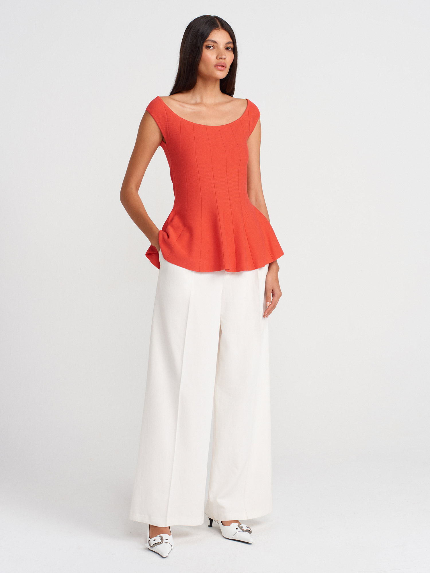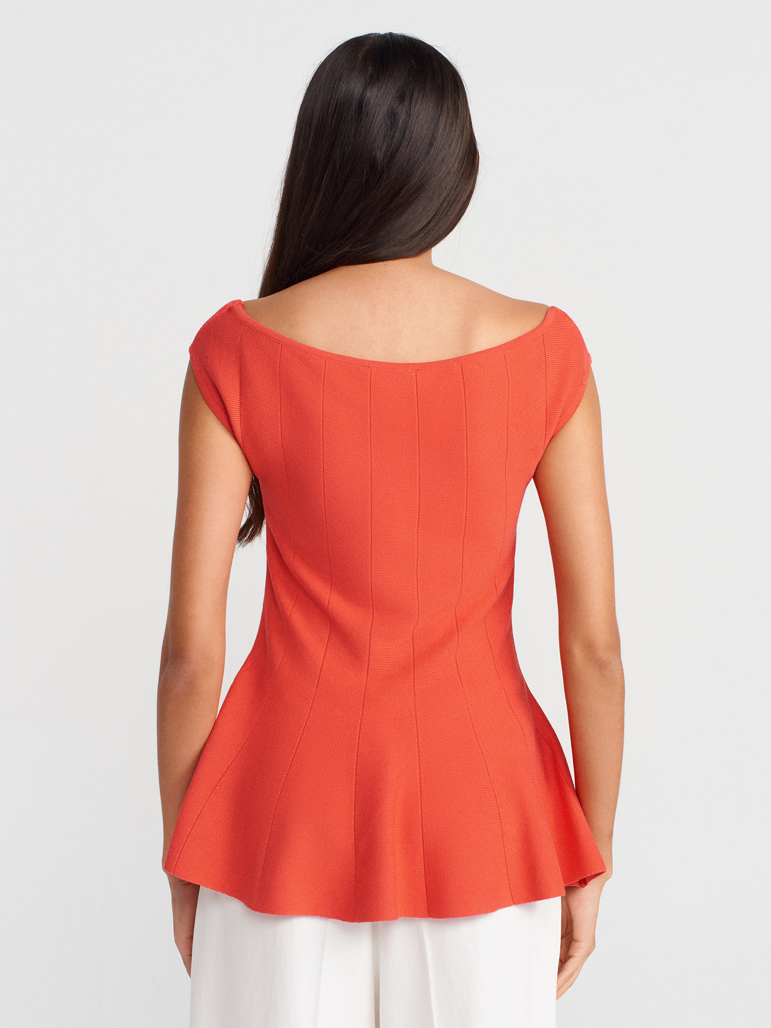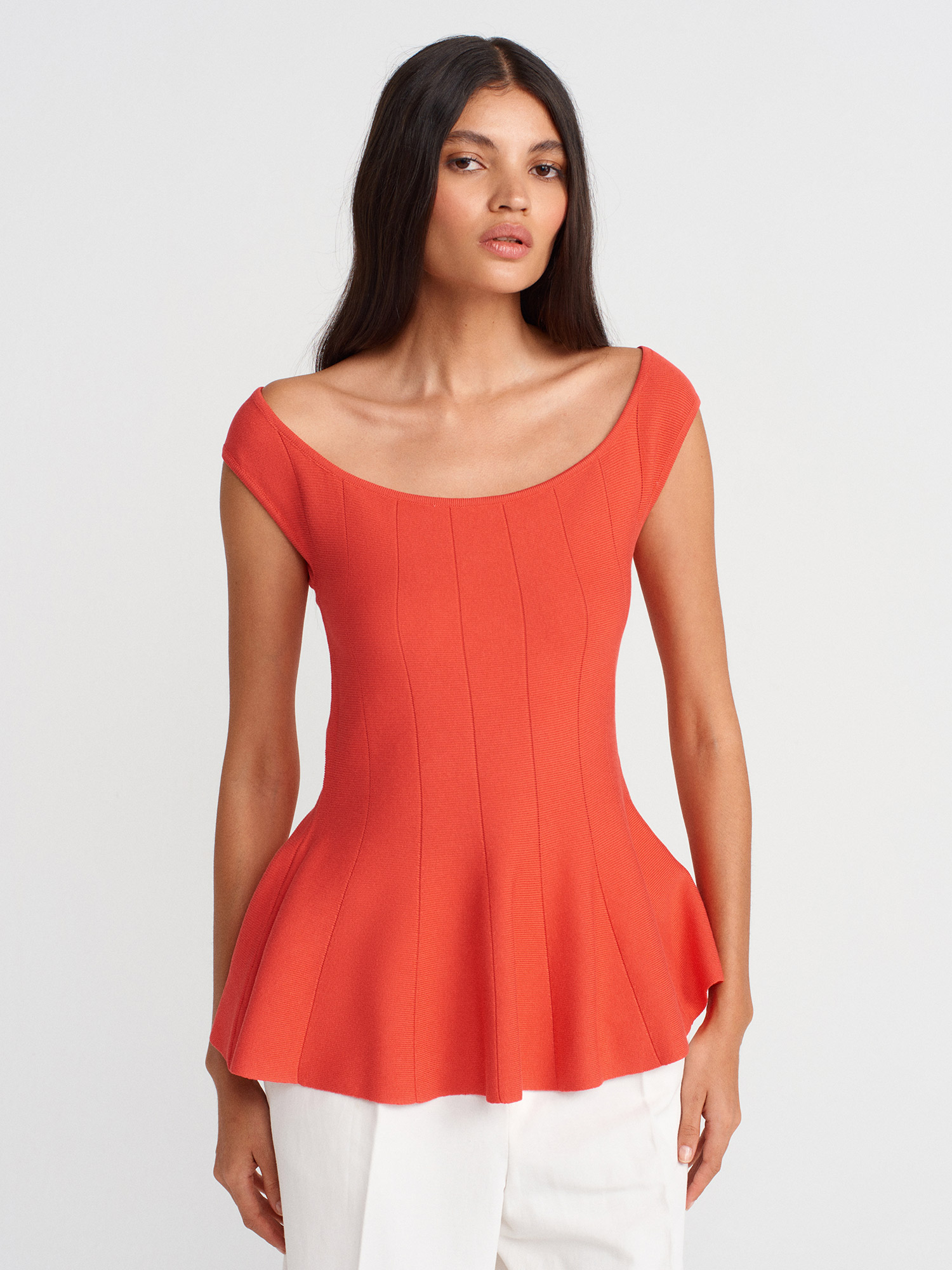10741 Kayık Yaka Volanlı Triko Bluz-A.Kırmızı