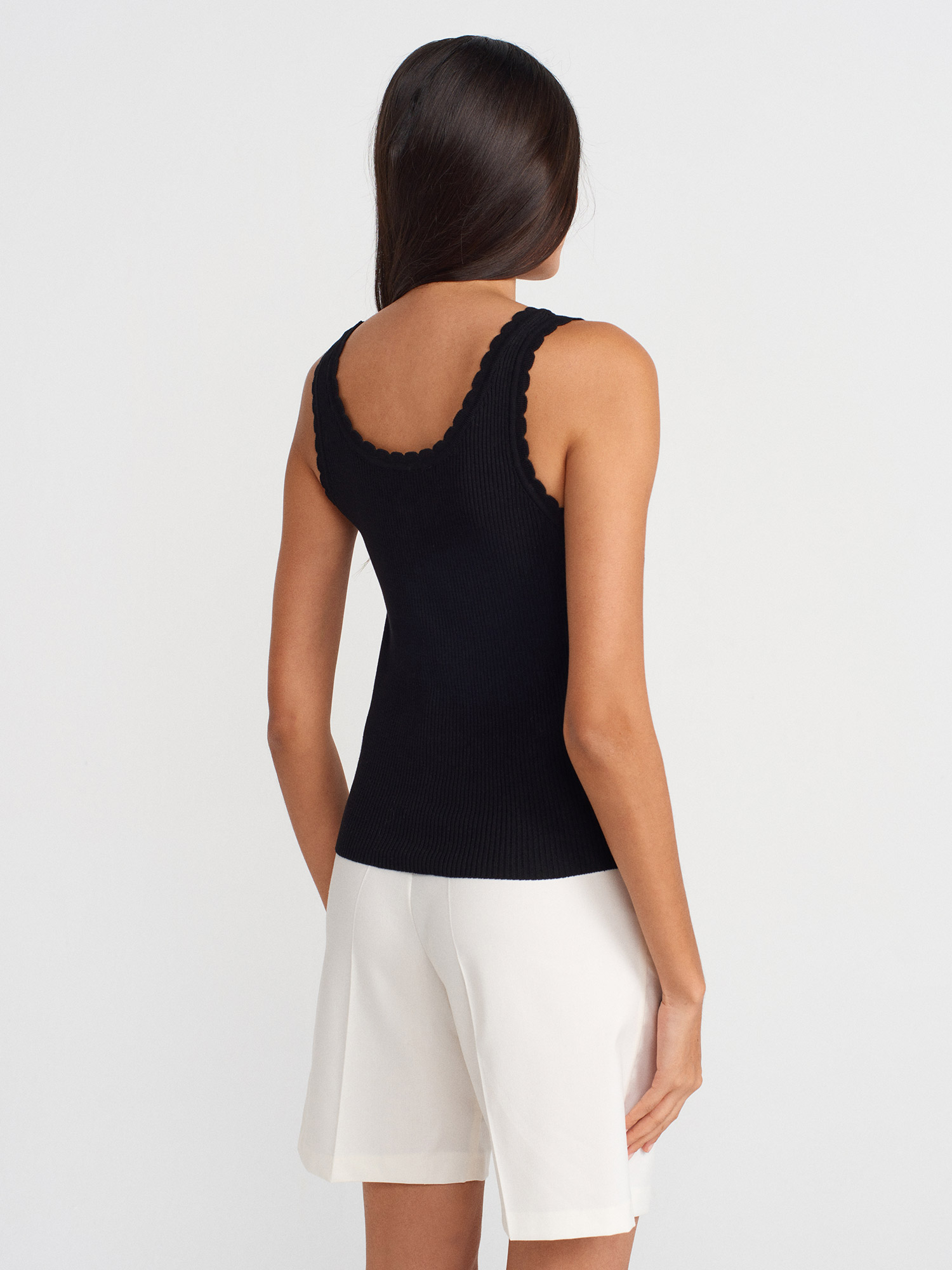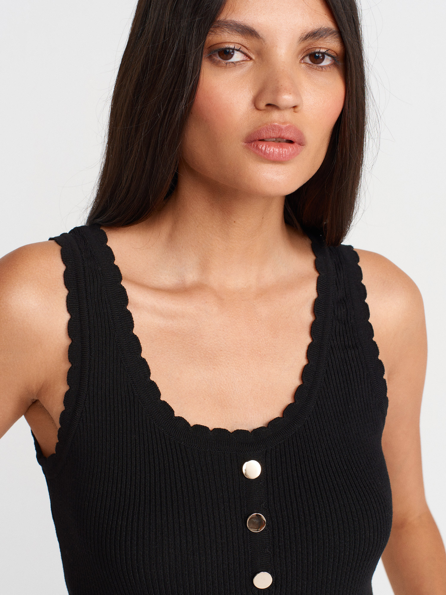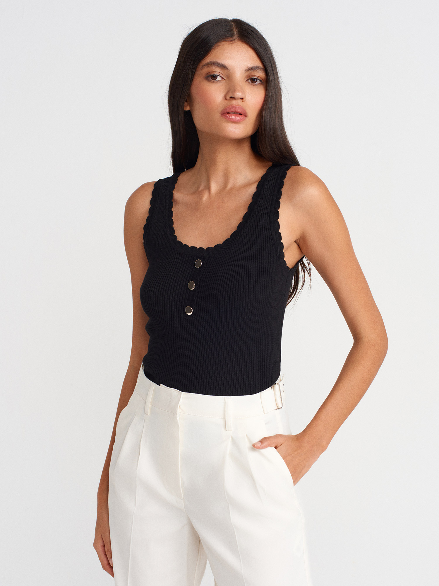 10744 Fitilli Düğme Detaylı Triko Bluz-Siyah