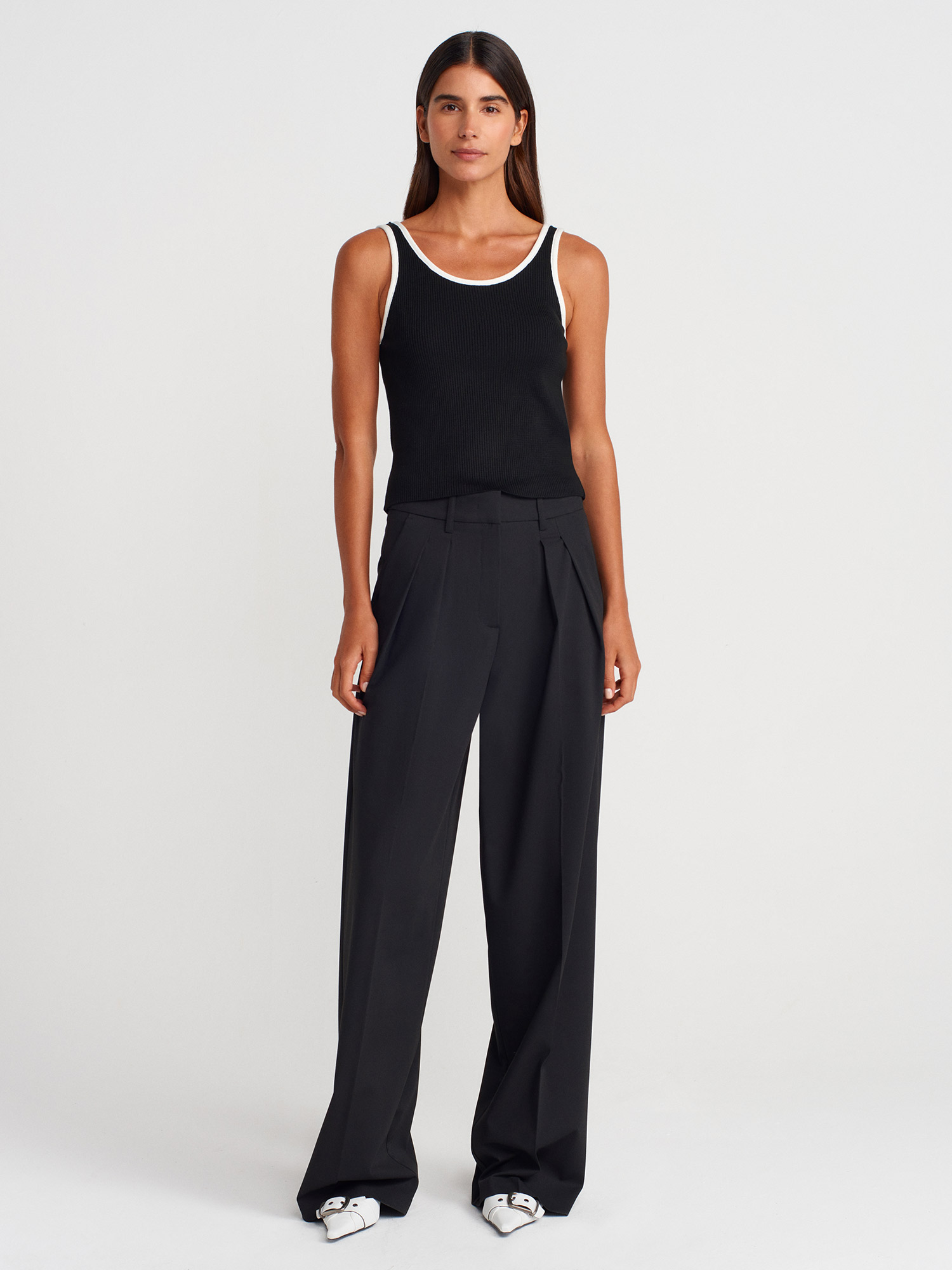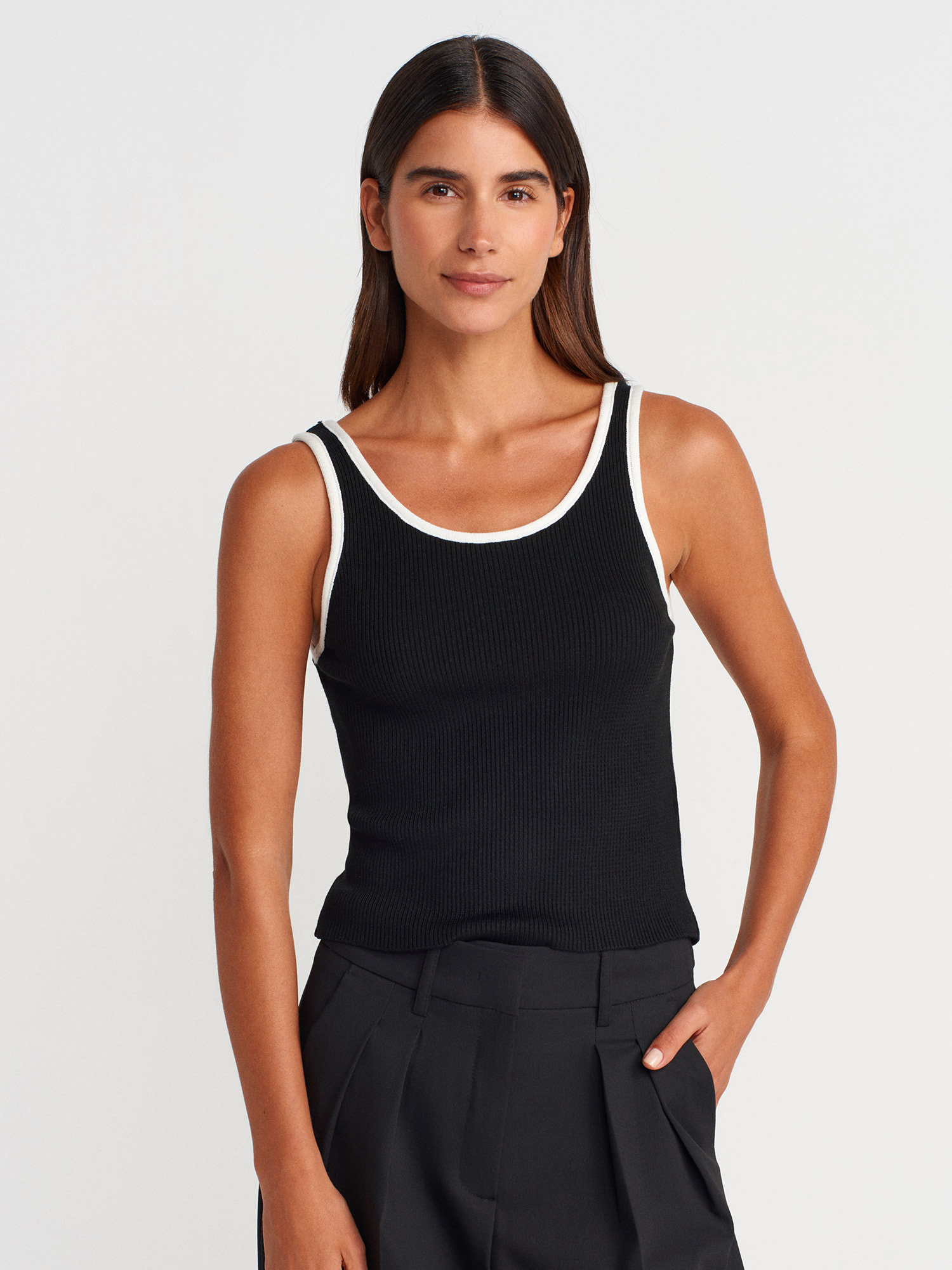 10745 Kalın Askılı Fitilli Kontrast İnce Triko Bluz-S.-Beyaz