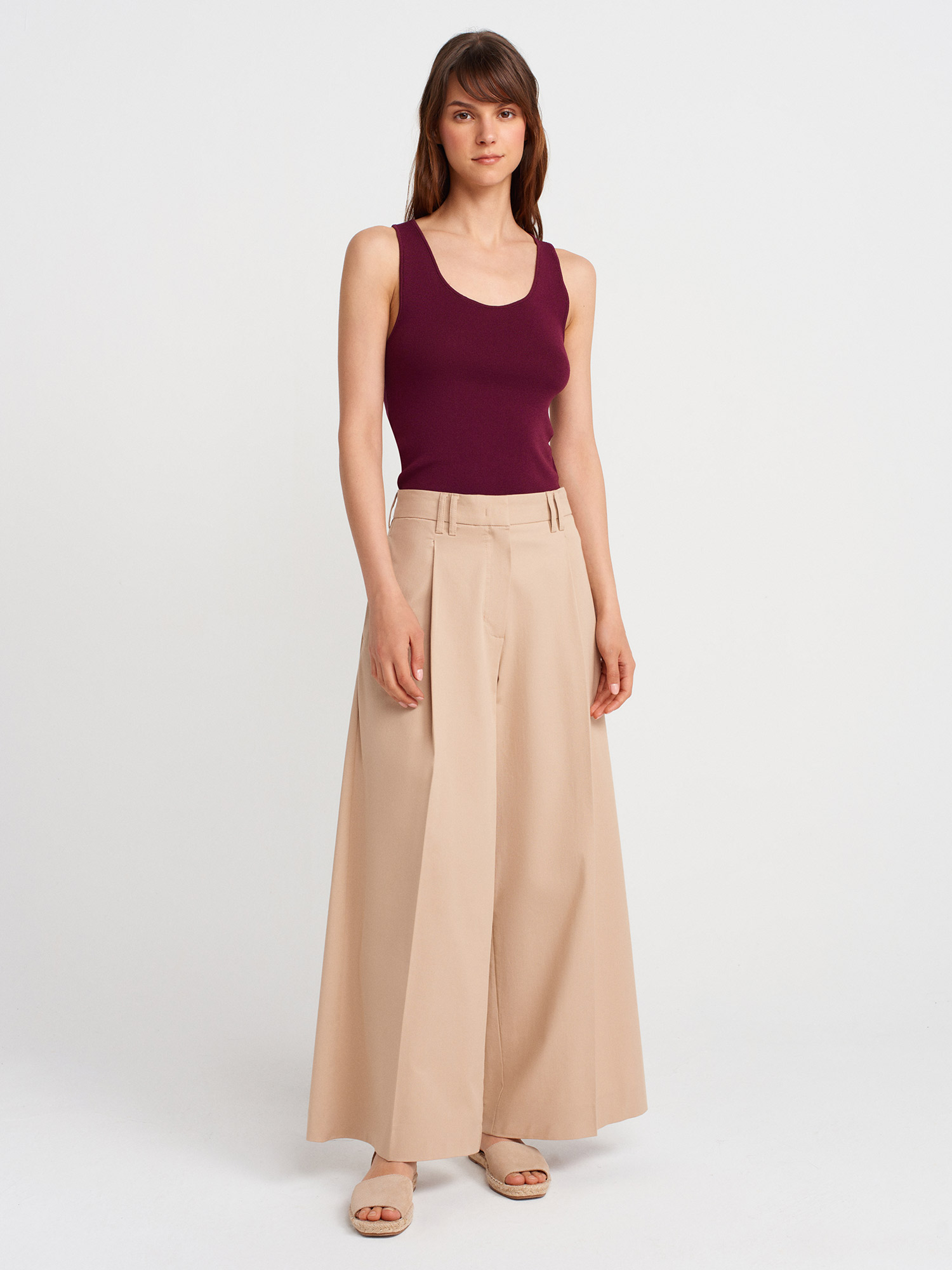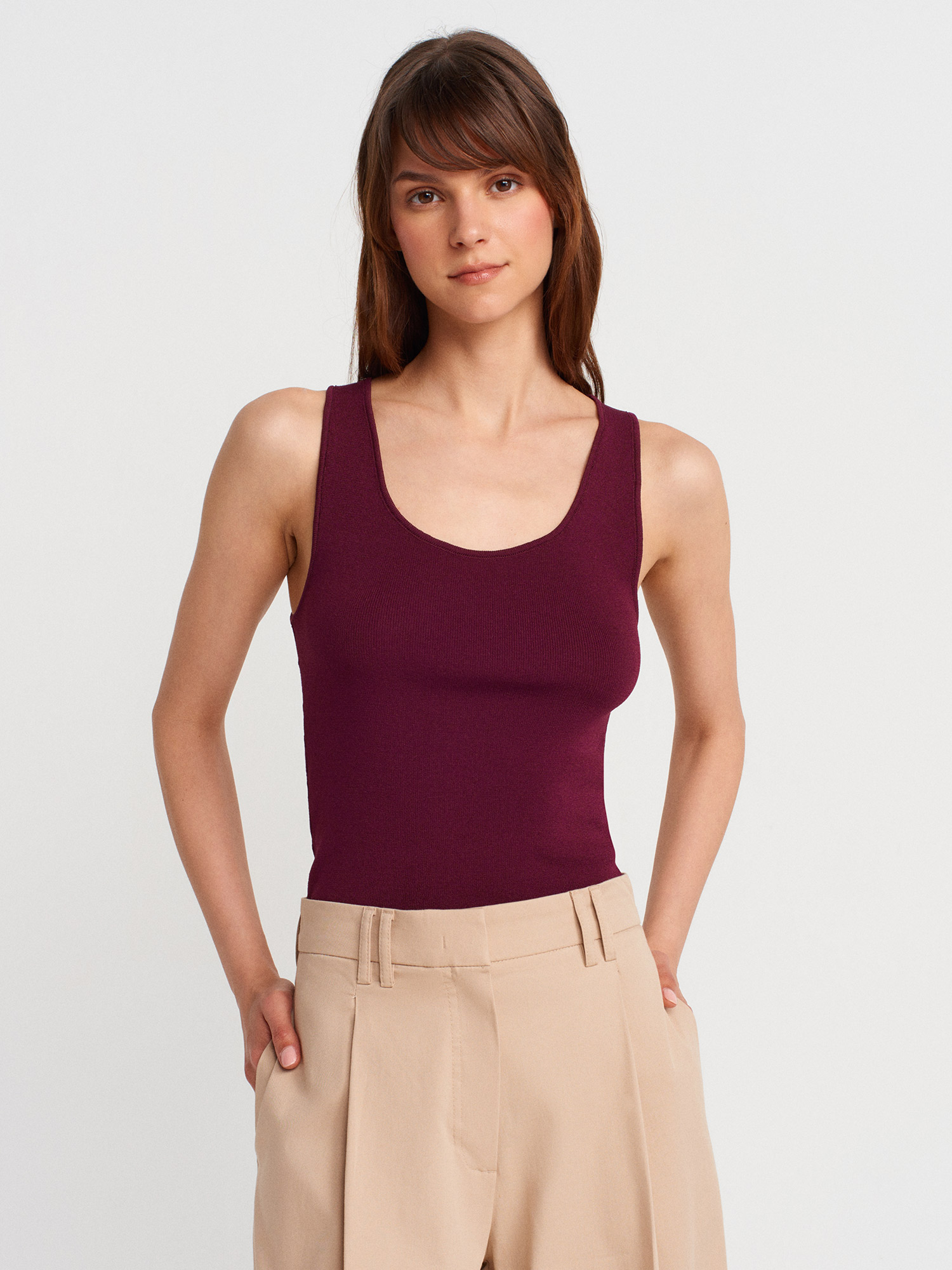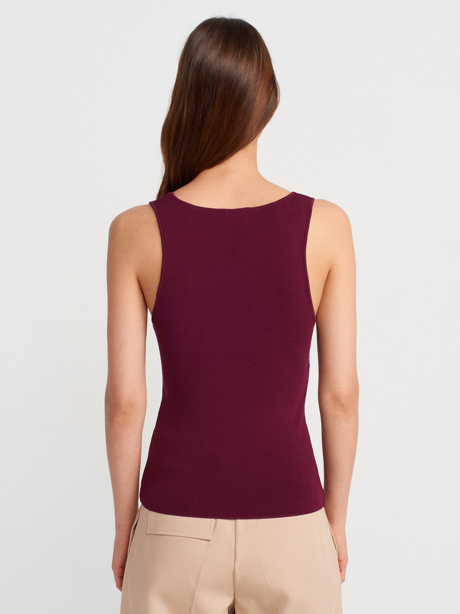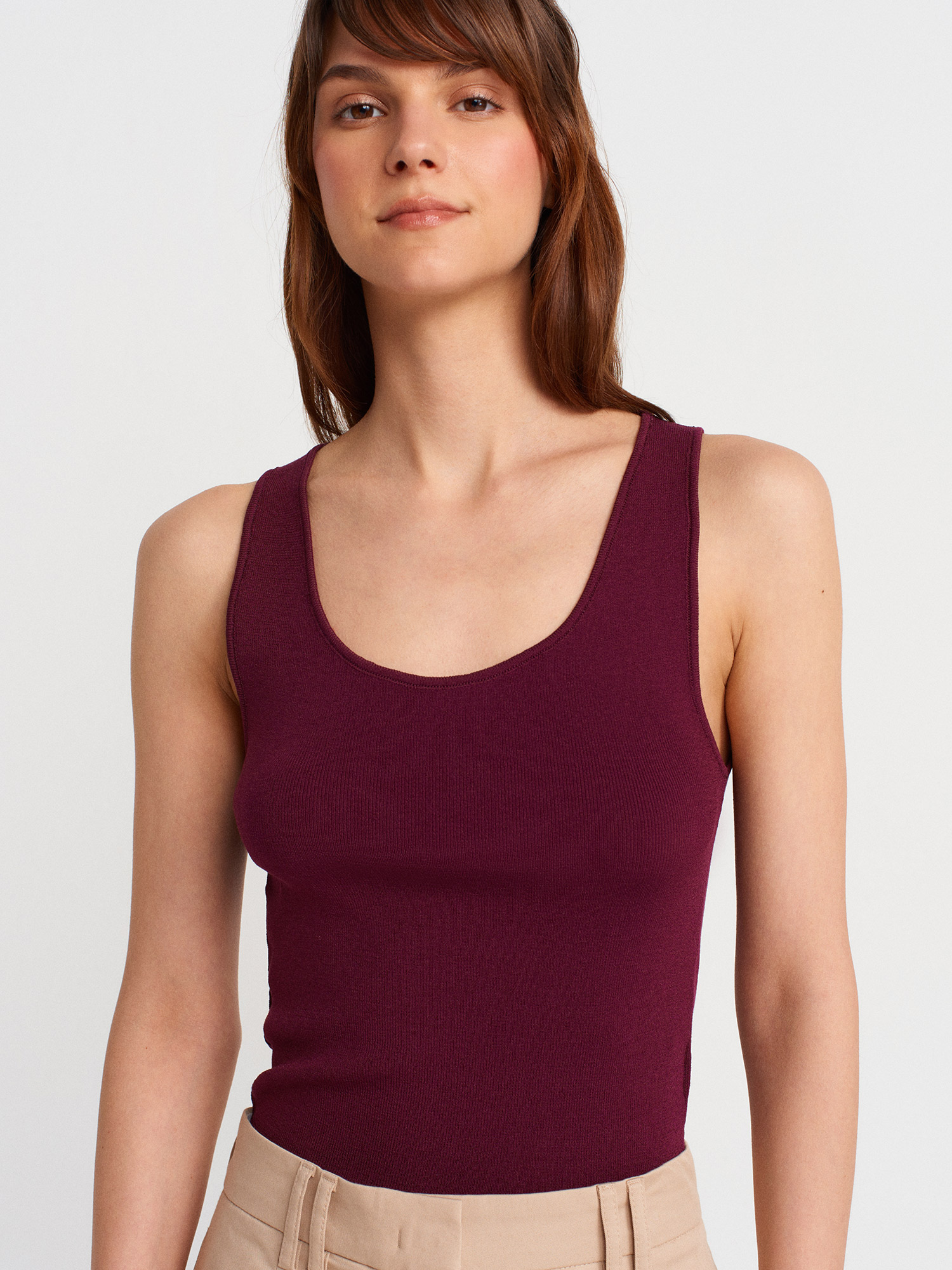 10746 Kalın Askılı Basic Triko Bluz-Bordo