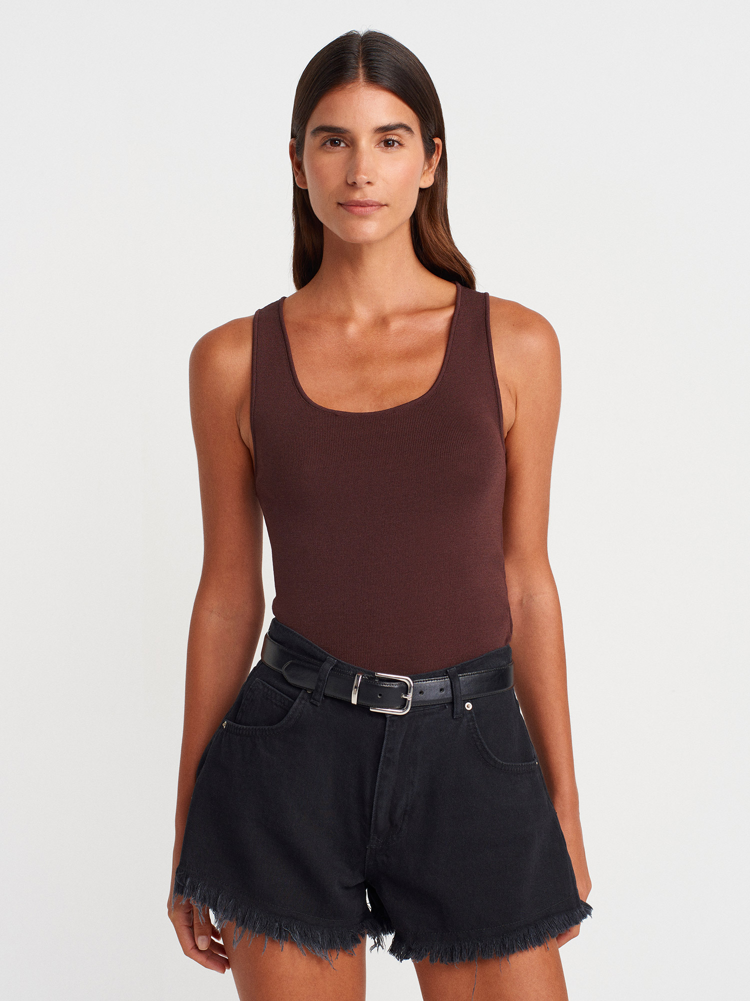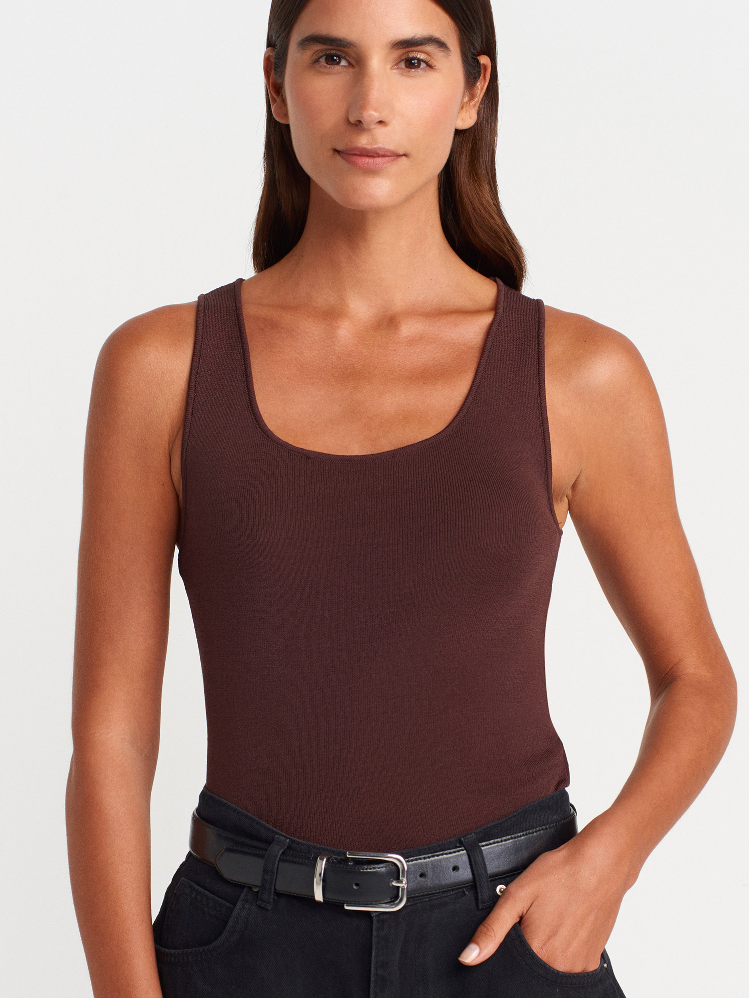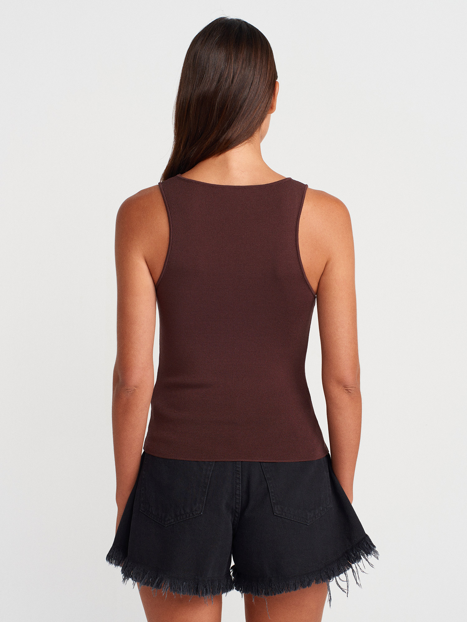 10746 Kalın Askılı Basic Triko Bluz-Kahve