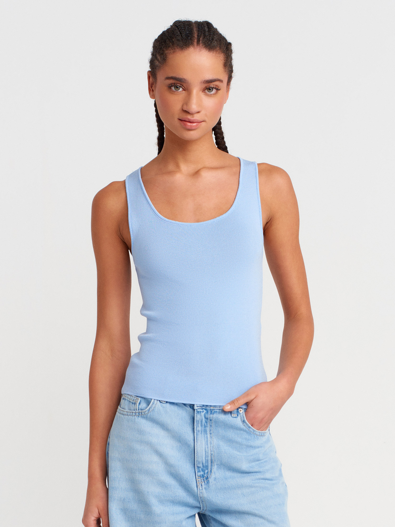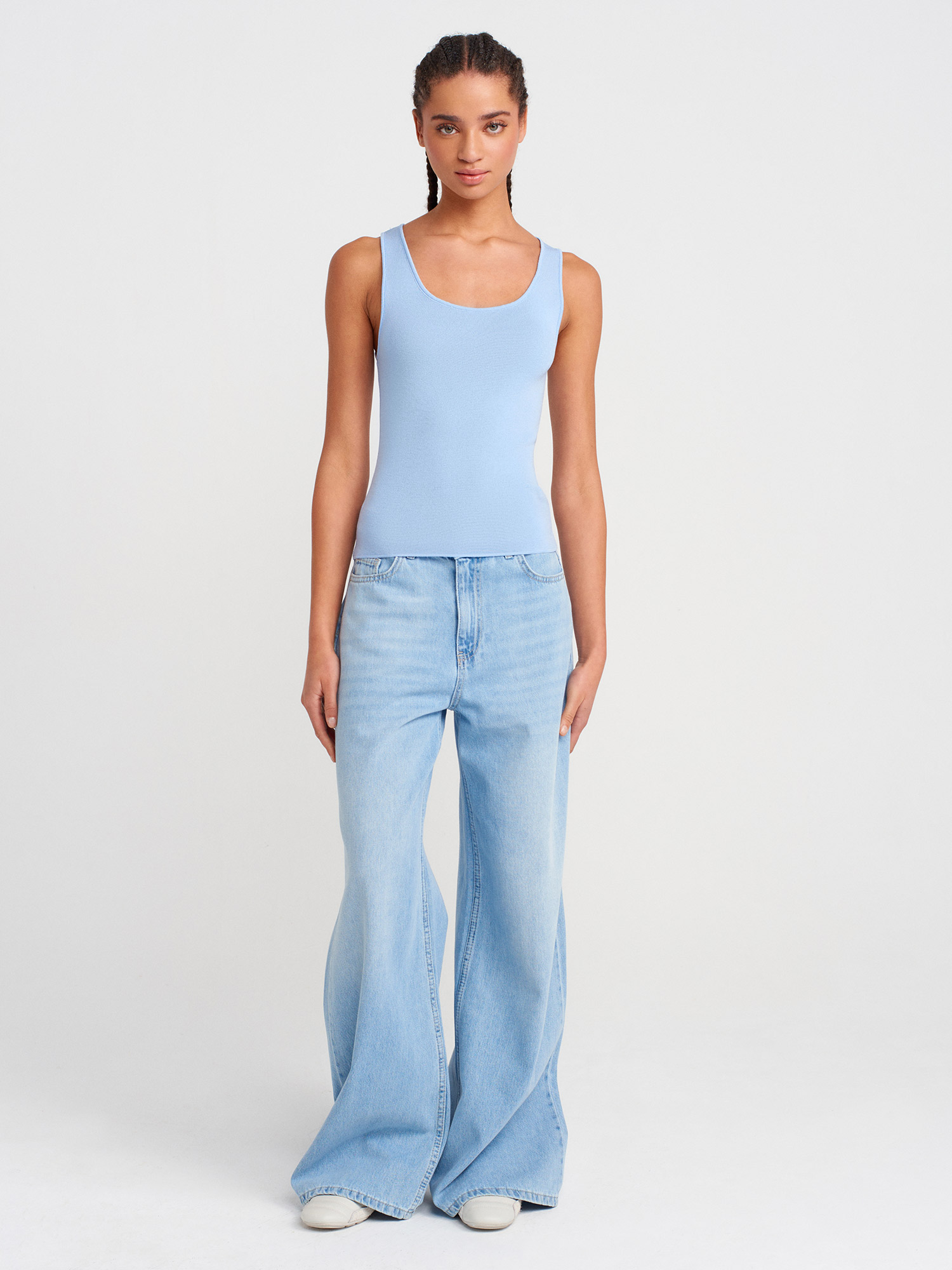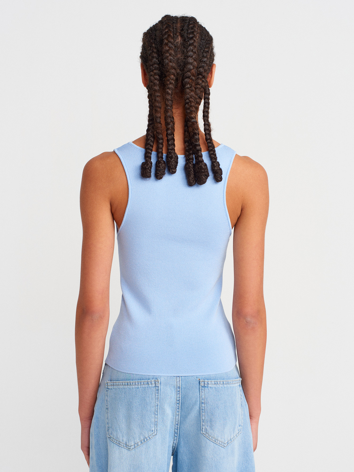 10746 Kalın Askılı Basic Triko Bluz-Mavi