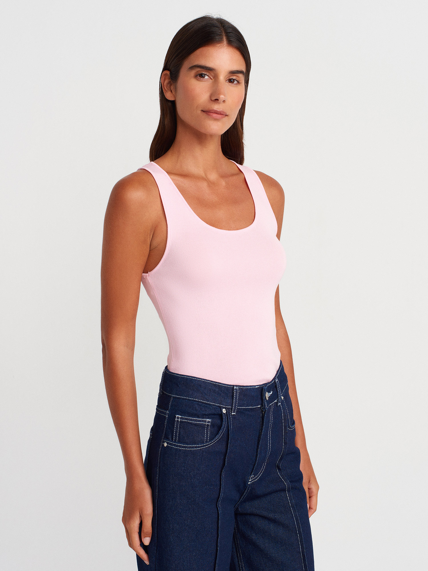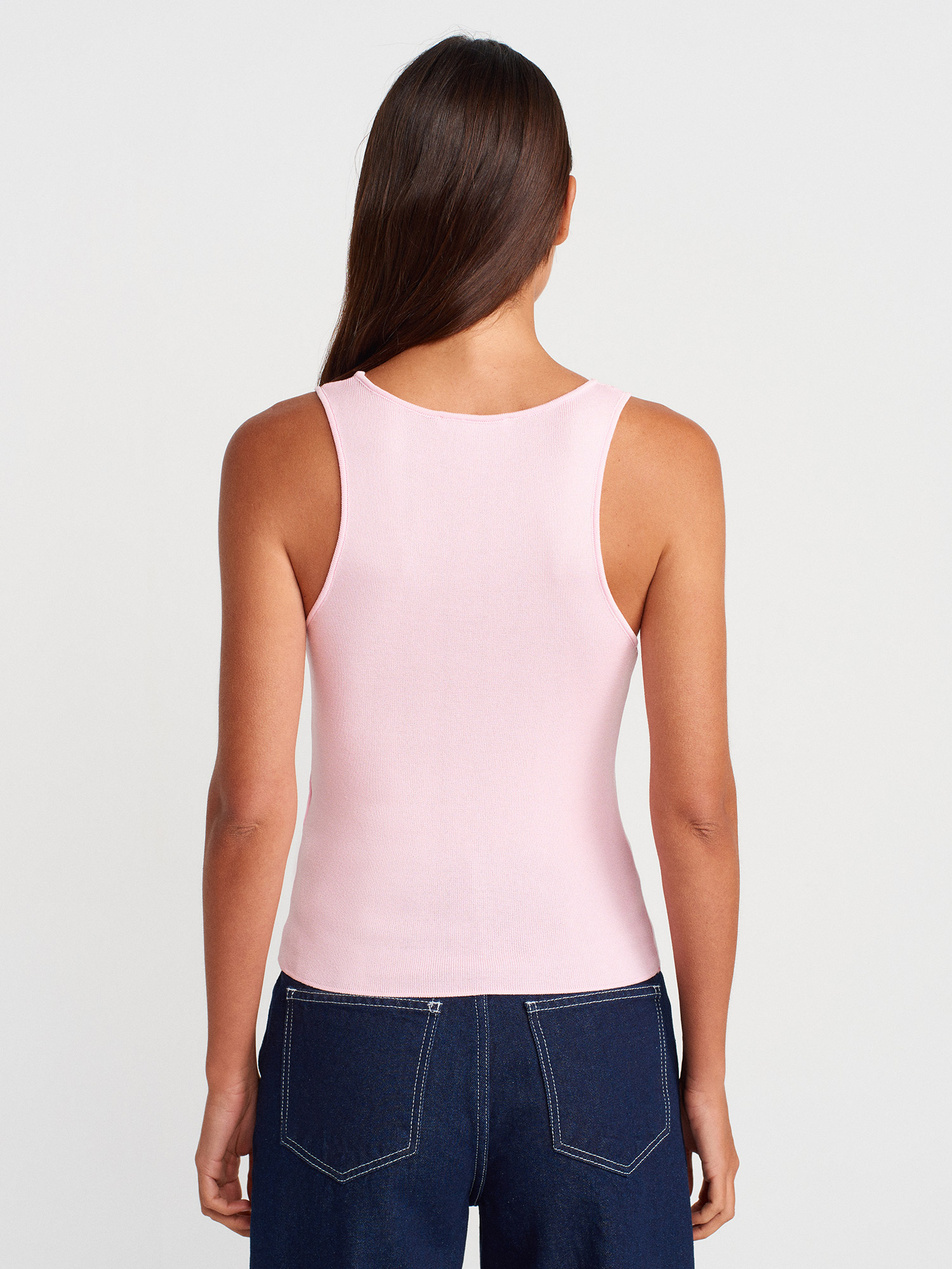 10746 Kalın Askılı Basic Triko Bluz-Pembe