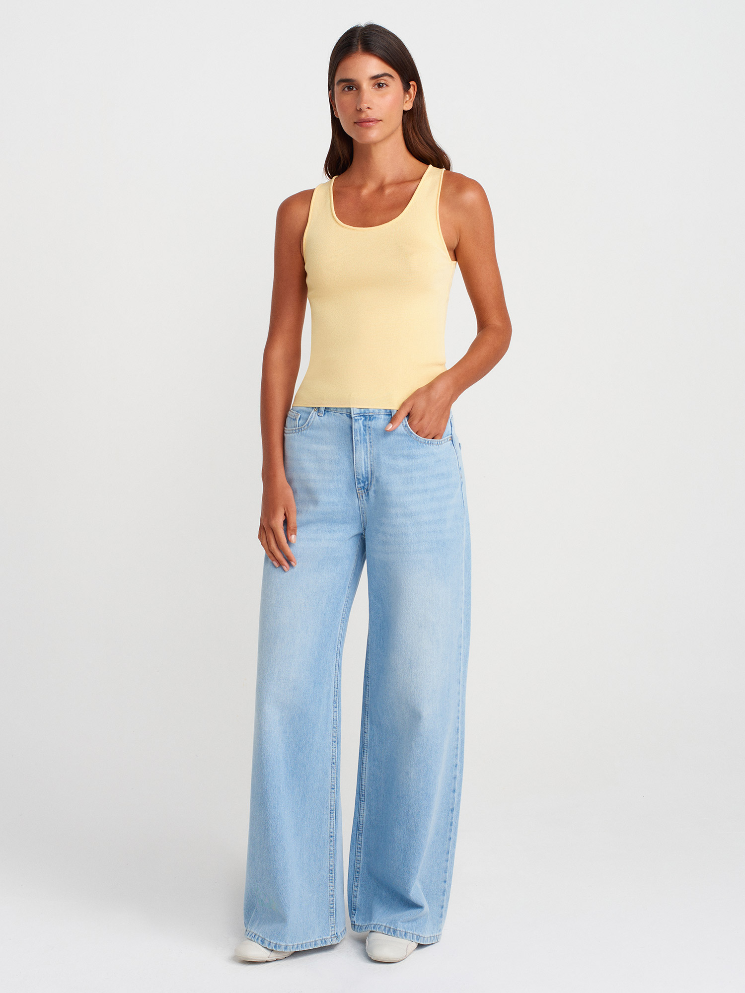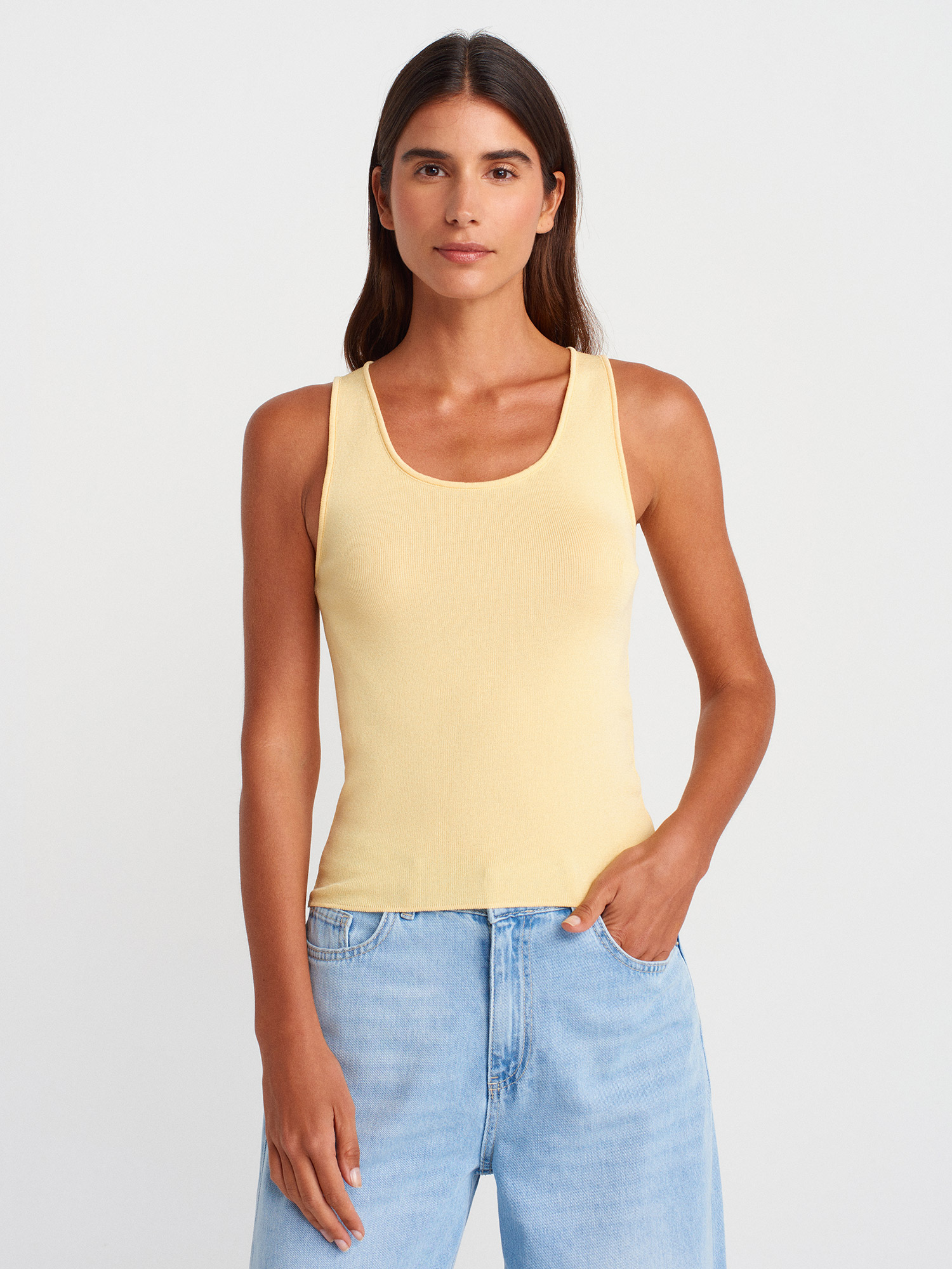 10746 Kalın Askılı Basic Triko Bluz-Sarı