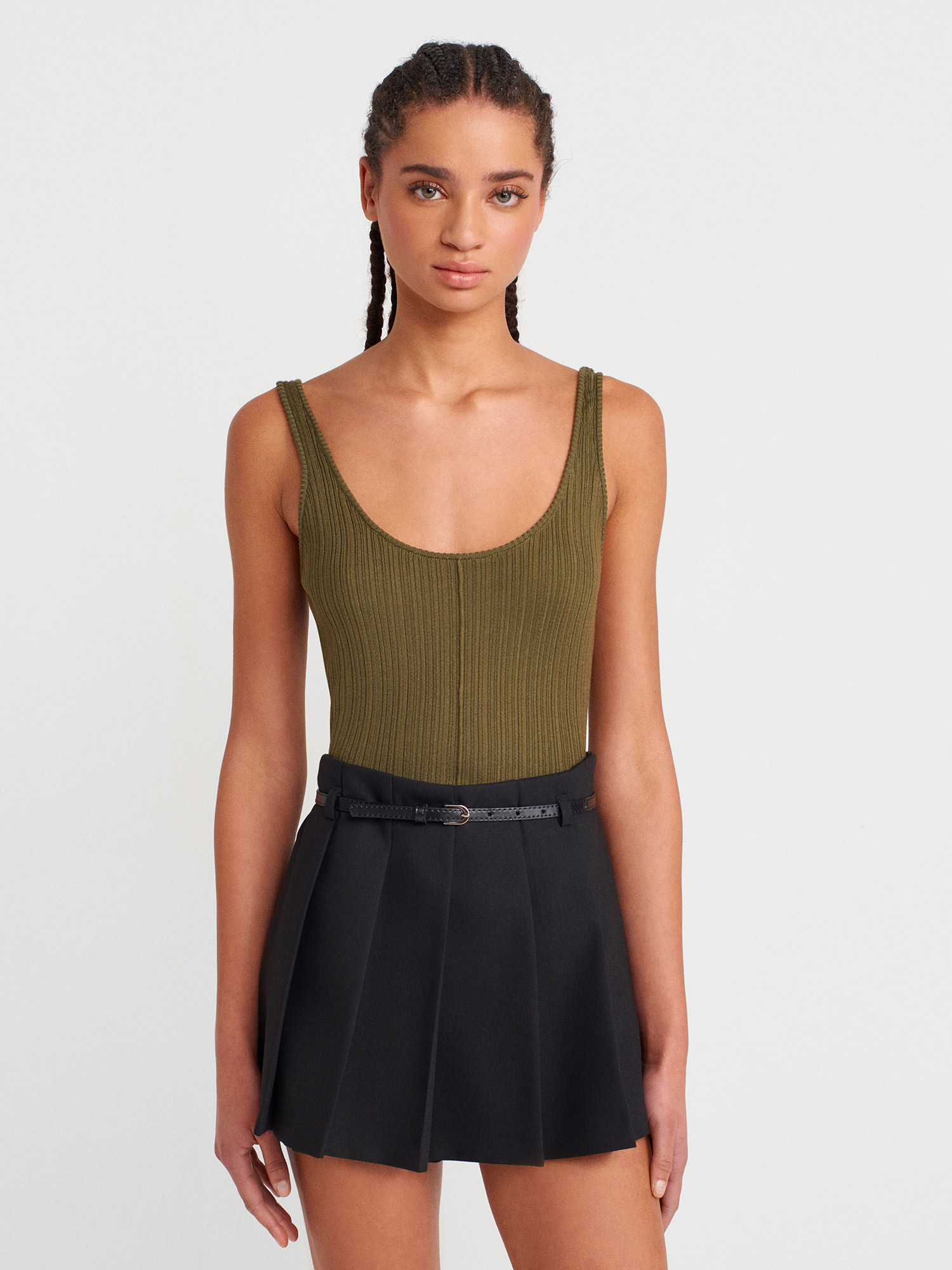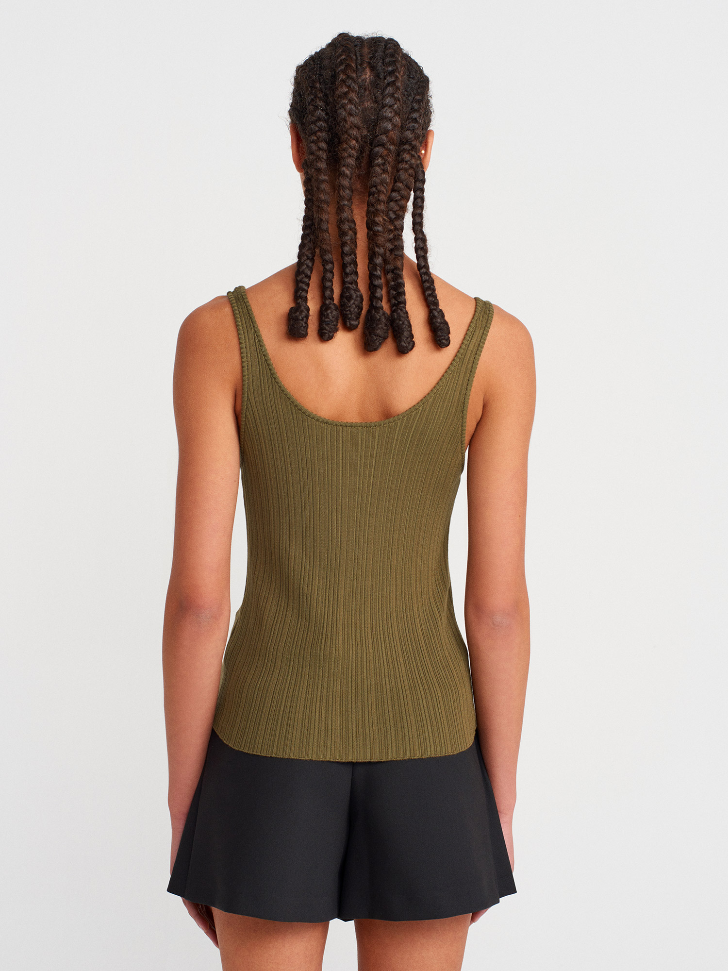 10747 Fitilli İnce Dokulu Triko Bluz-Haki