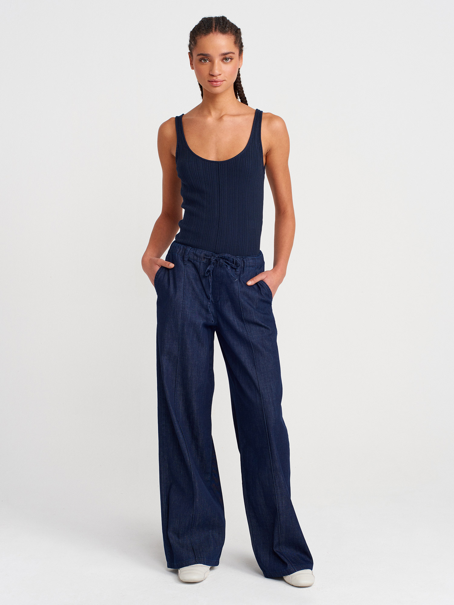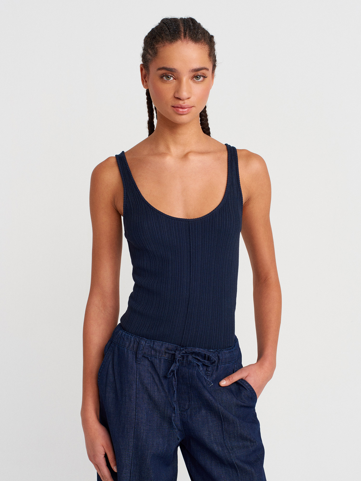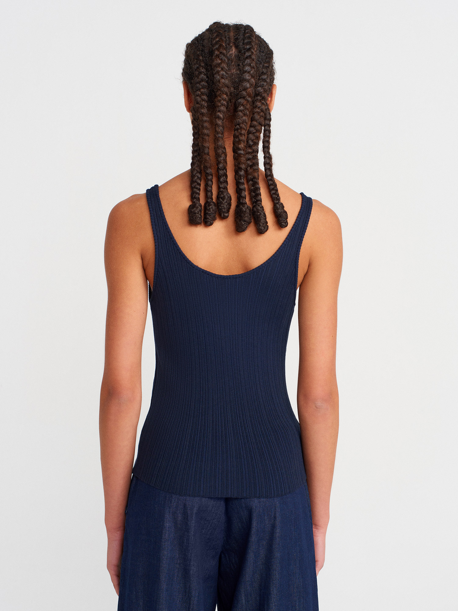 10747 Fitilli İnce Dokulu Triko Bluz-Lacivert