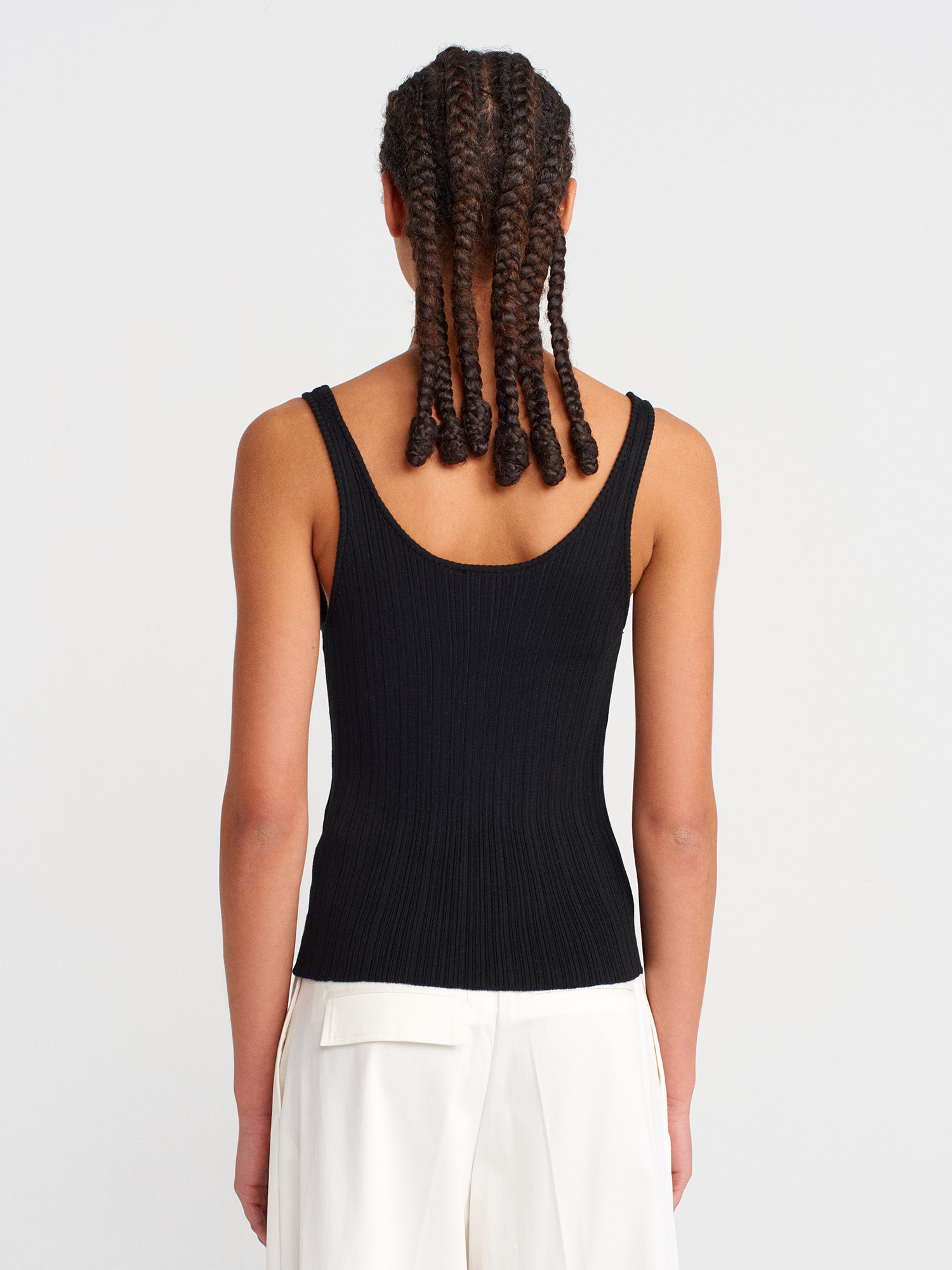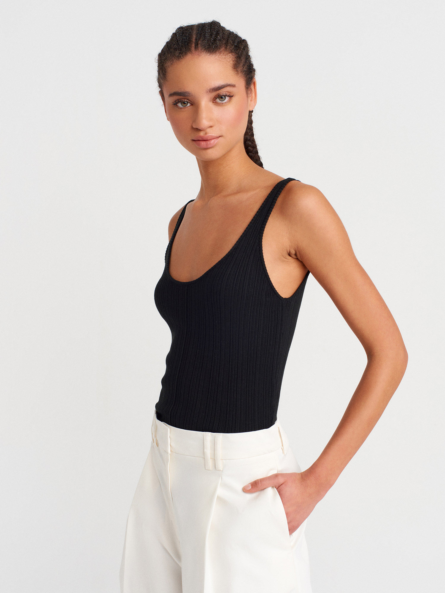 10747 Fitilli İnce Dokulu Triko Bluz-Siyah