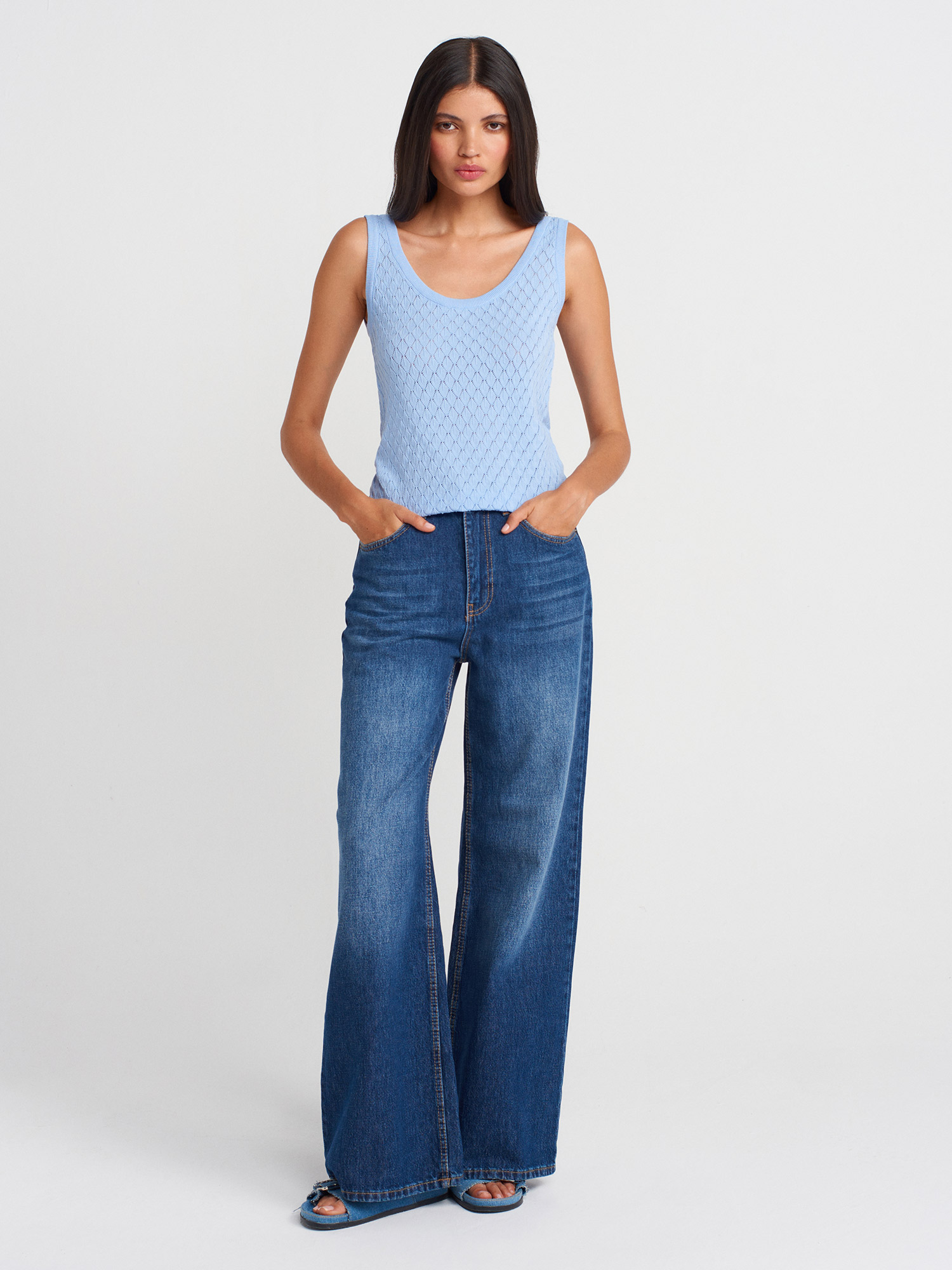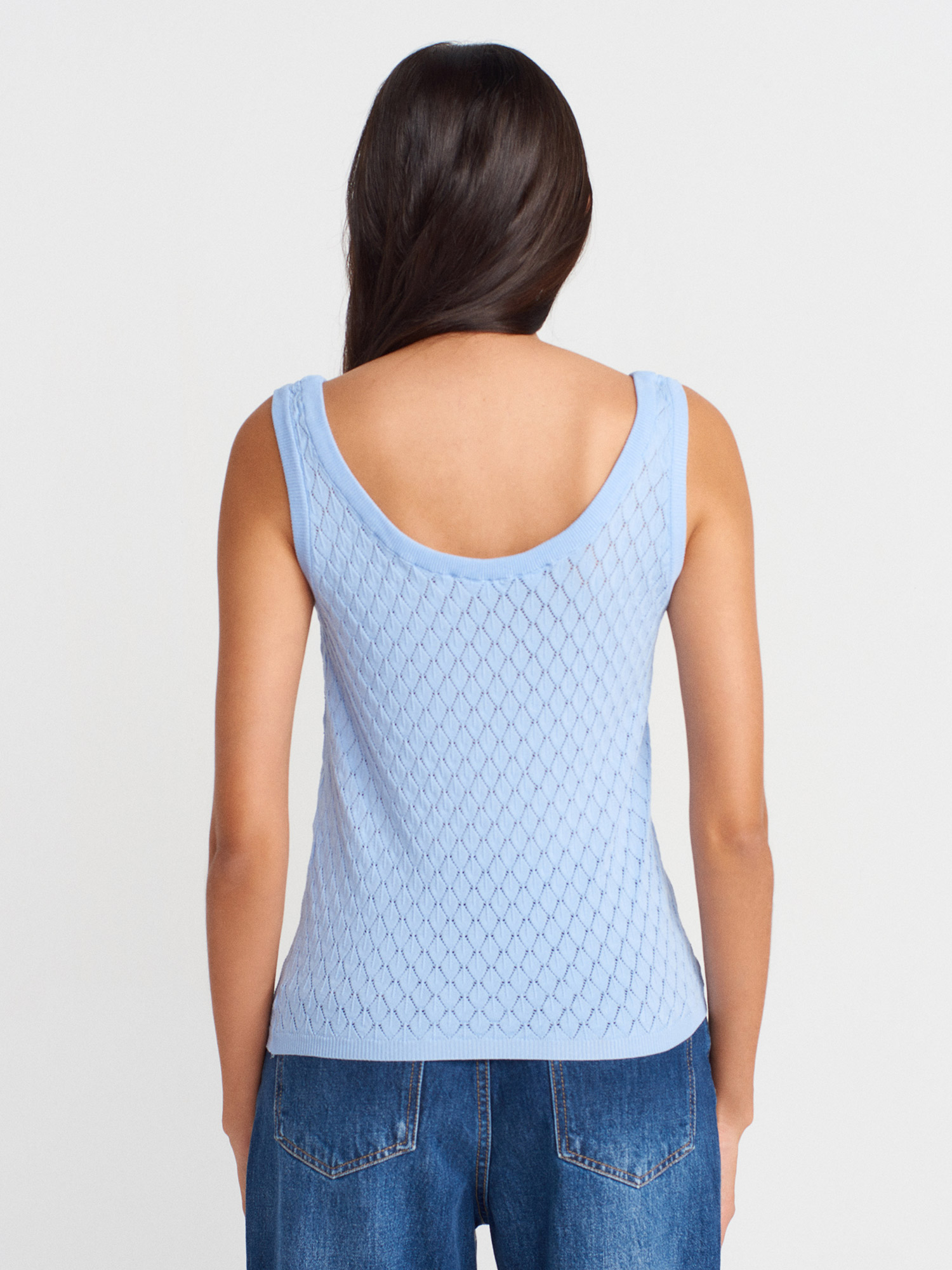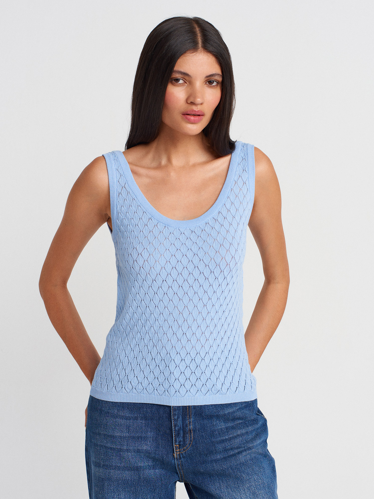 10749 Kalın Askılı Ajurlu Triko Bluz-Mavi