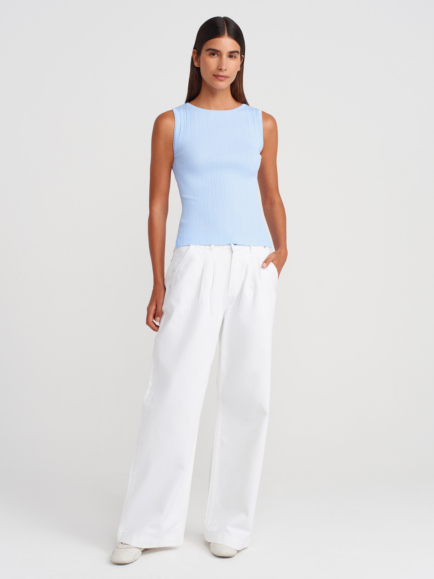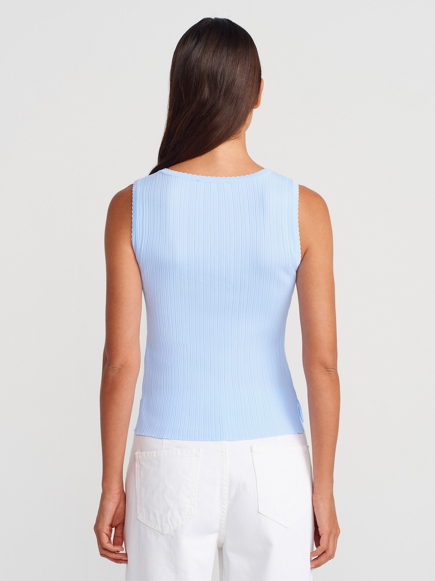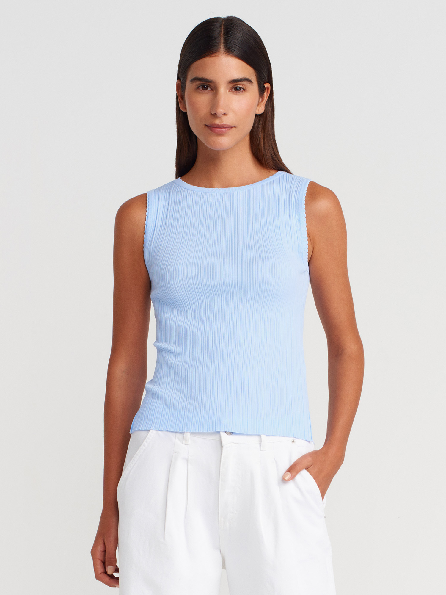 10753 Kayık Yaka Ftilli İnce Triko Bluz-Mavi