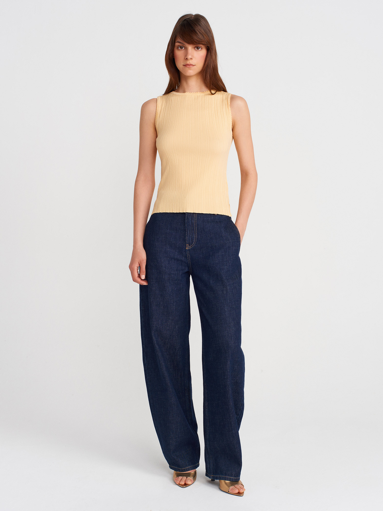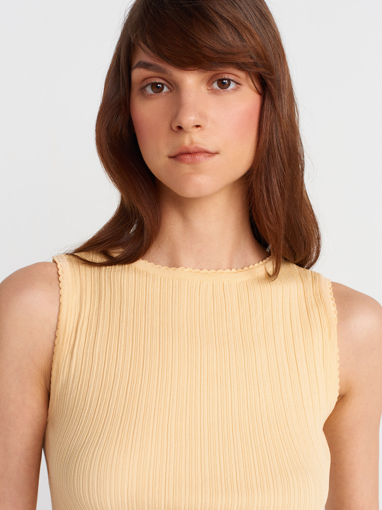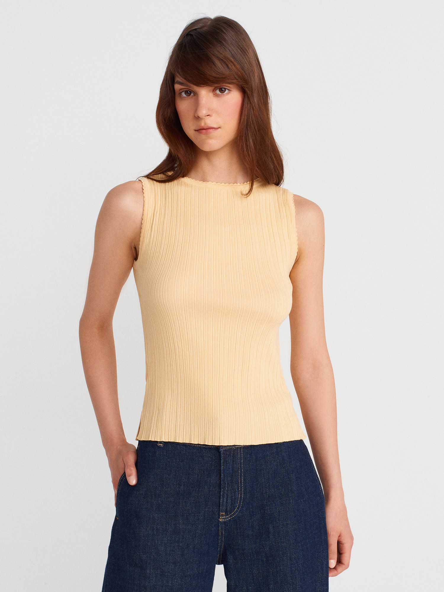 10753 Kayık Yaka Ftilli İnce Triko Bluz-T.Sarı