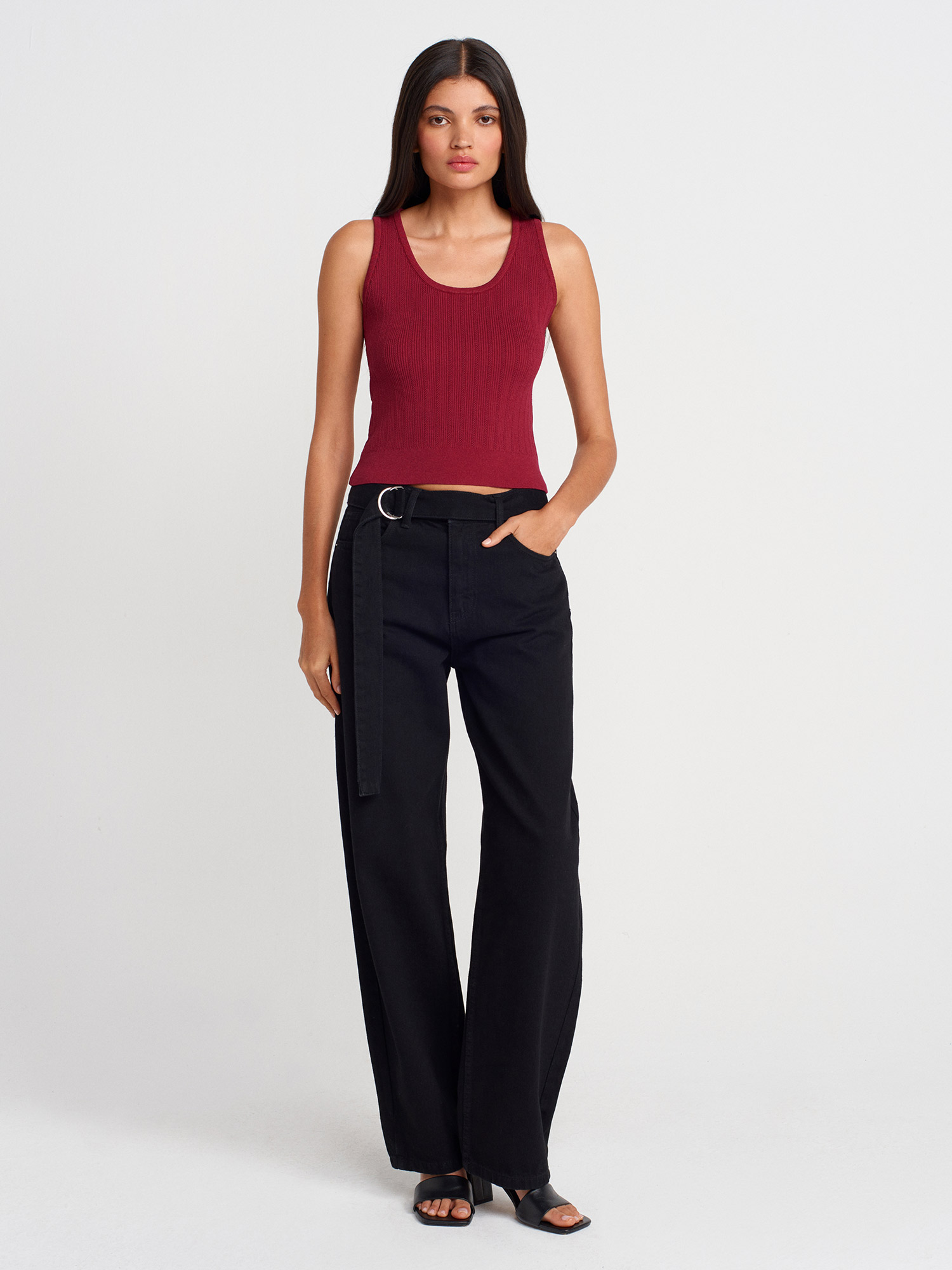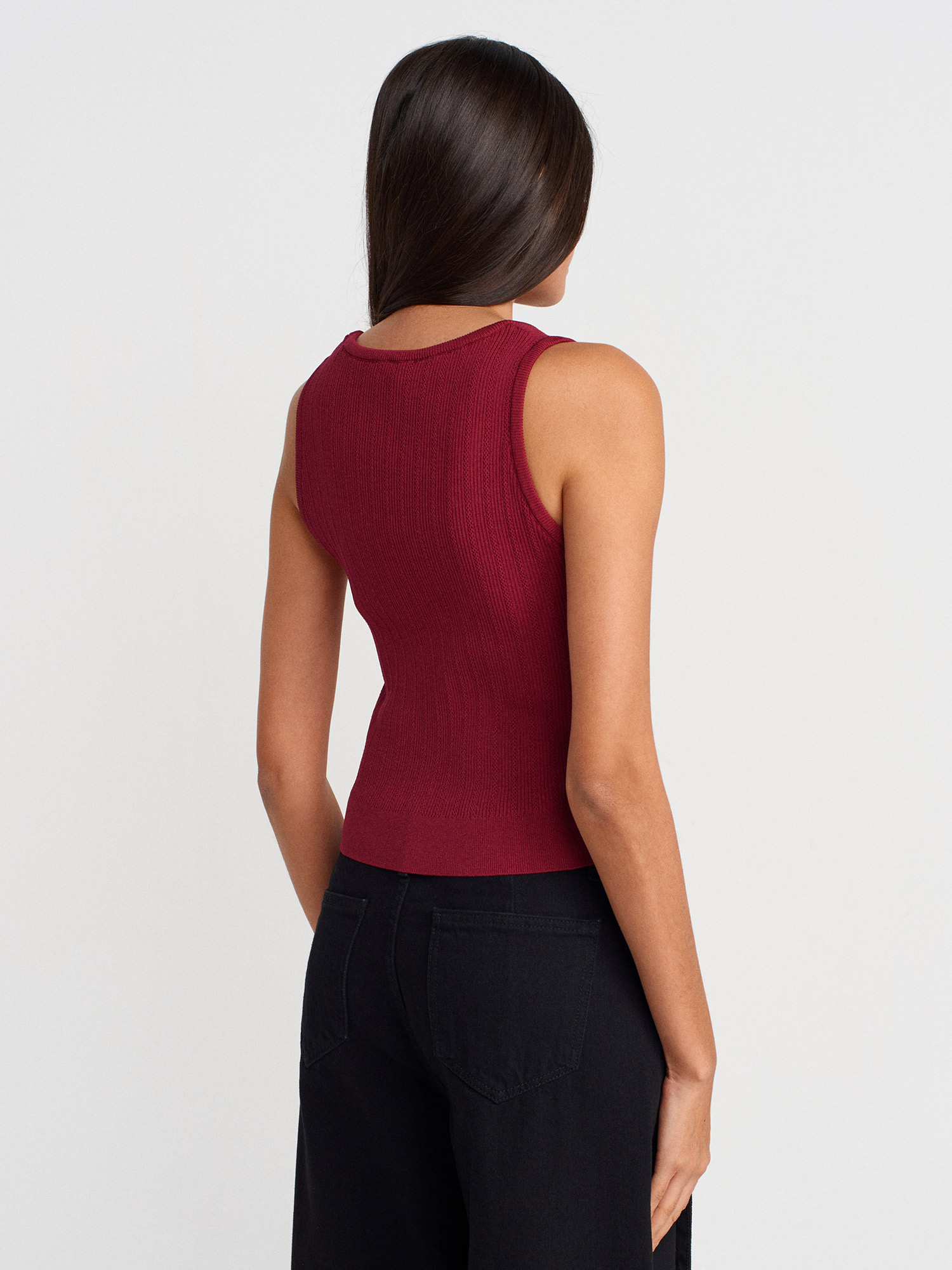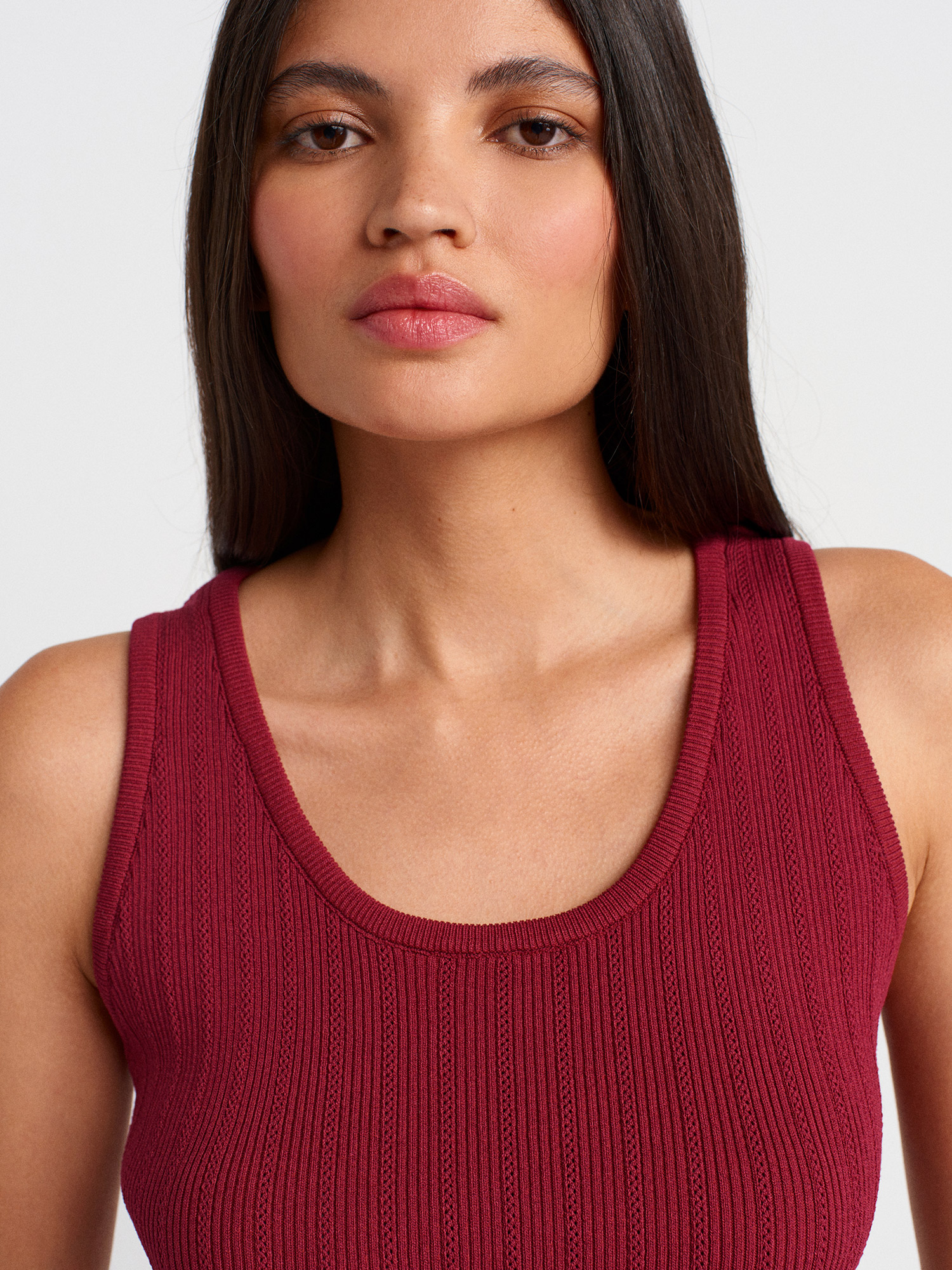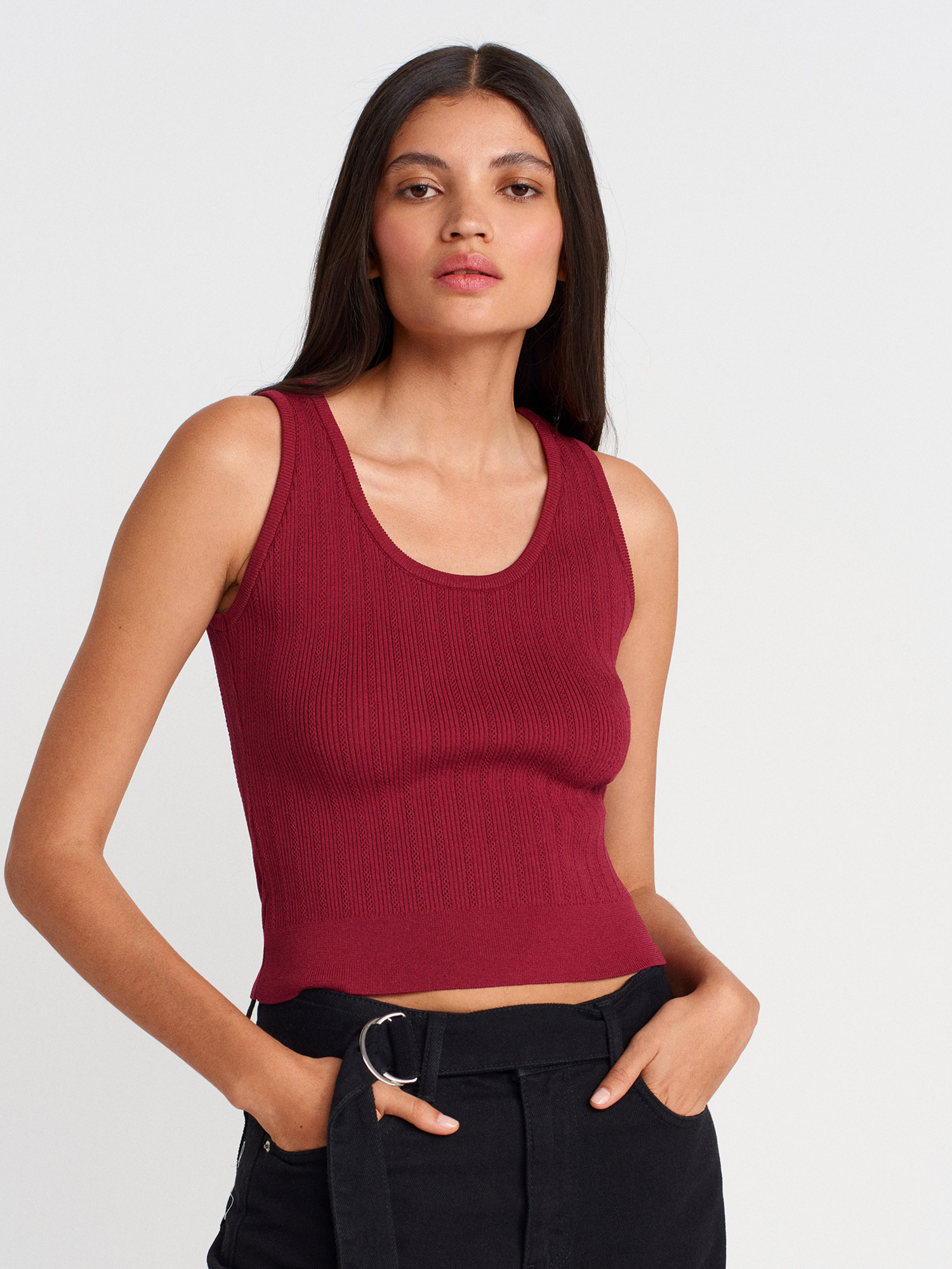 10759 Fitilli Ajurlu Triko Bluz-Açık Bordo