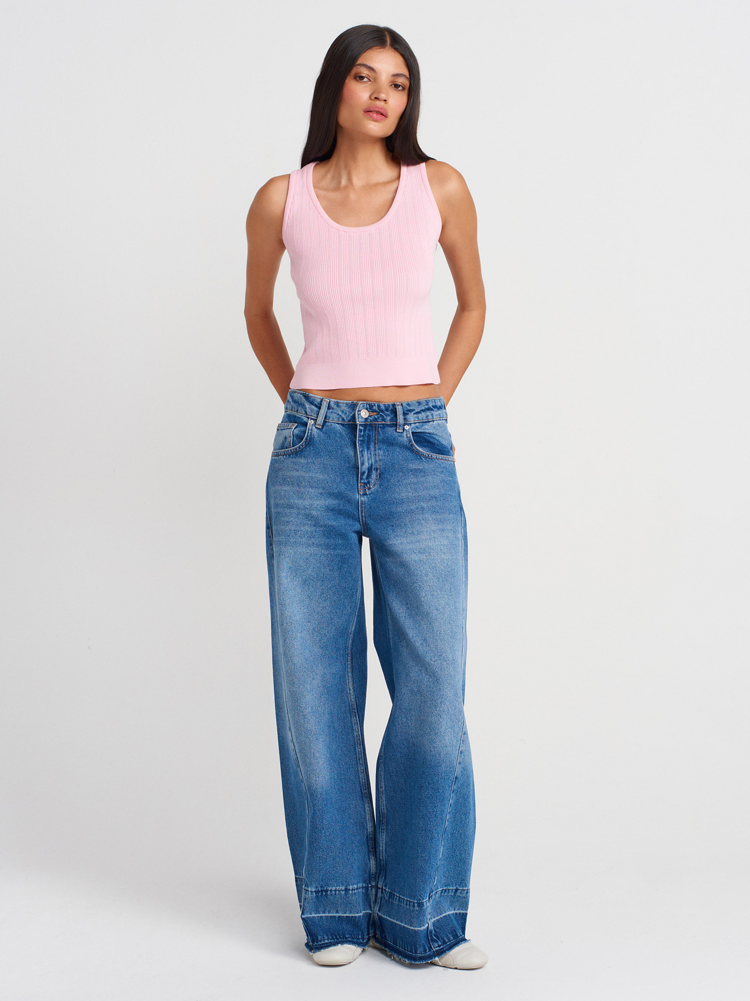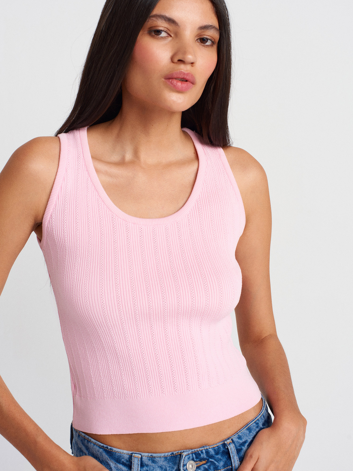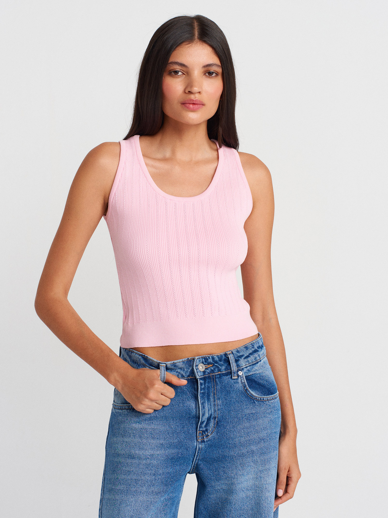 10759 Fitilli Ajurlu Triko Bluz-Pembe