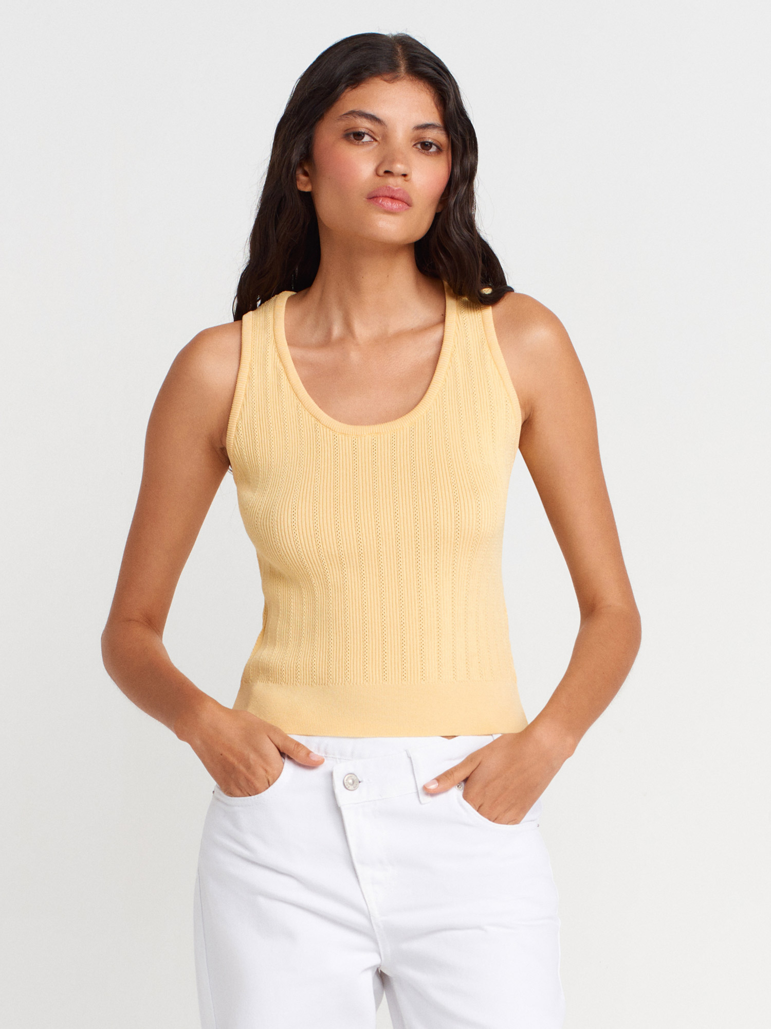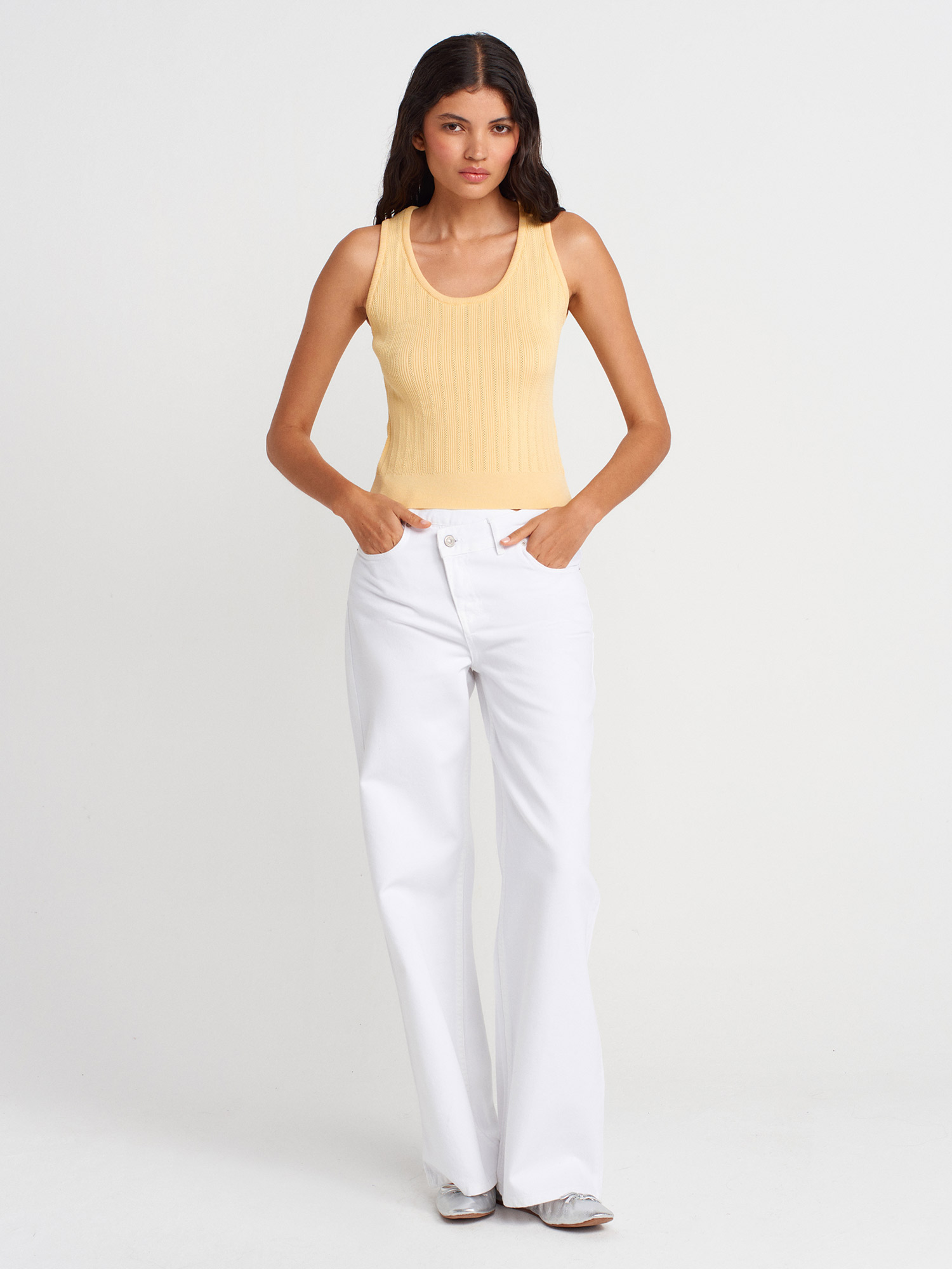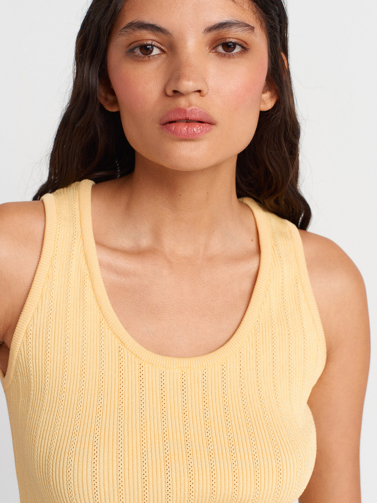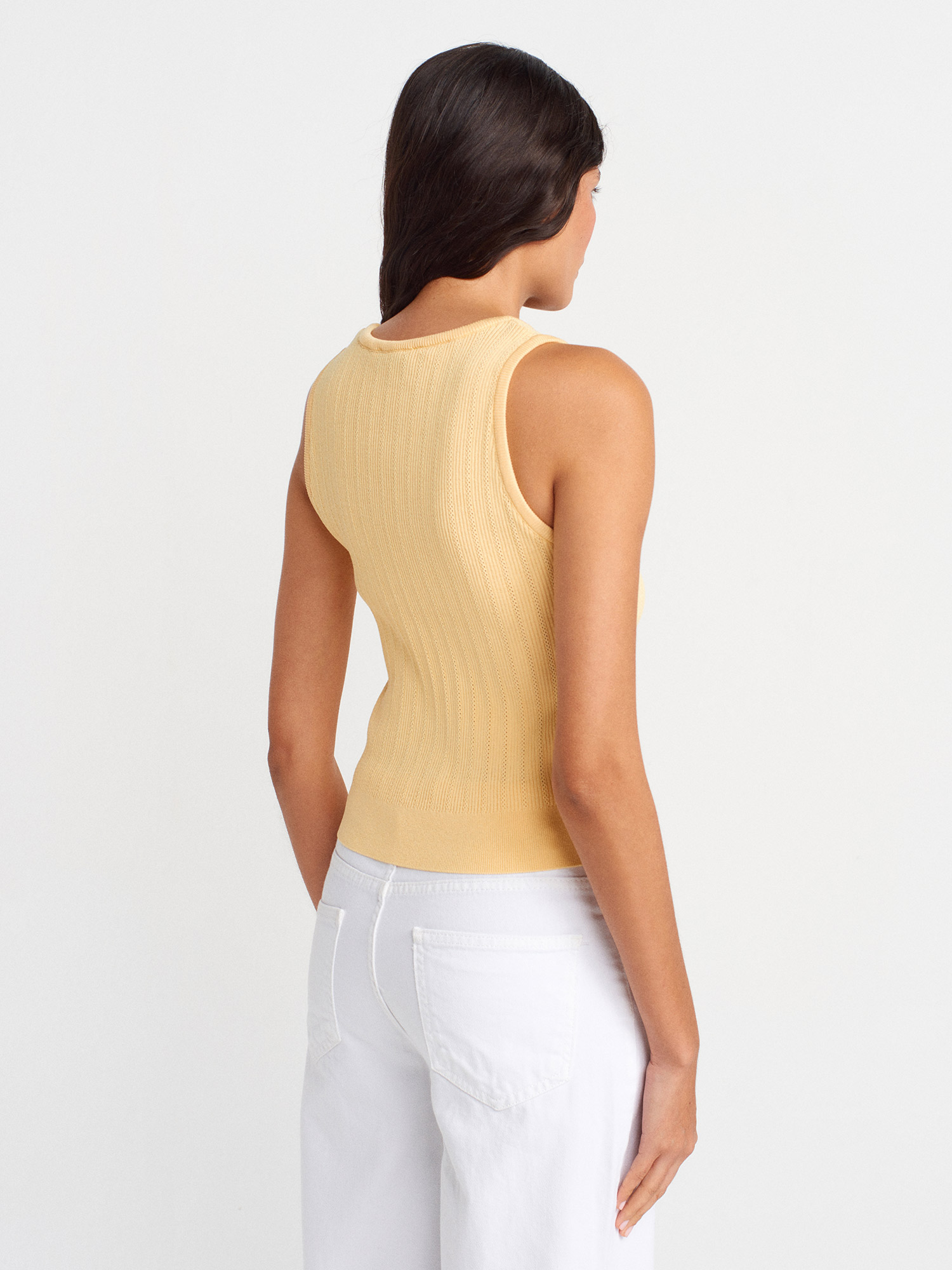 10759 Fitilli Ajurlu Triko Bluz-Sarı