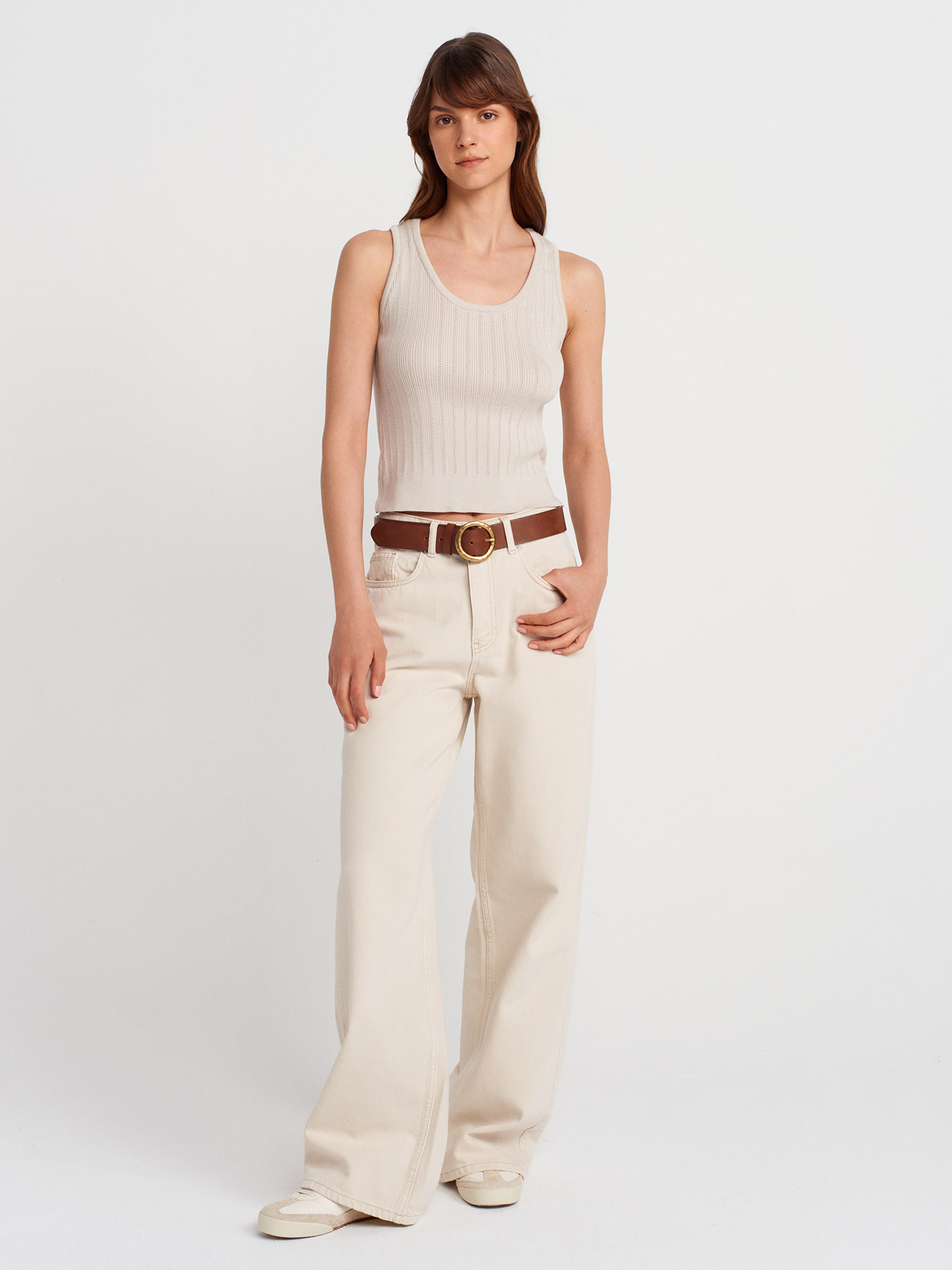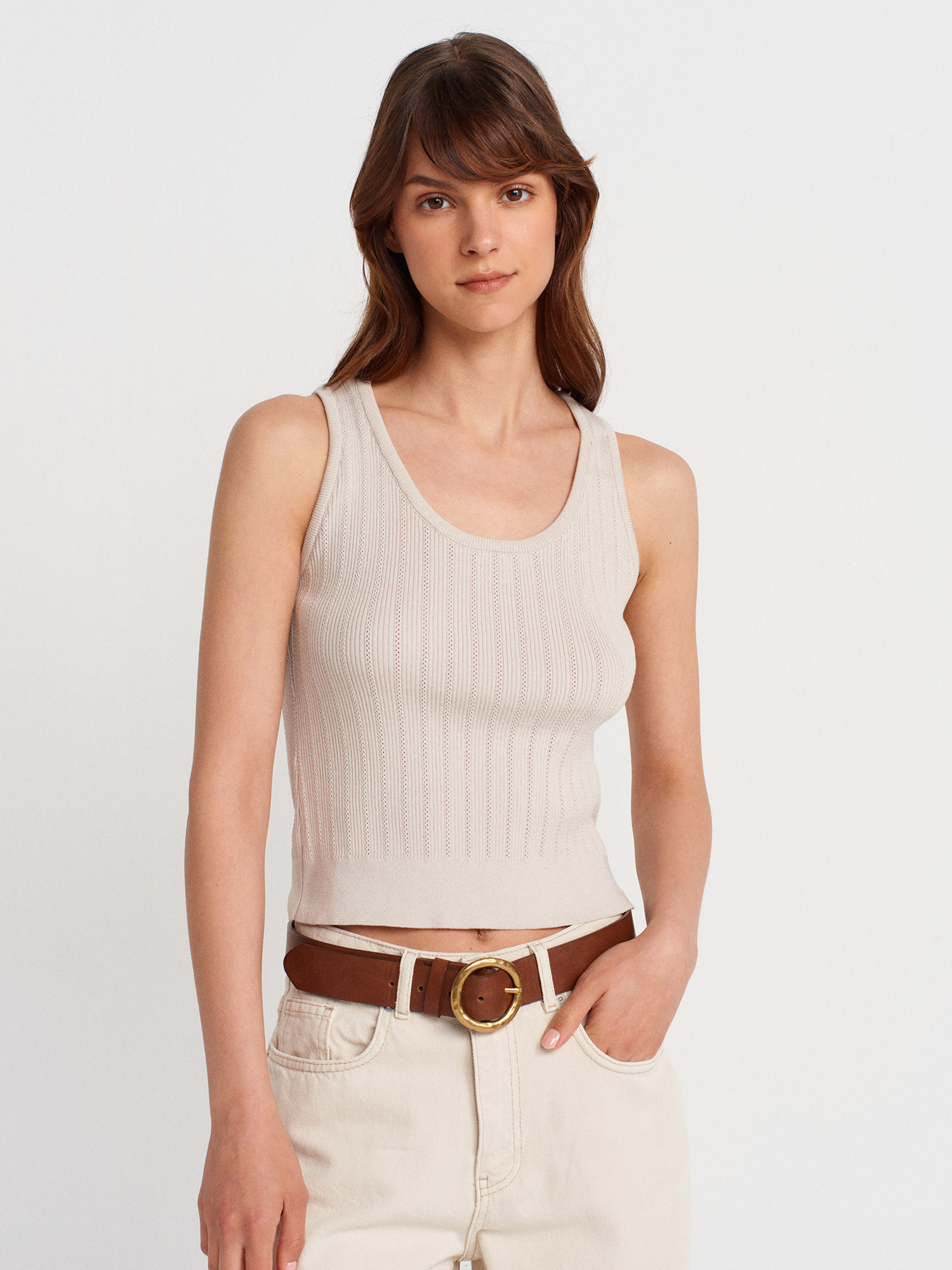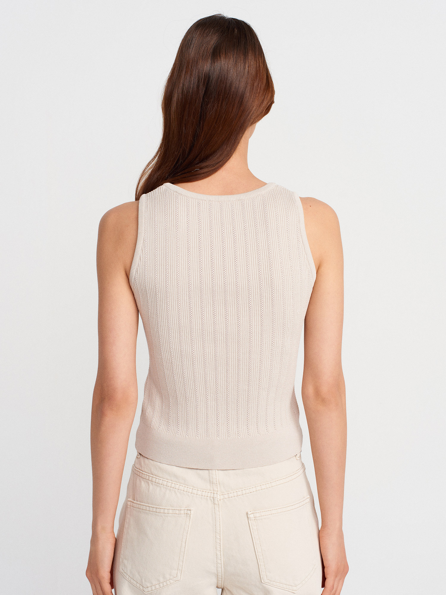 10759 Fitilli Ajurlu Triko Bluz-Taş