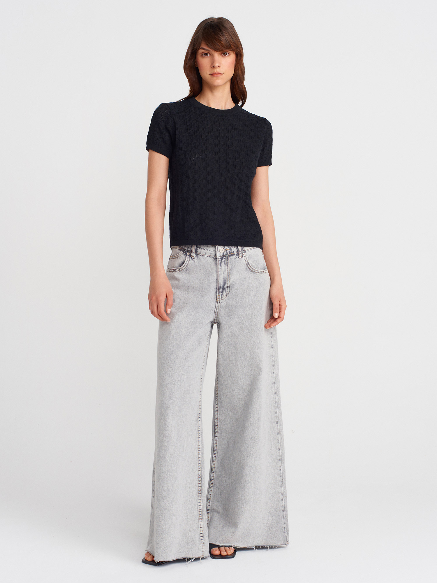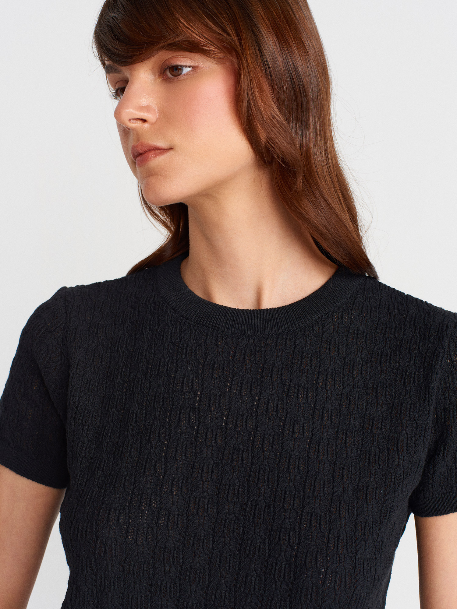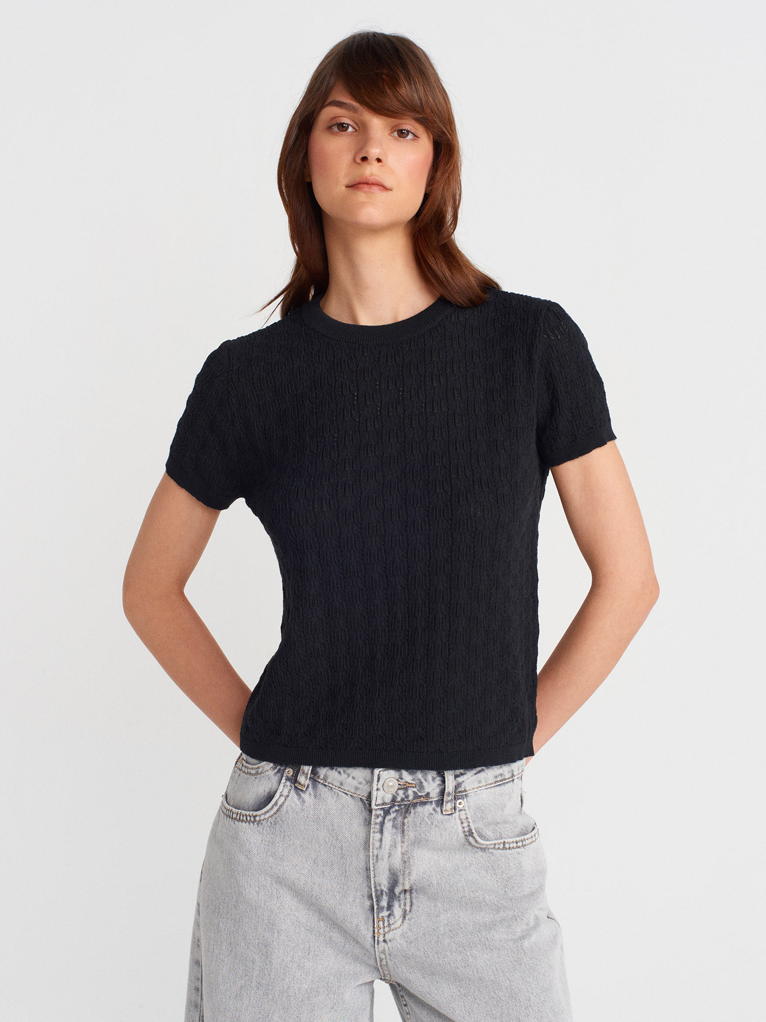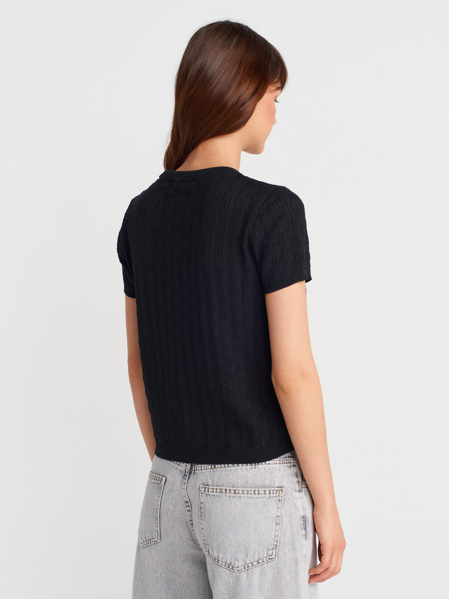 10760 Bisiklet Yaka Desenli Triko Bluz-Siyah