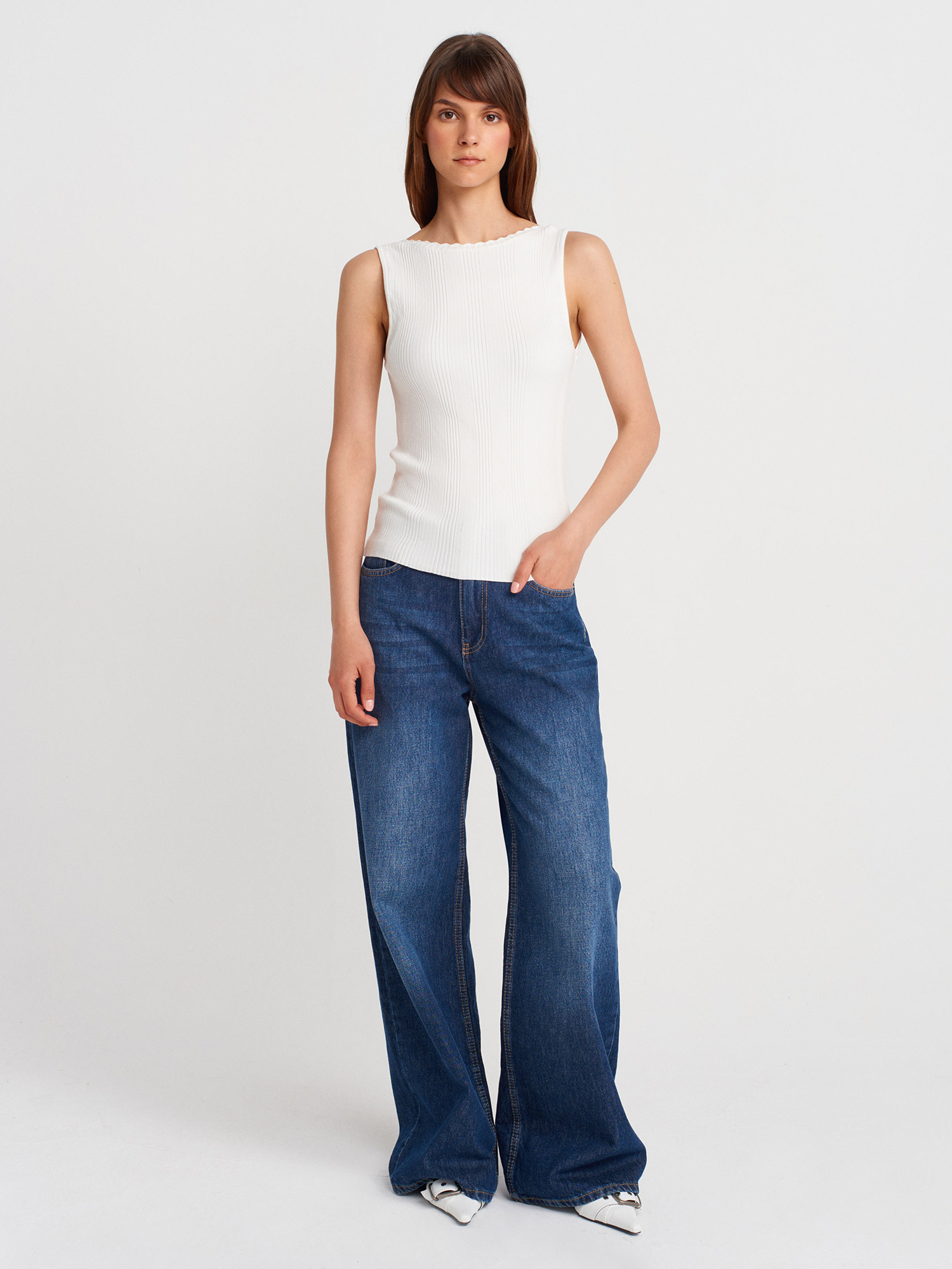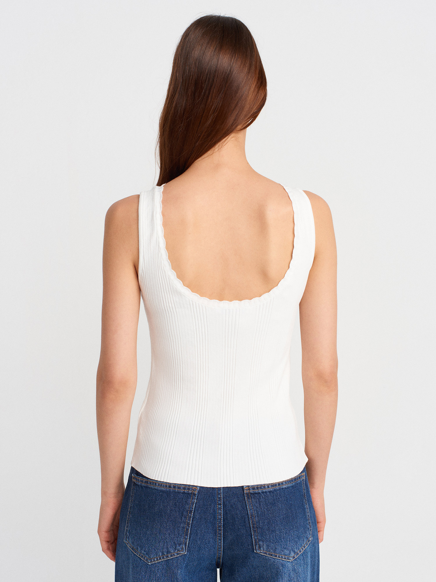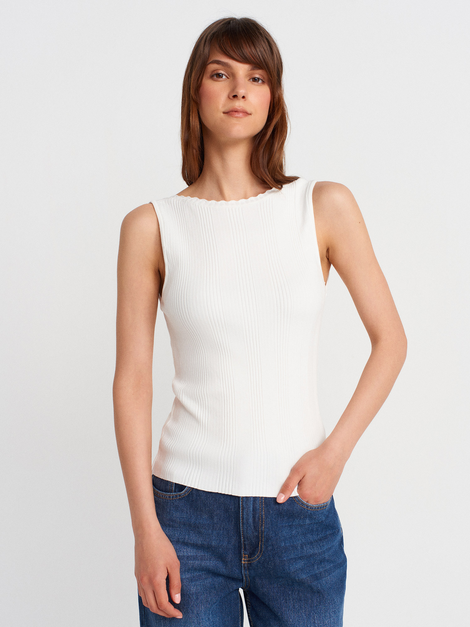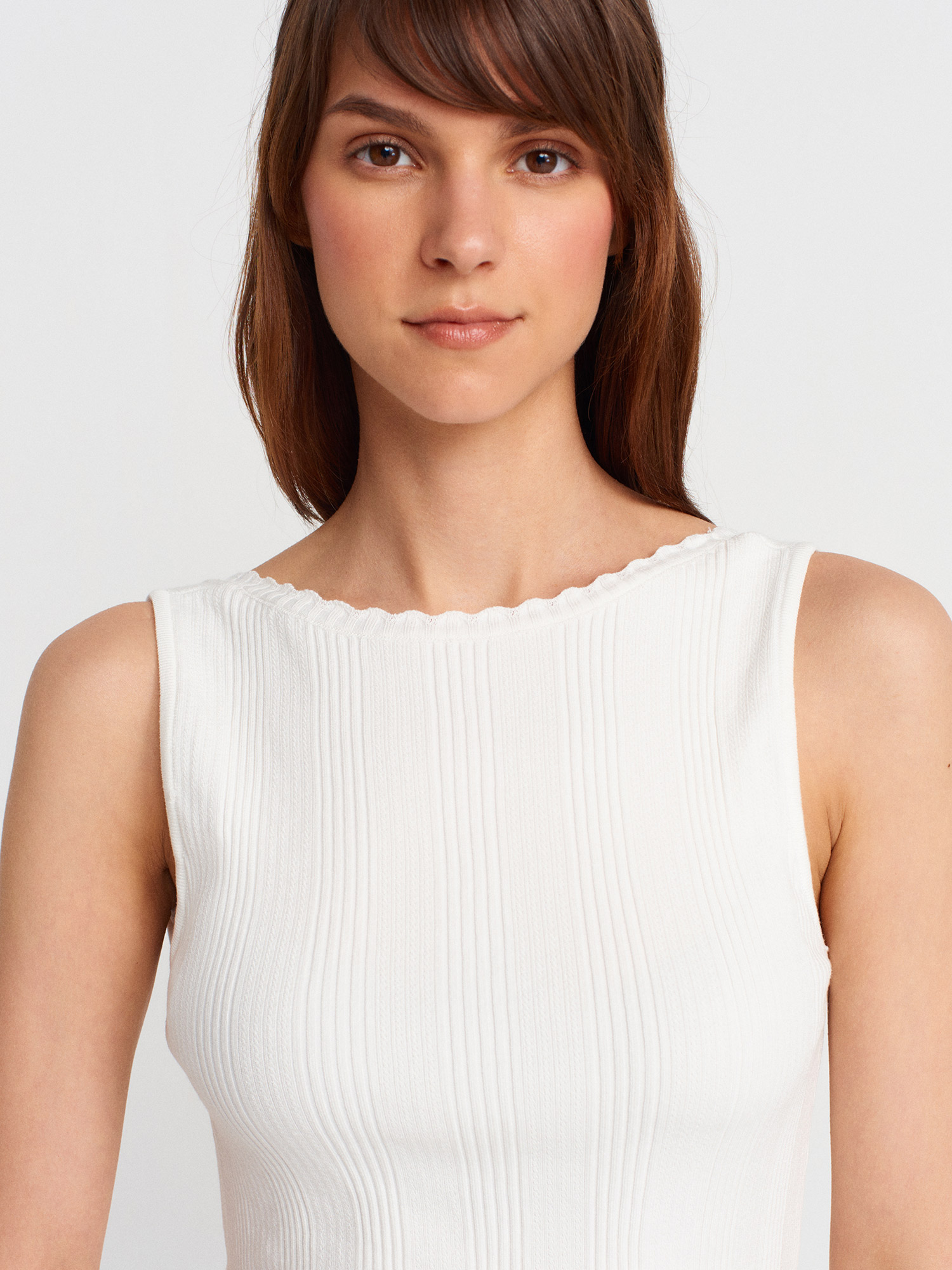10764 Kayık Yaka Fitilli Triko Bluz-Ekru