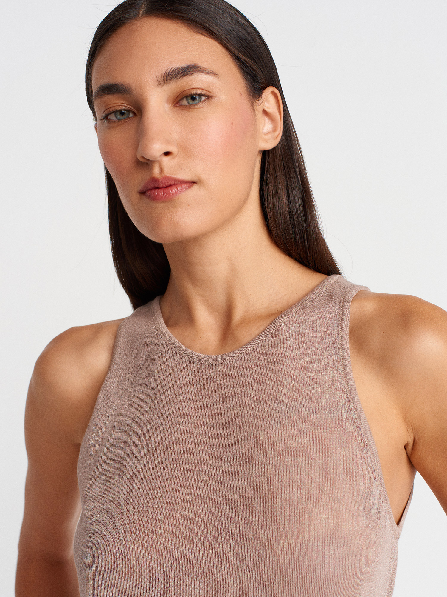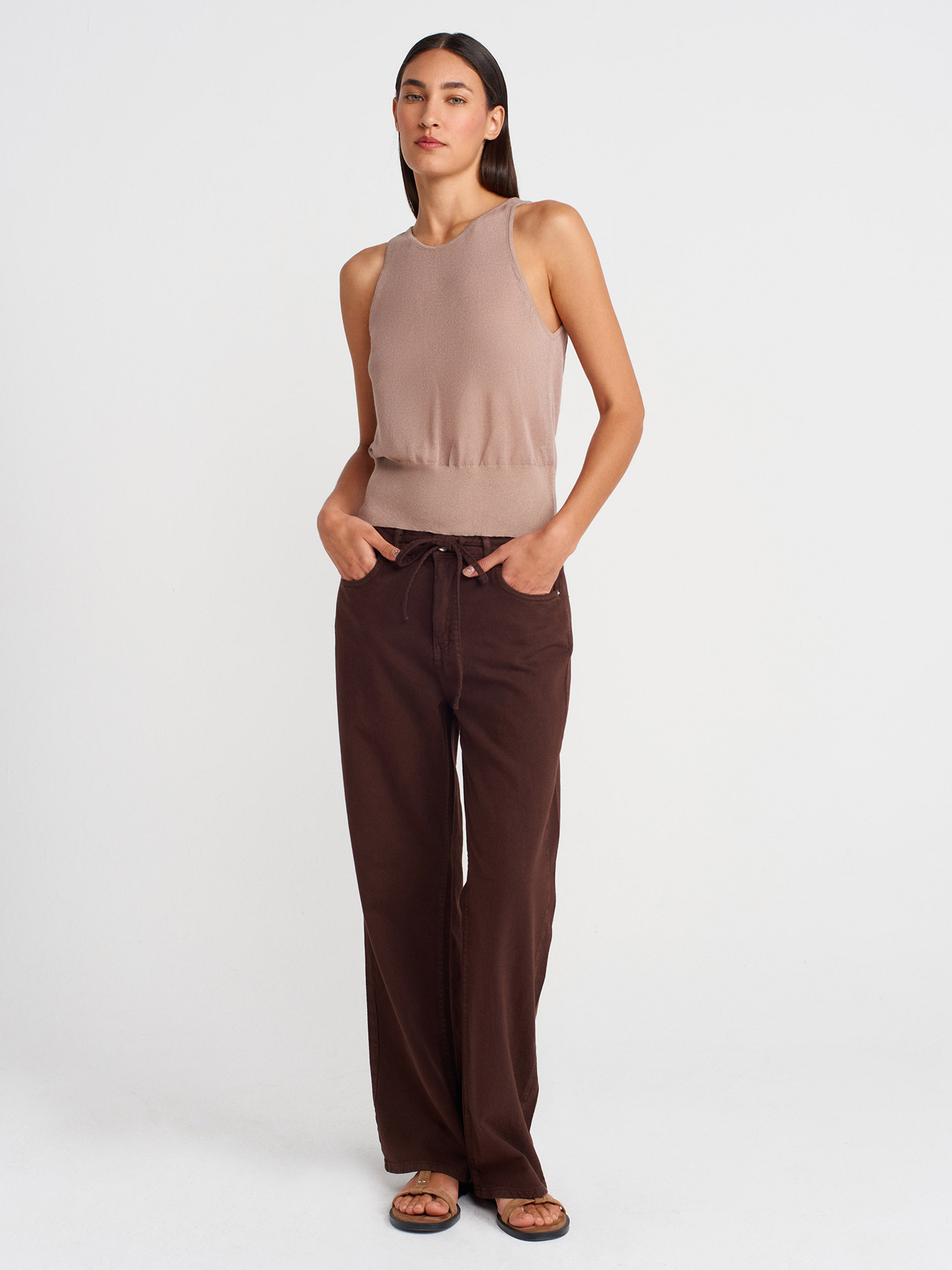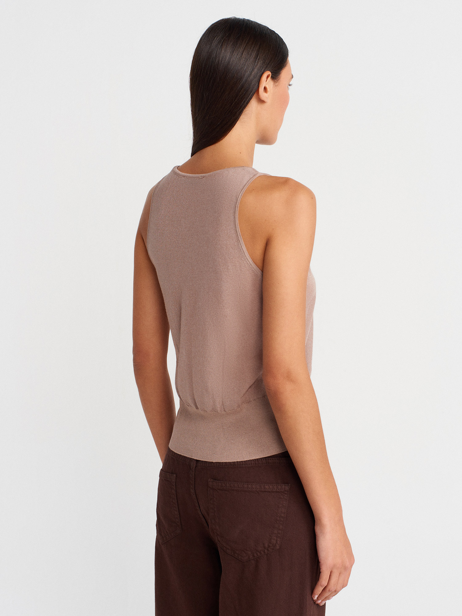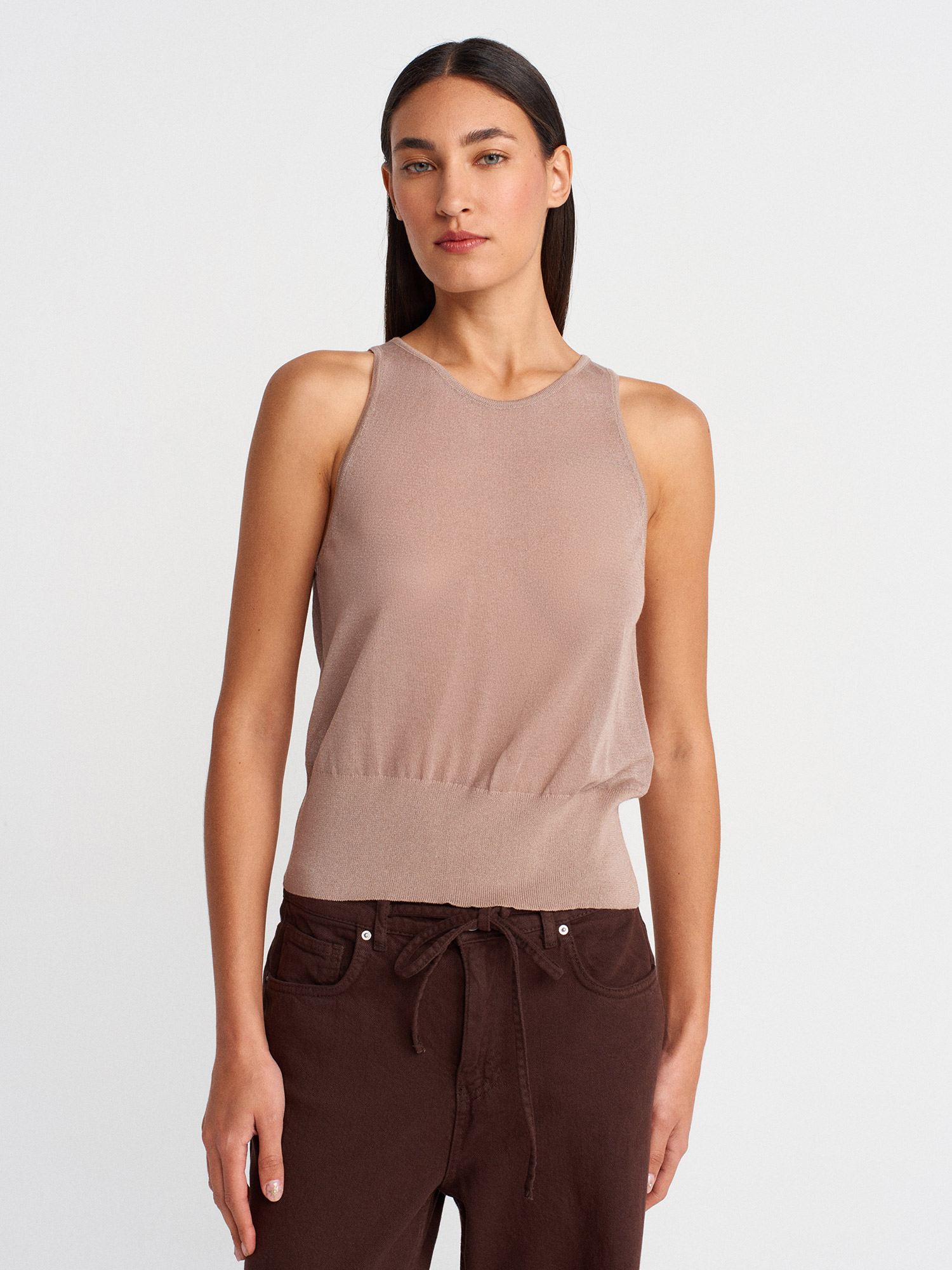 10766 Bisiklet Yaka İnce Triko Bluz-Vizon