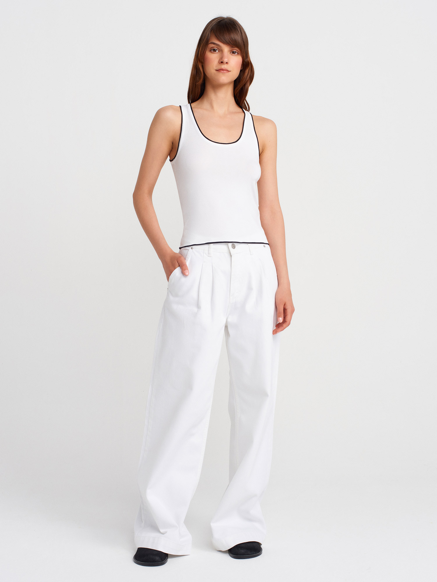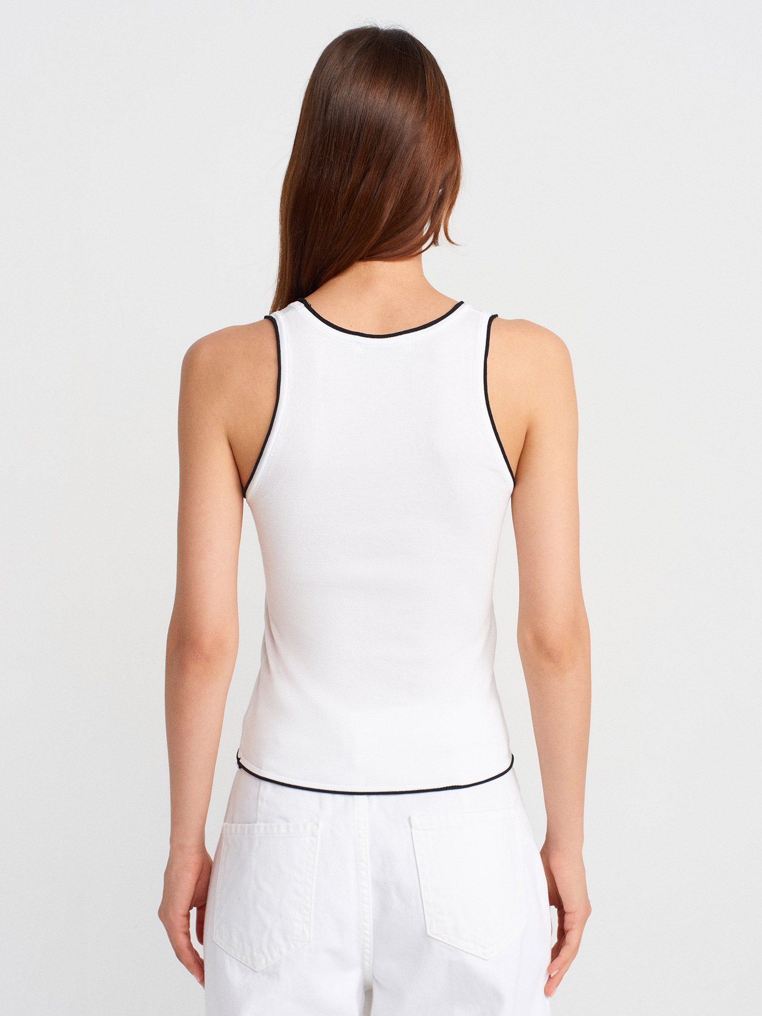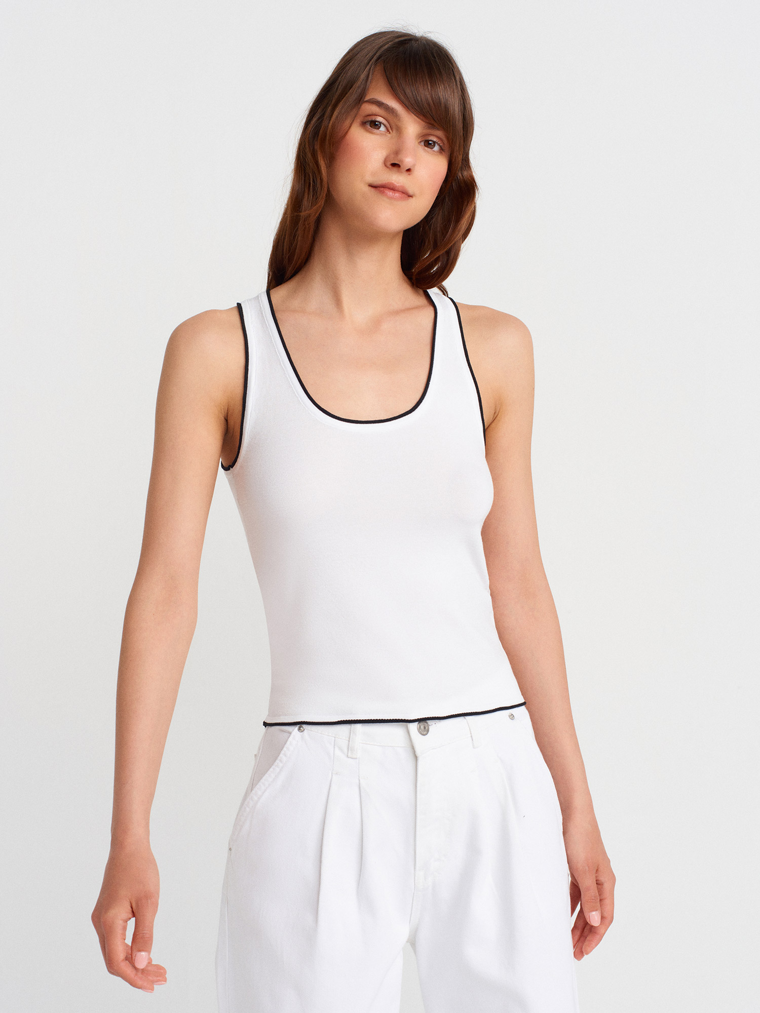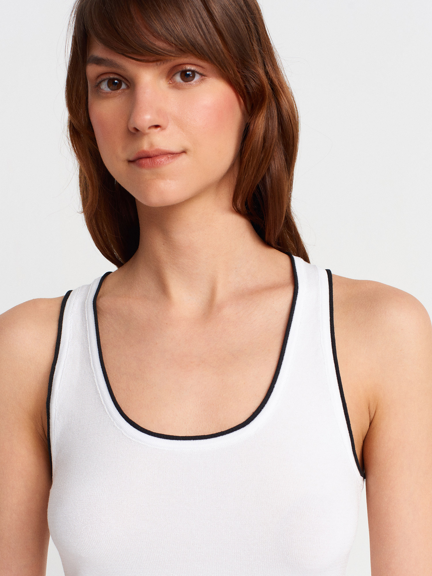 10769 Askılı Kontrast İnce Triko Bluz-B.-Siyah