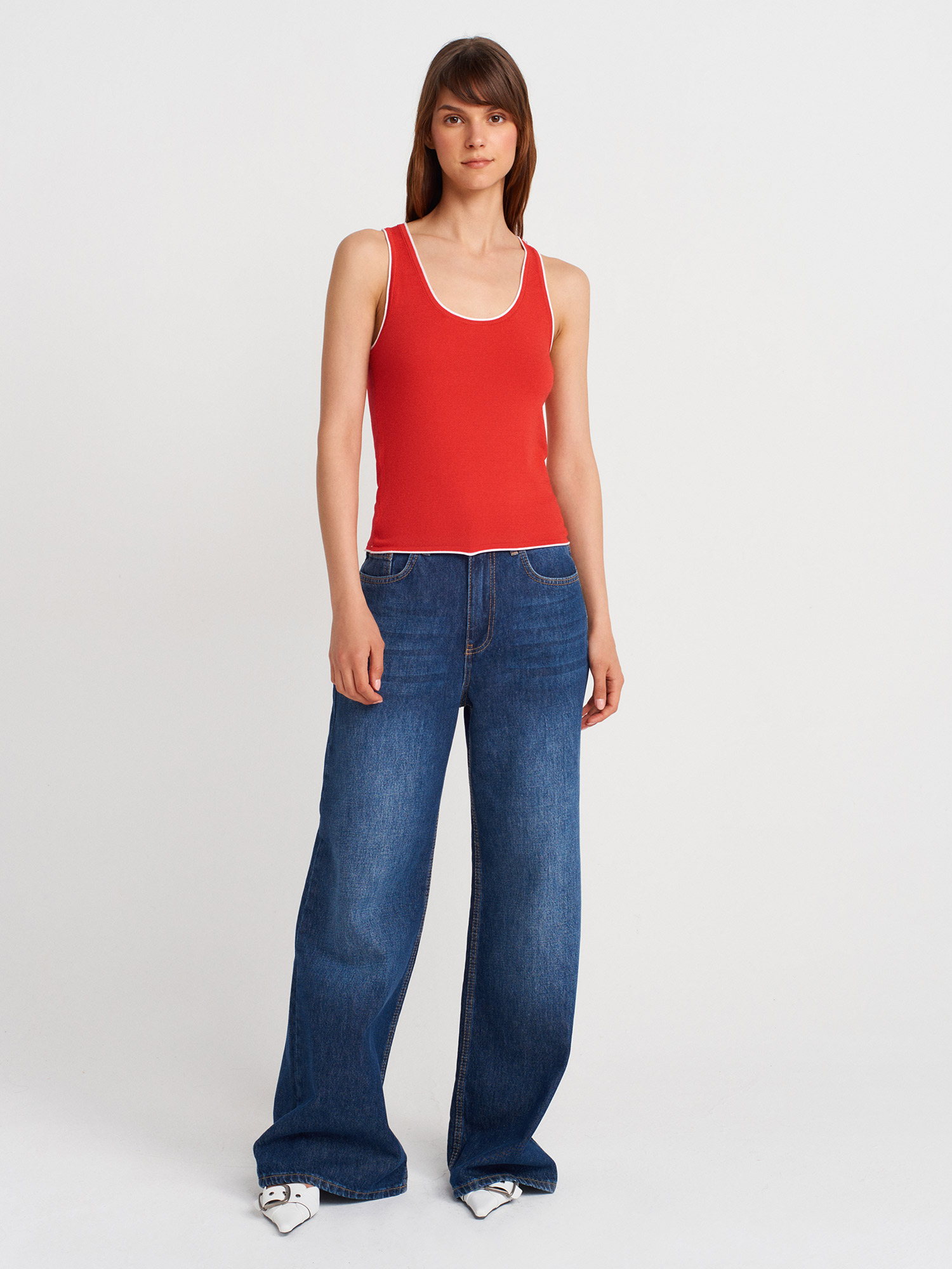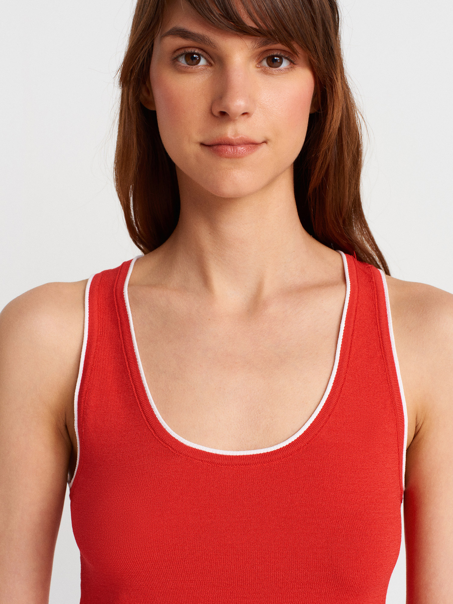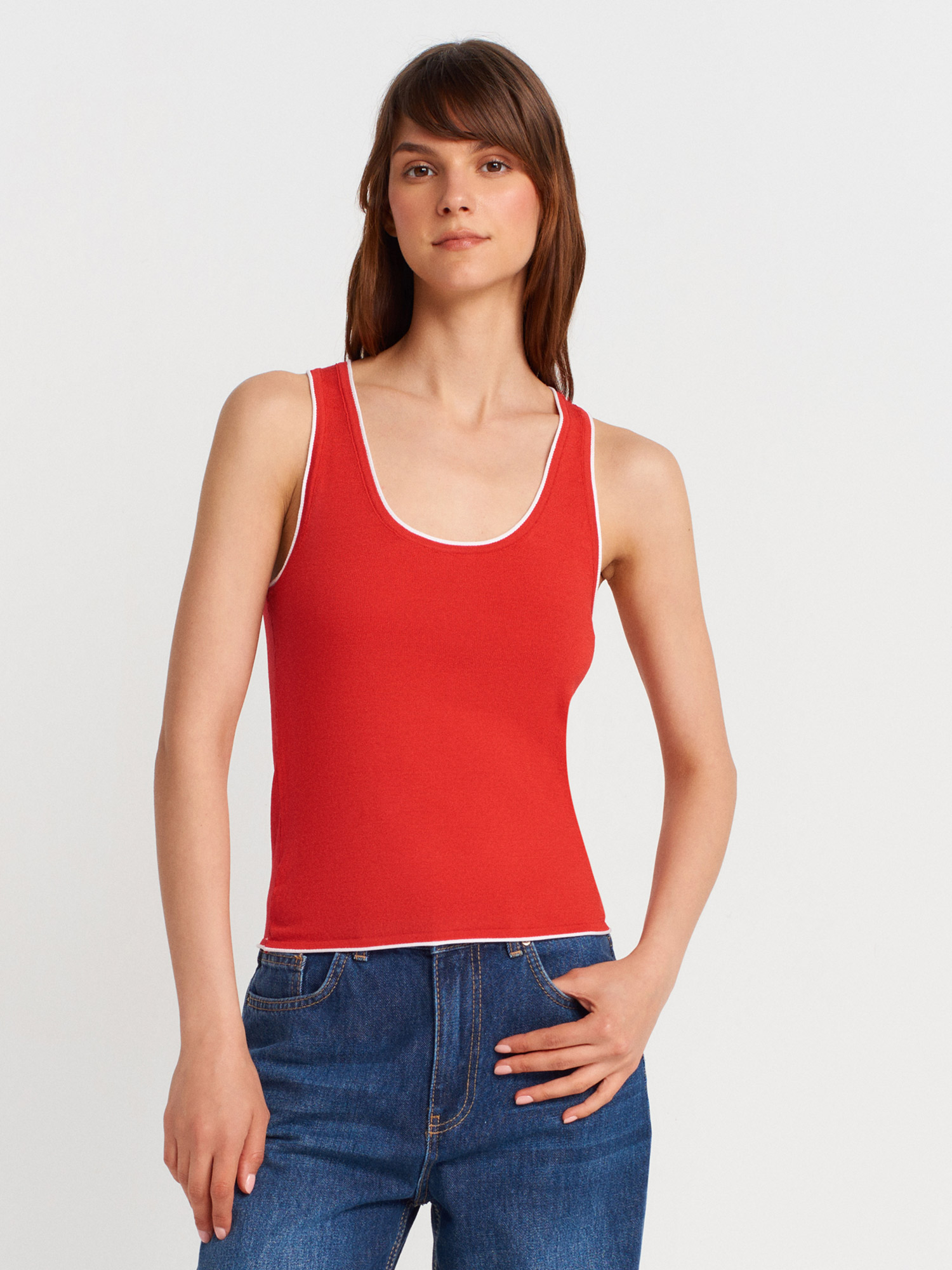 10769 Askılı Kontrast İnce Triko Bluz-K.-Beyaz