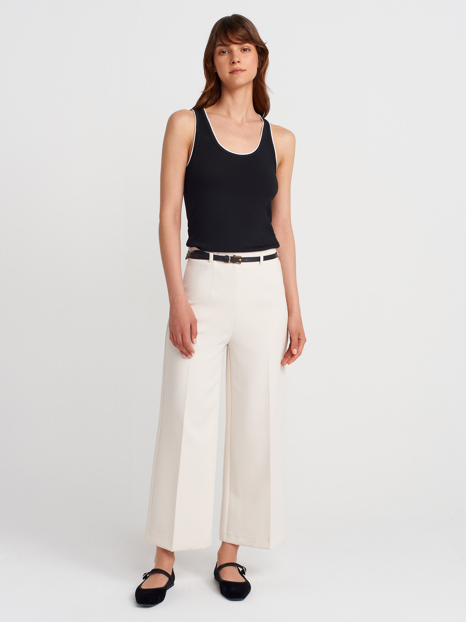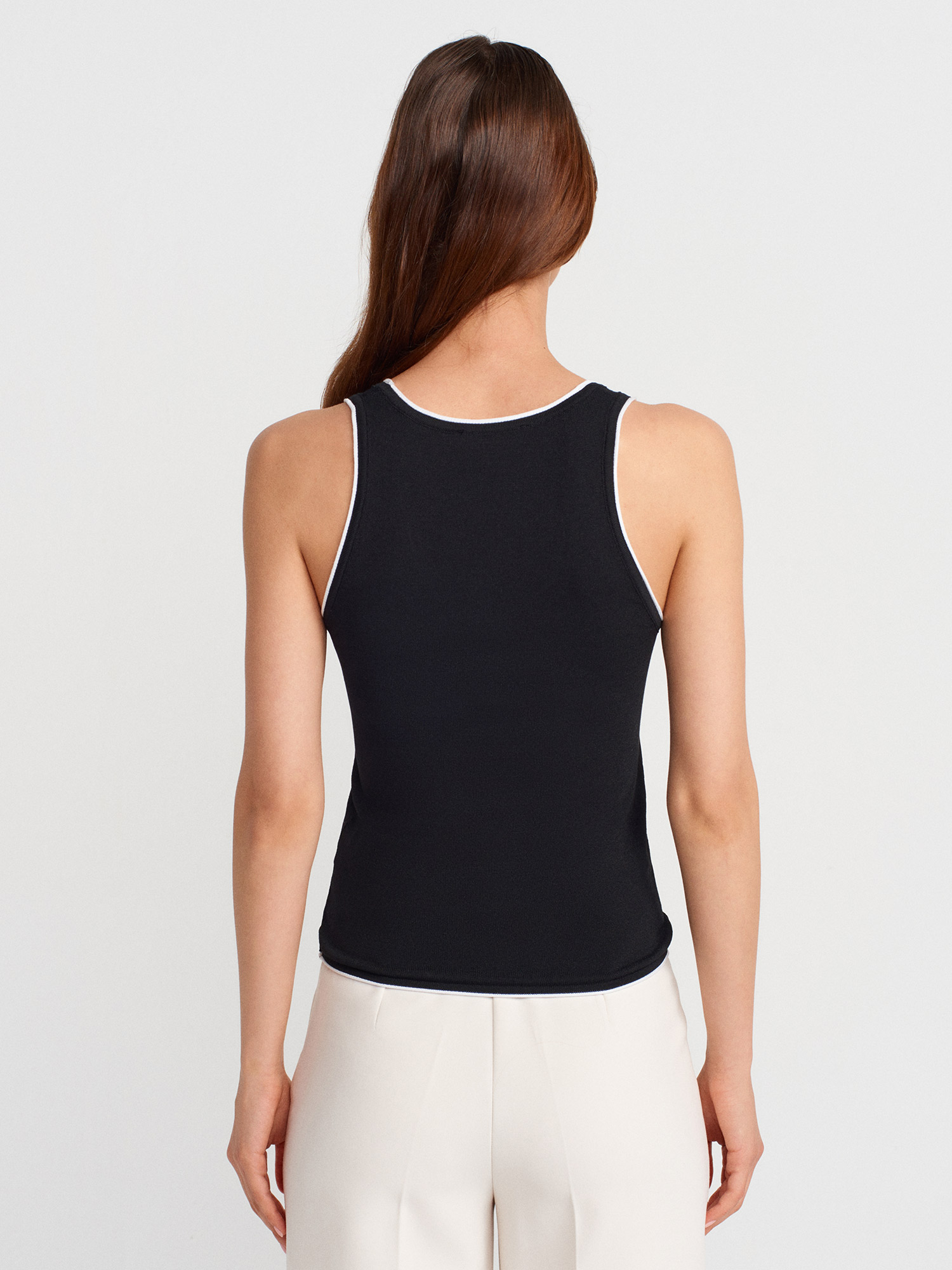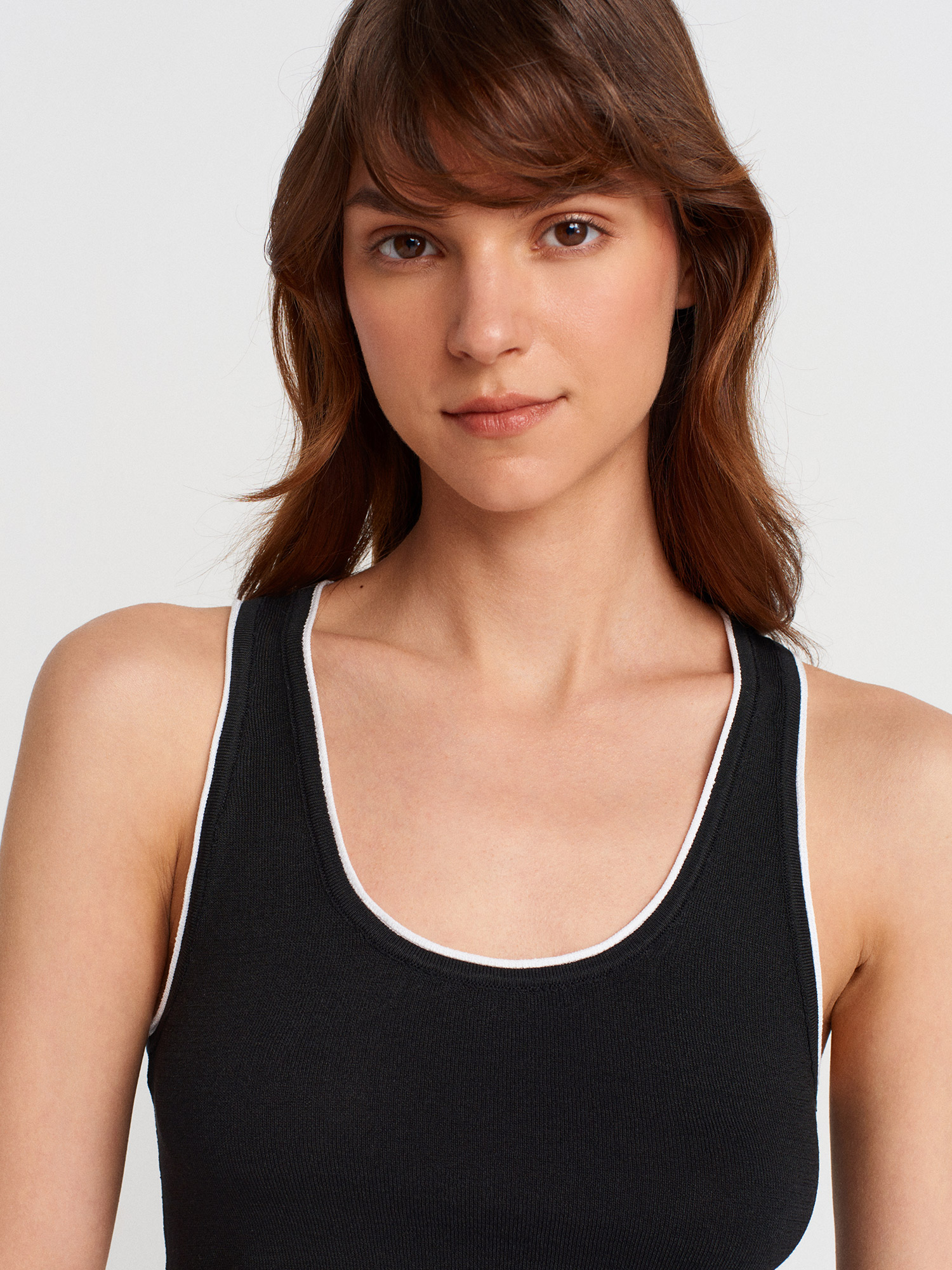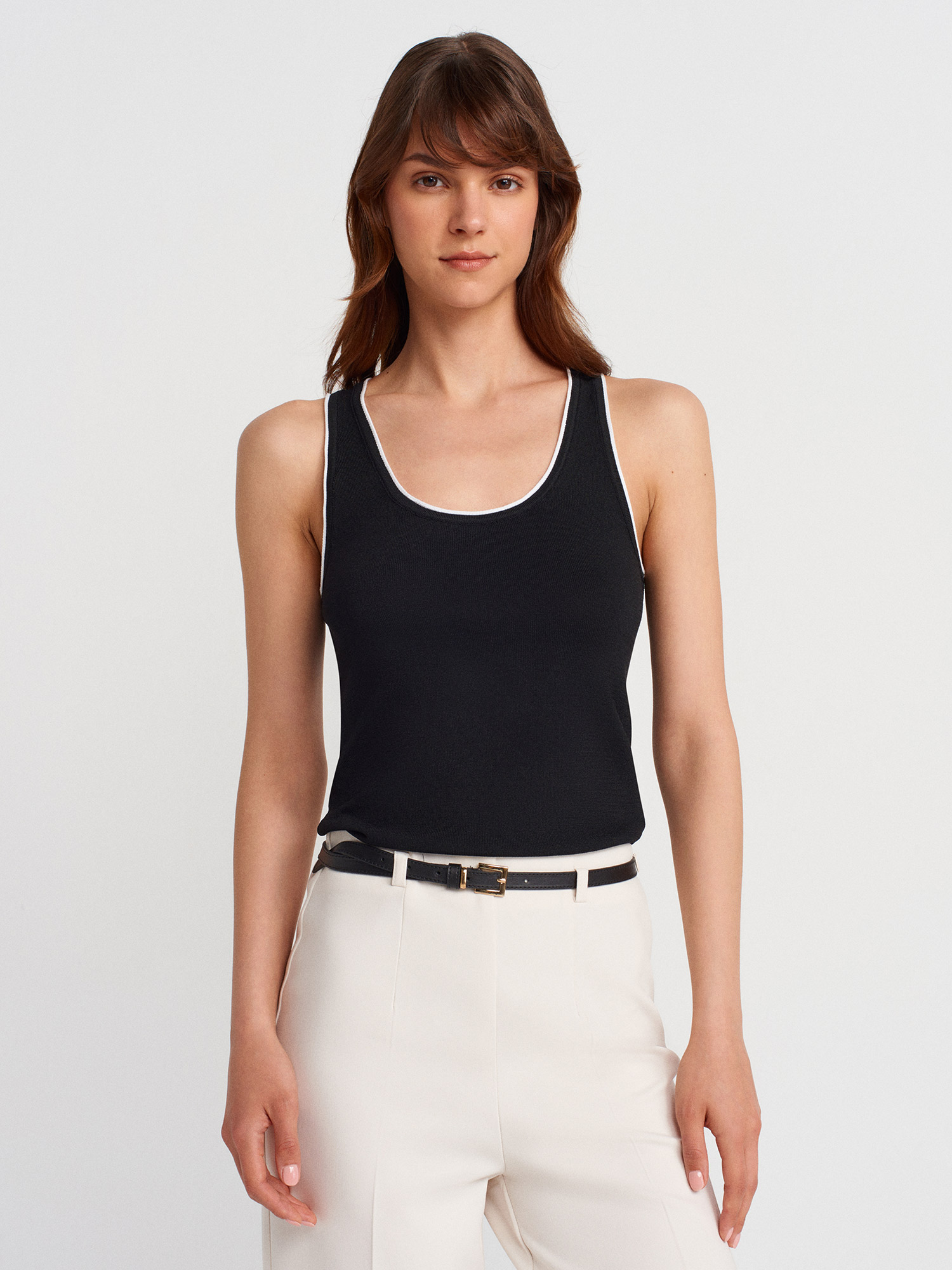 10769 Askılı Kontrast İnce Triko Bluz-S.-Beyaz