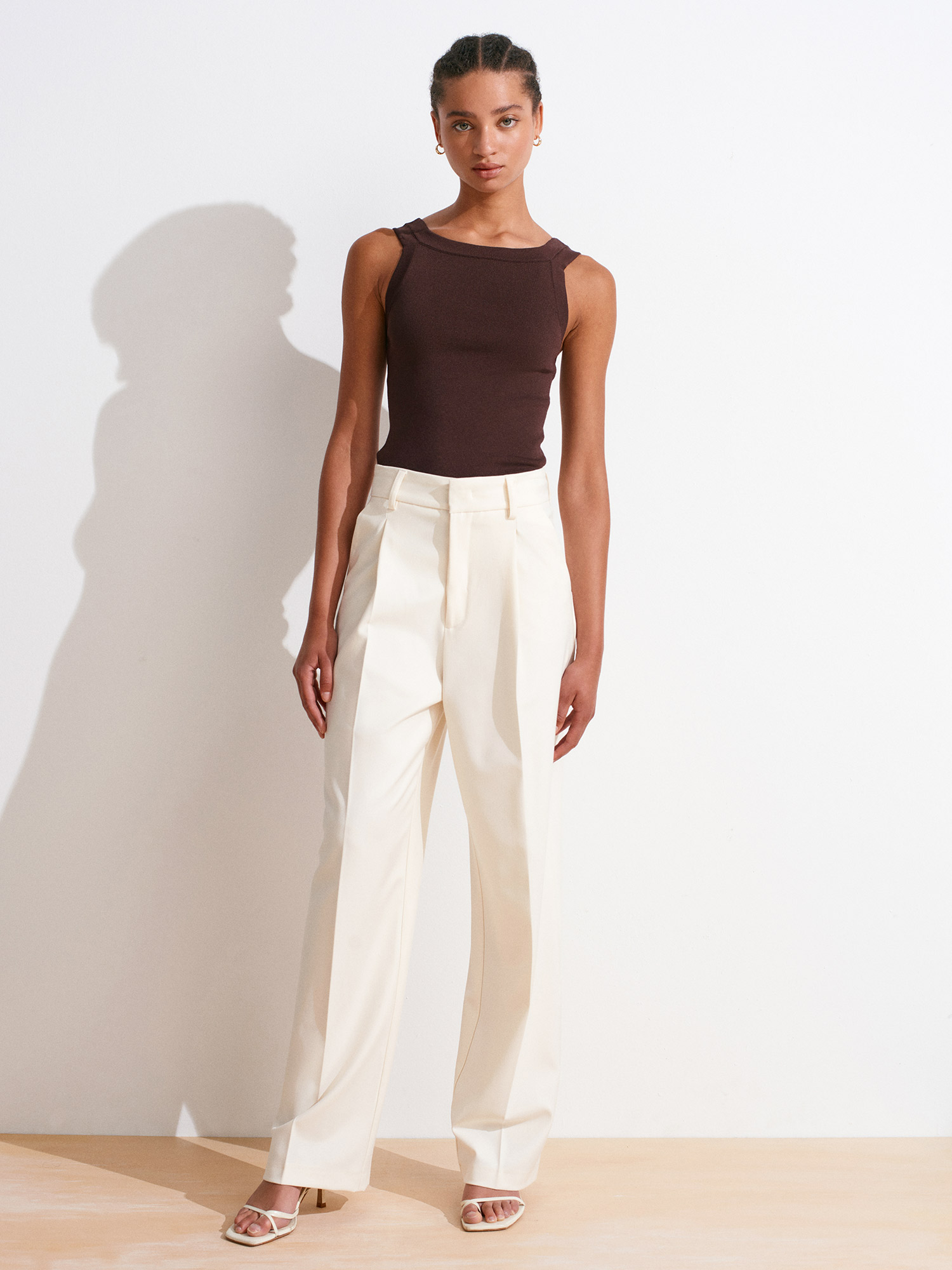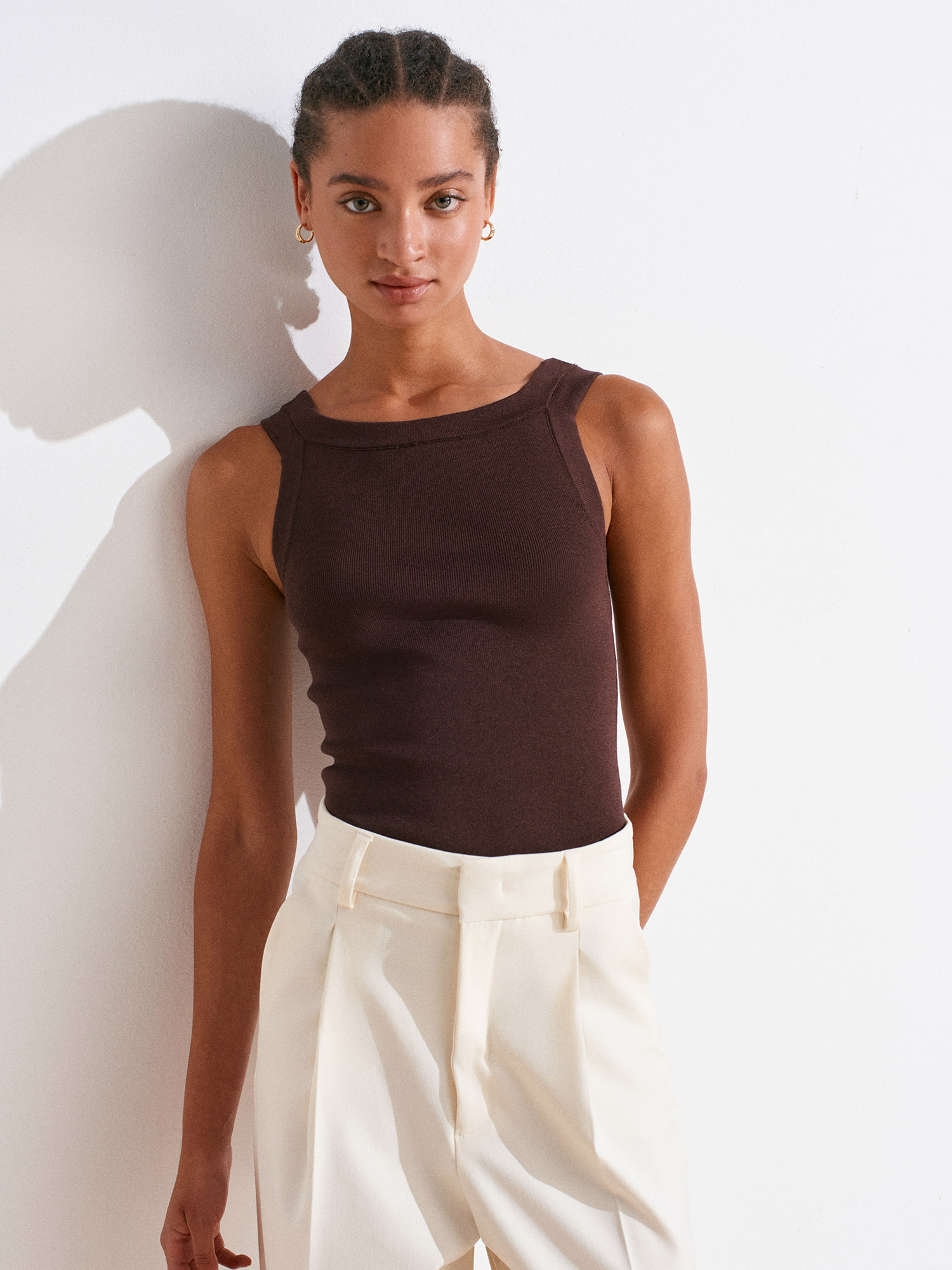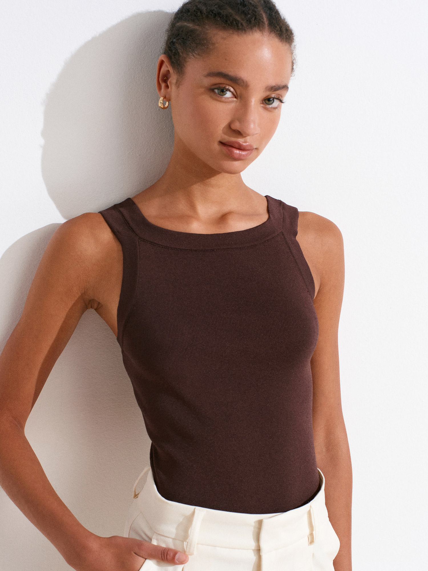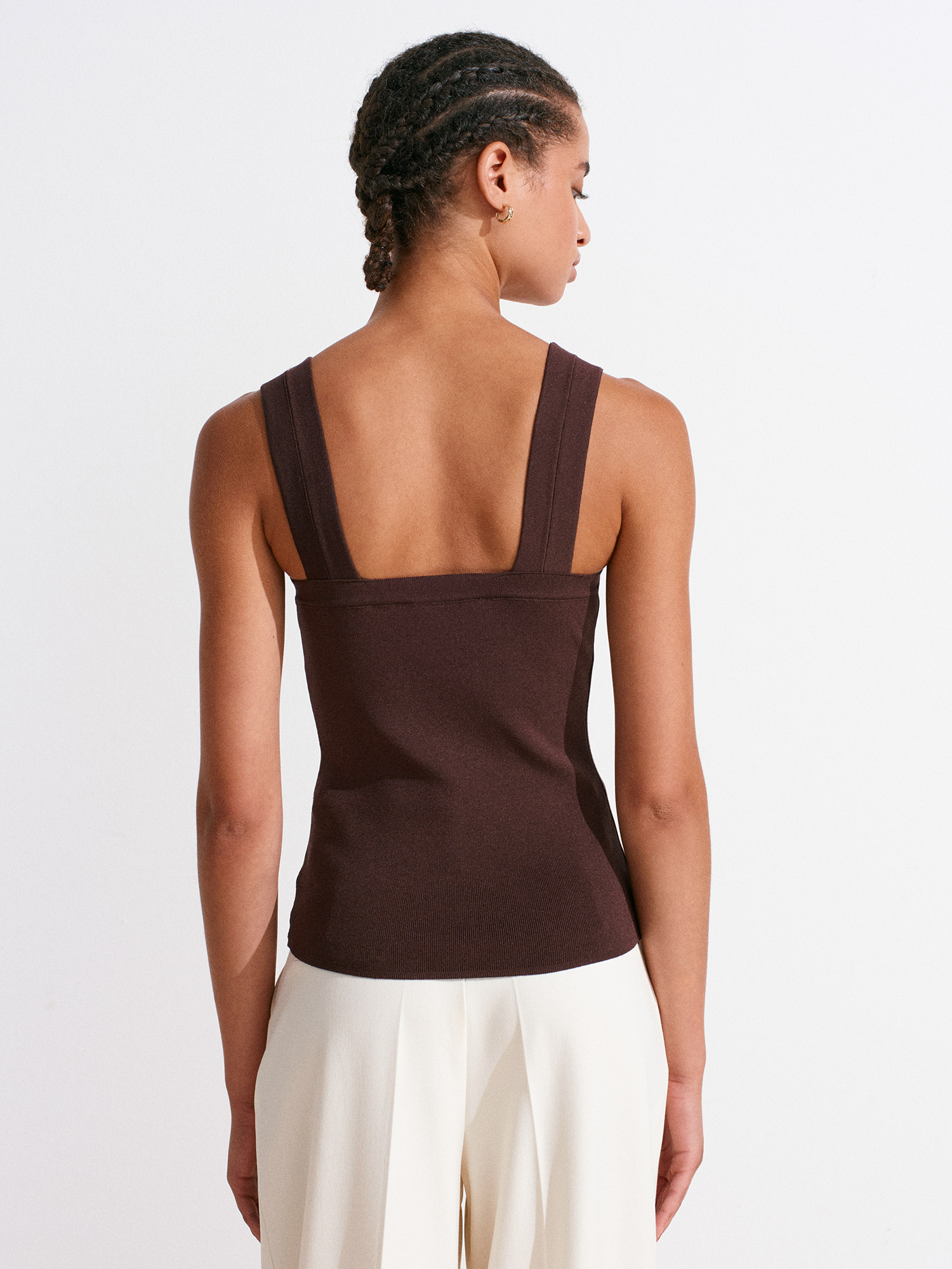 10770 Kare Yaka Askılı Triko Bluz-Kahve