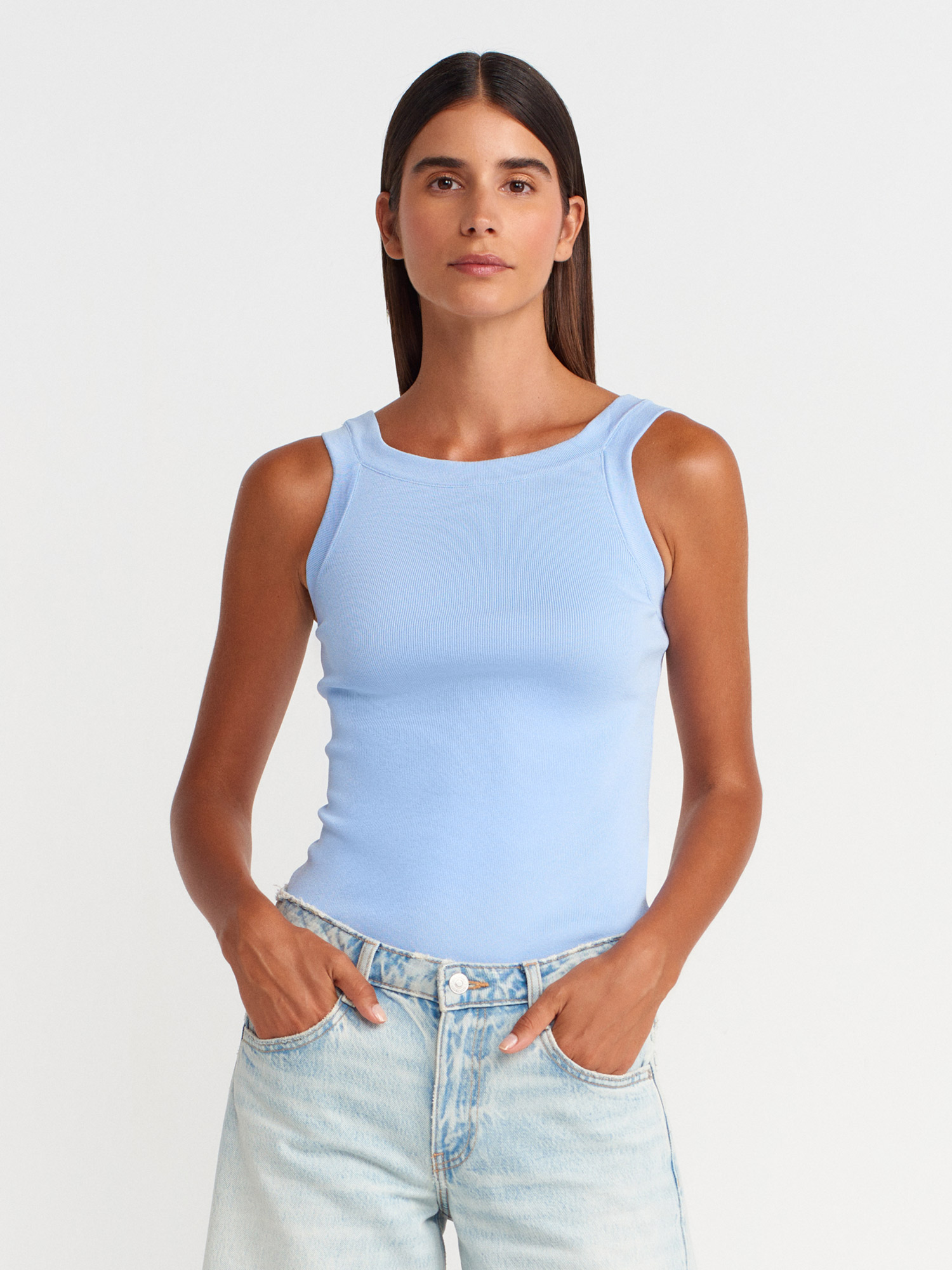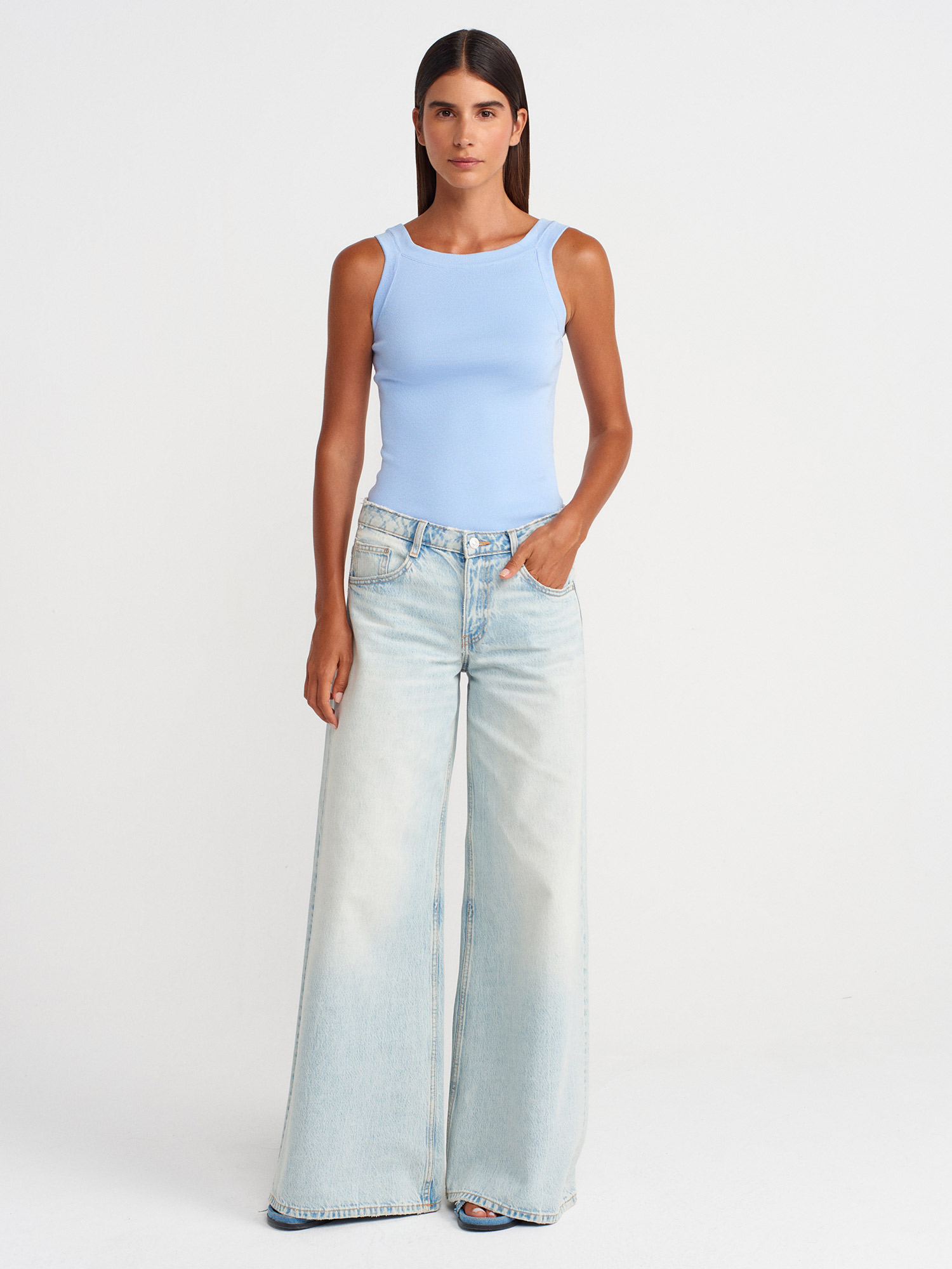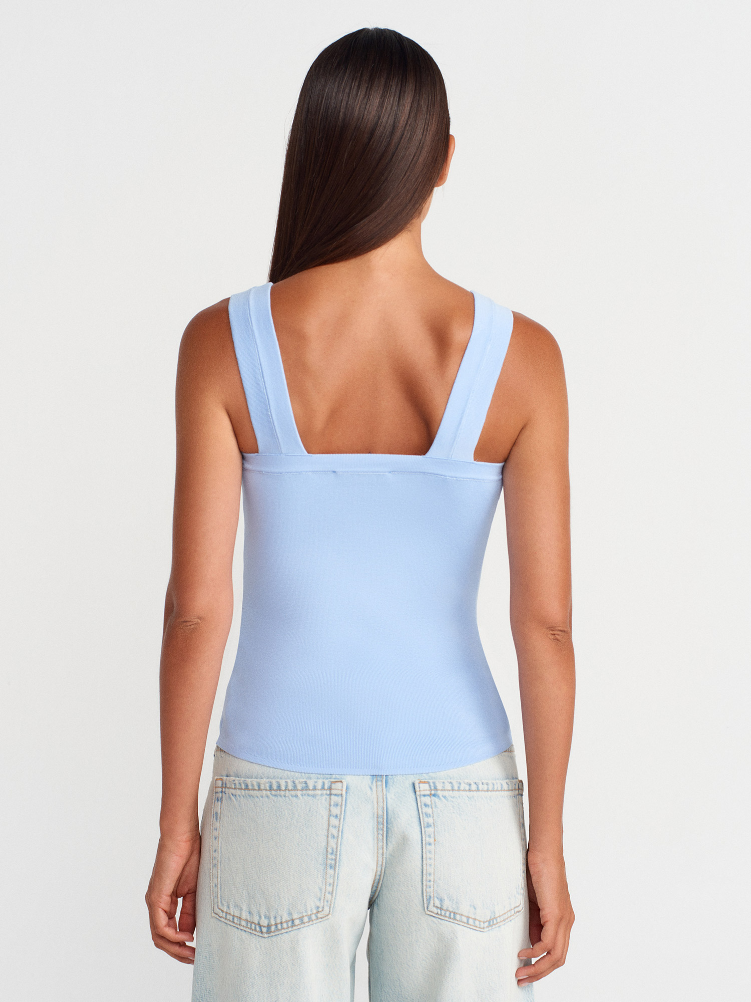 10770 Kare Yaka Askılı Triko Bluz-Mavi