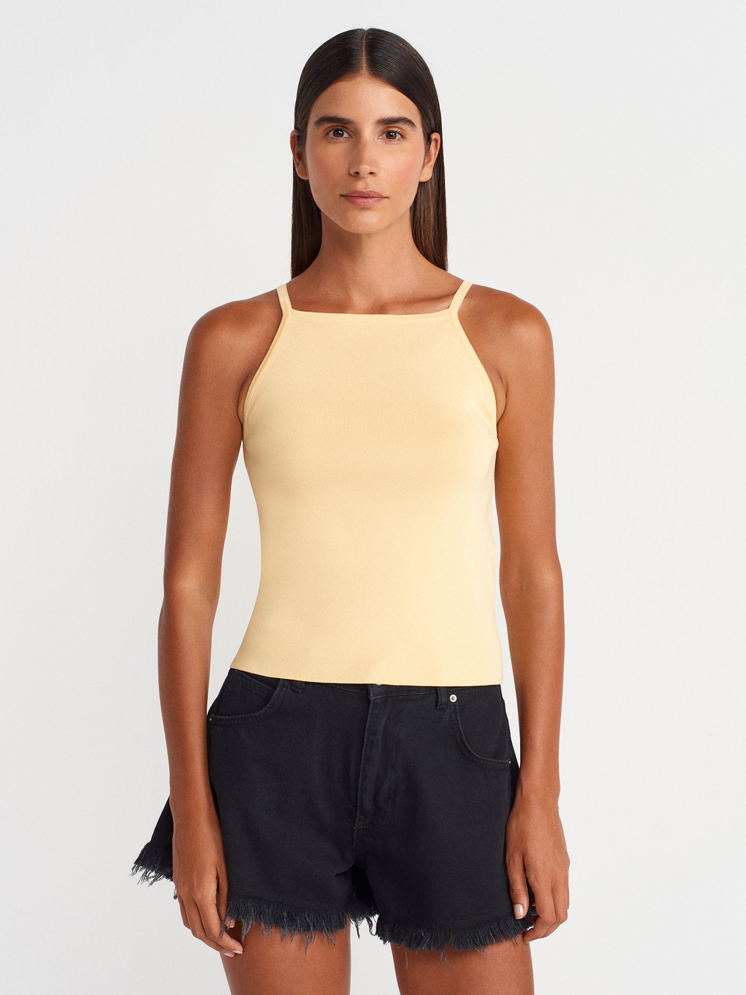 10772 Askılı Fiyonk Detaylı Triko Bluz-Sarı
