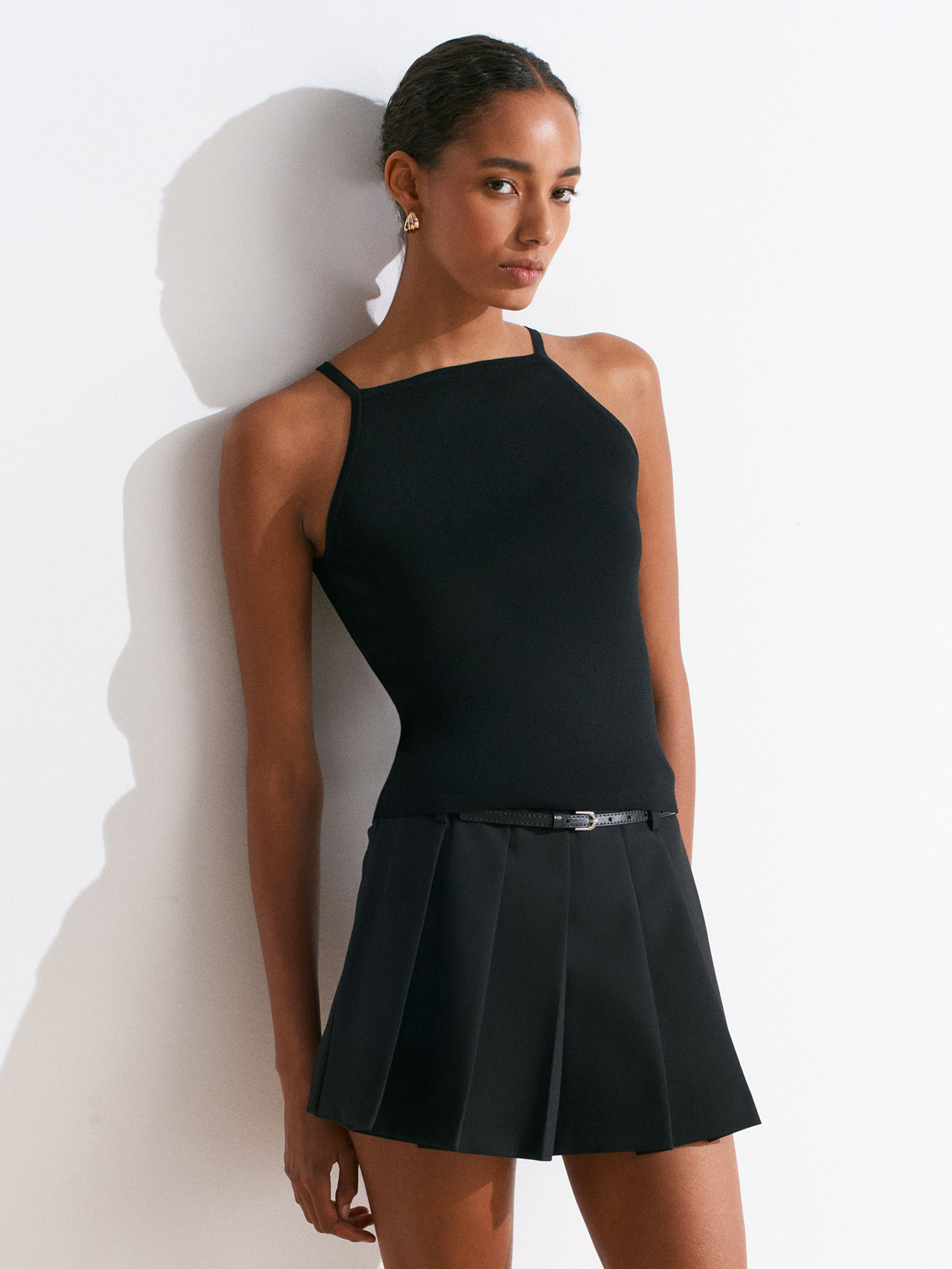 10772 Askılı Fiyonk Detaylı Triko Bluz-Siyah