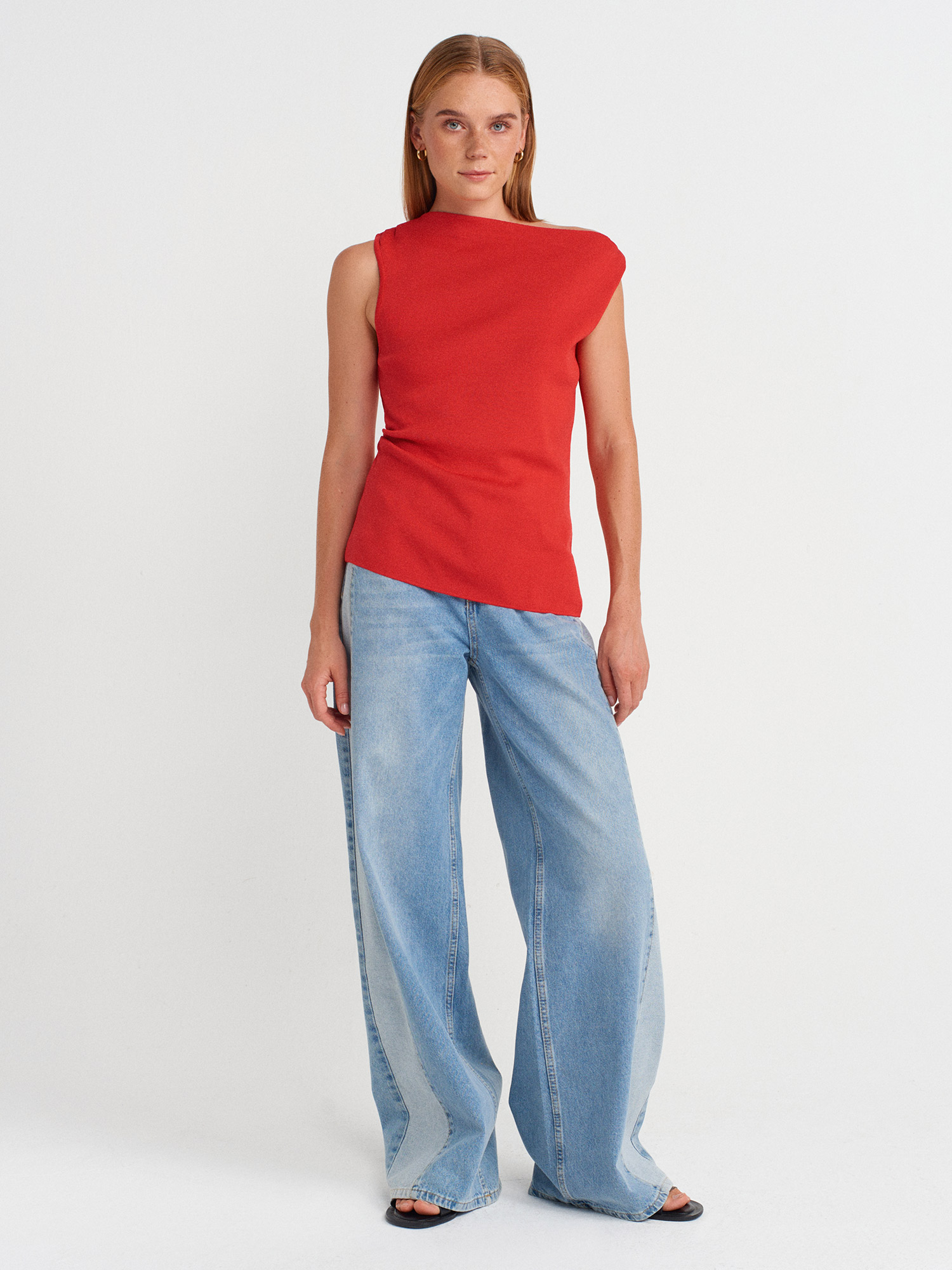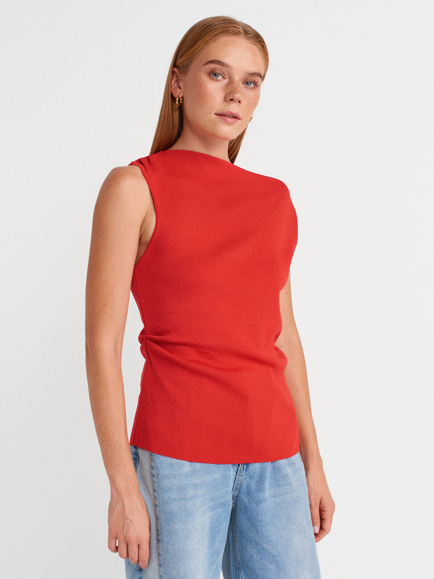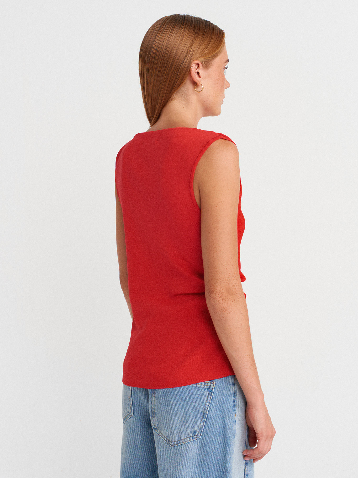 10778 Kayık Yaka Drapeli İnce Triko Bluz-Kırmızı
