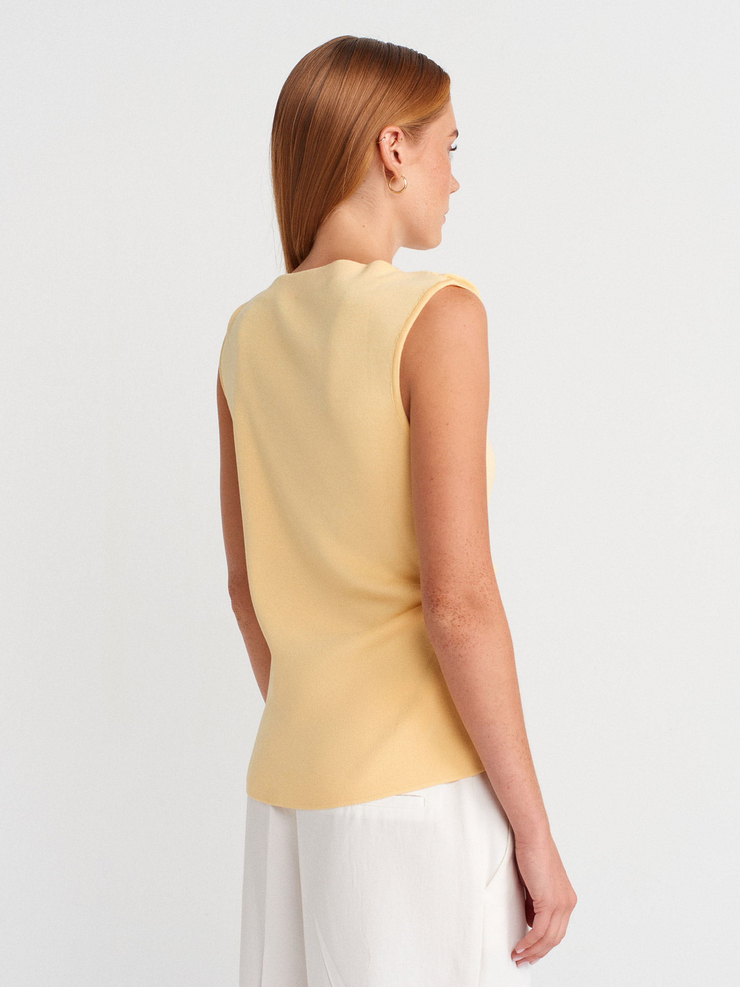 10778 Kayık Yaka Drapeli İnce Triko Bluz-Sarı