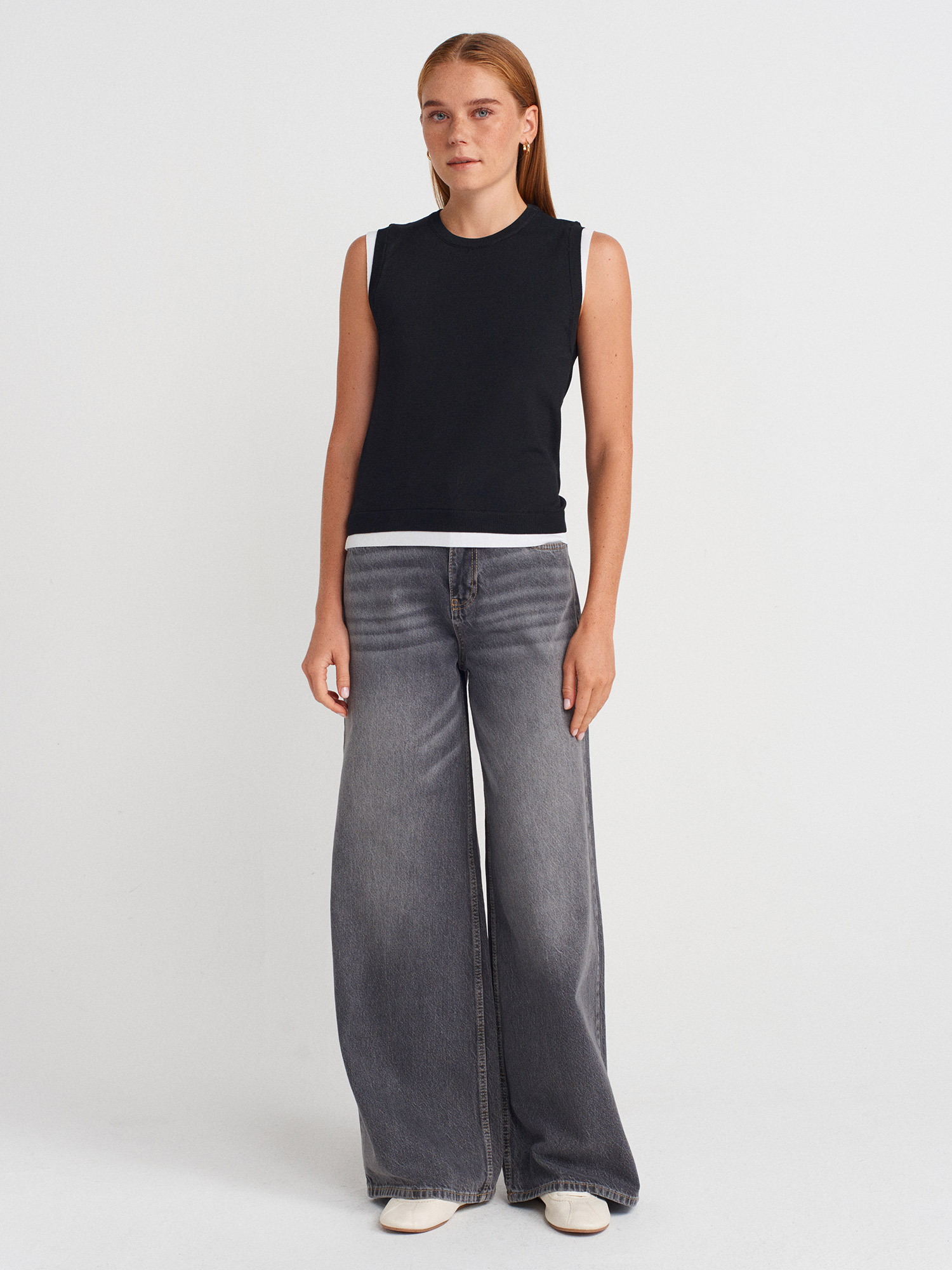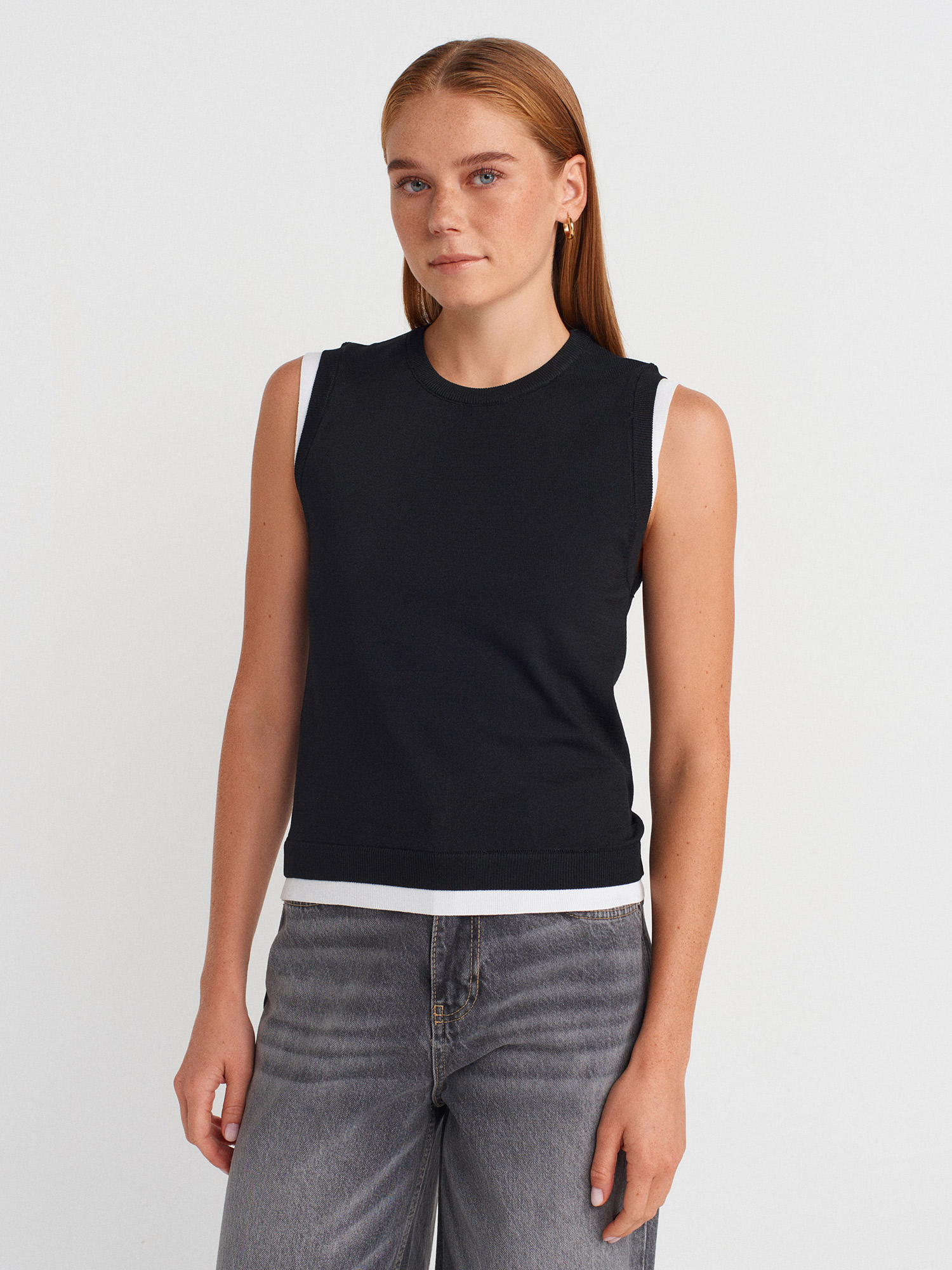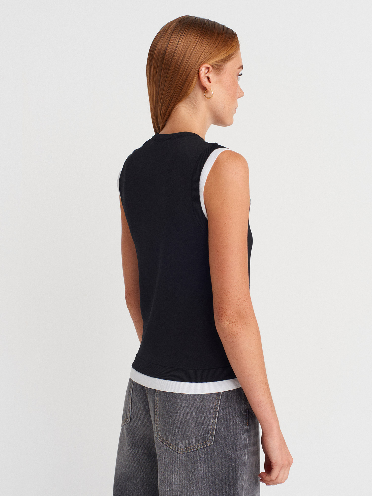 10784 Bisiklet Yaka Çift Görünümlü Triko Bluz-Siyah B.