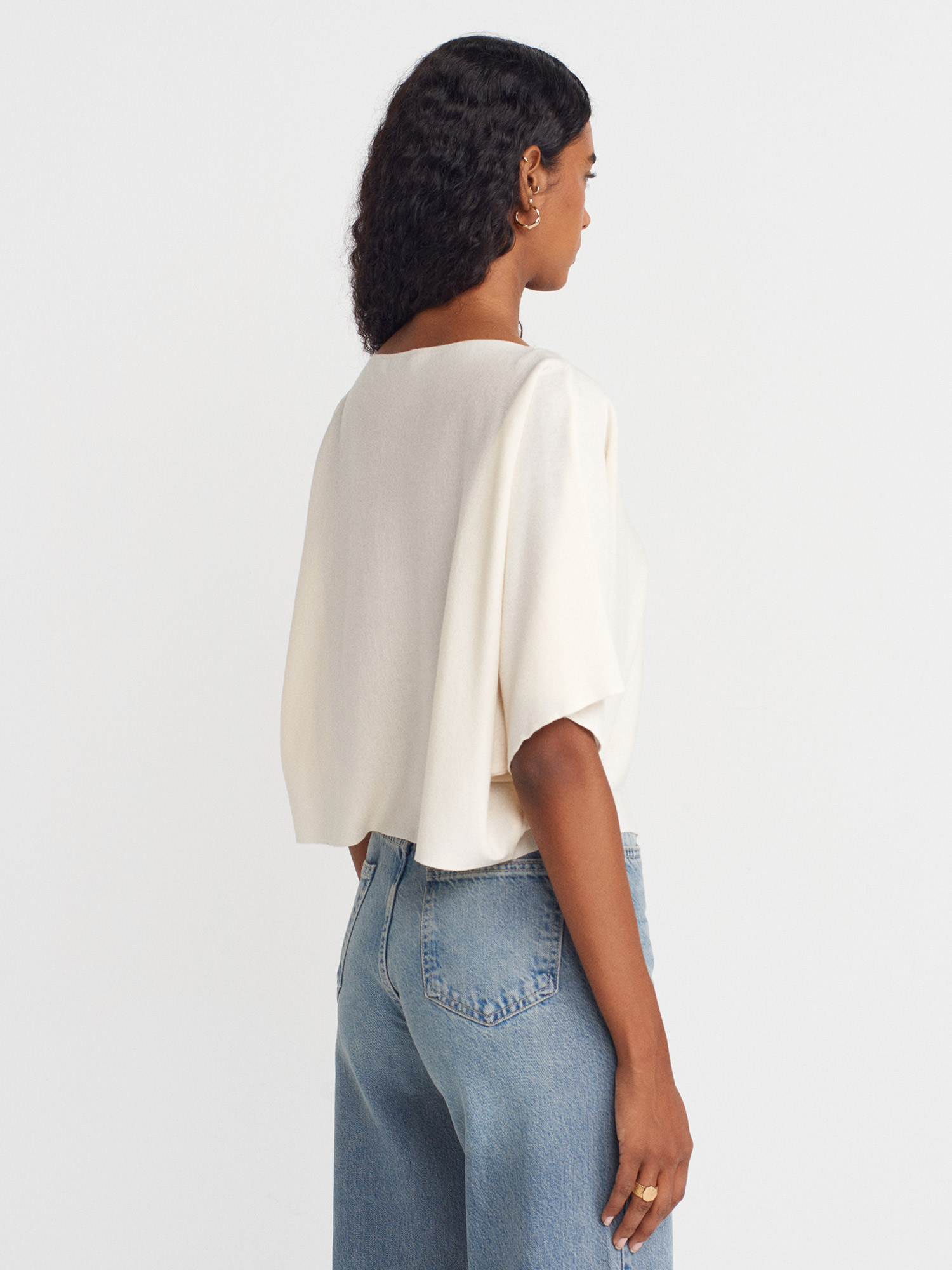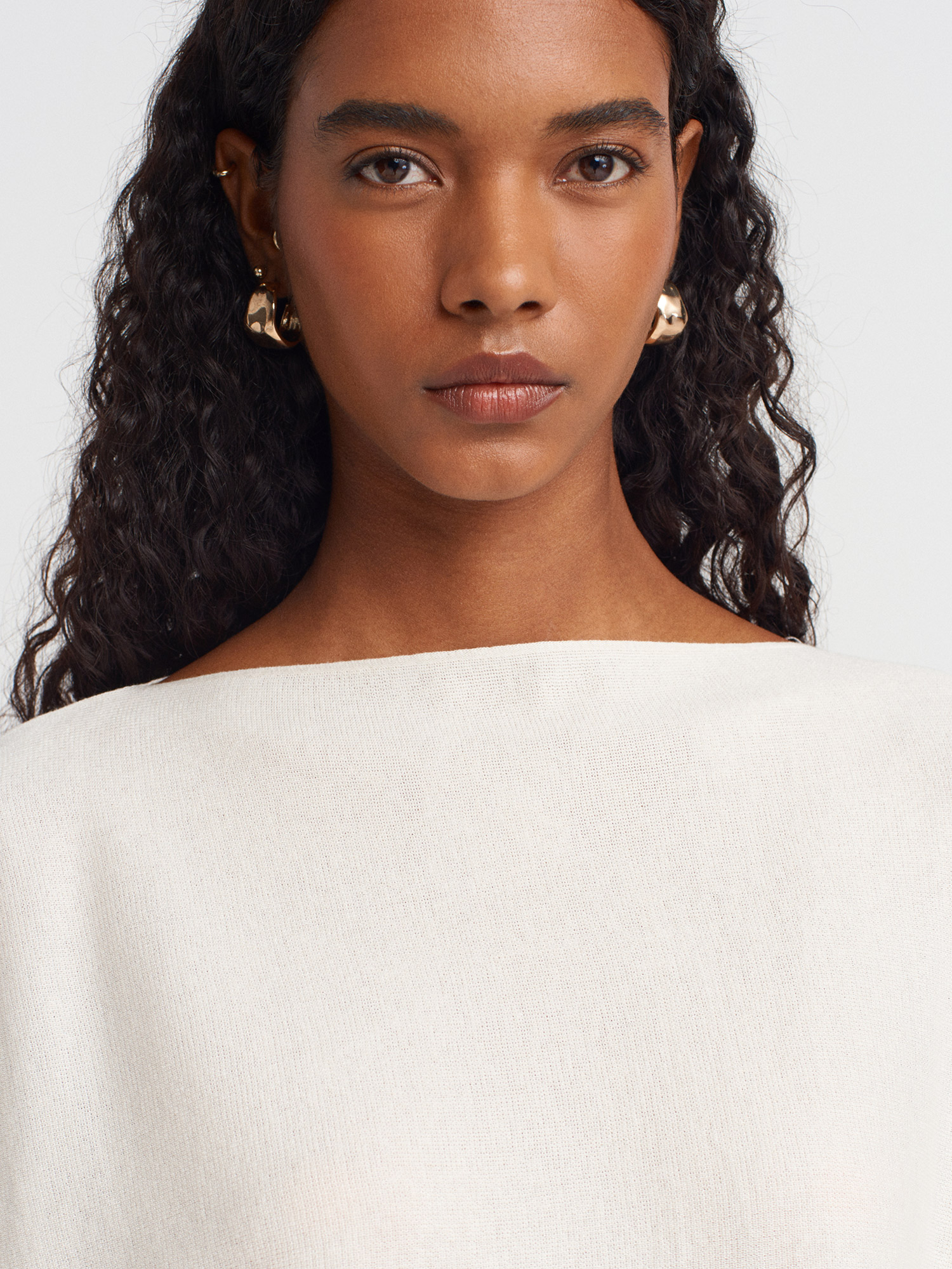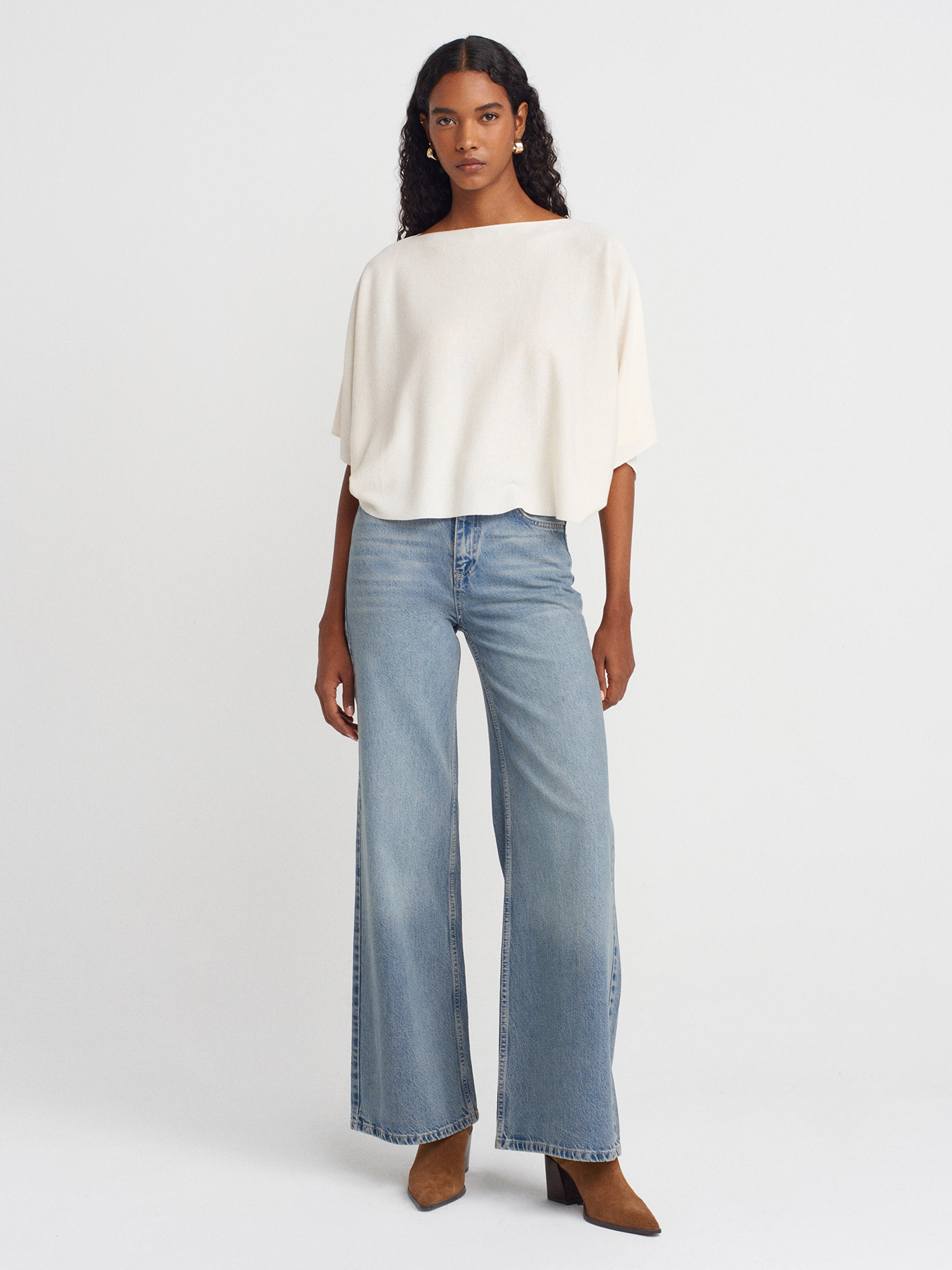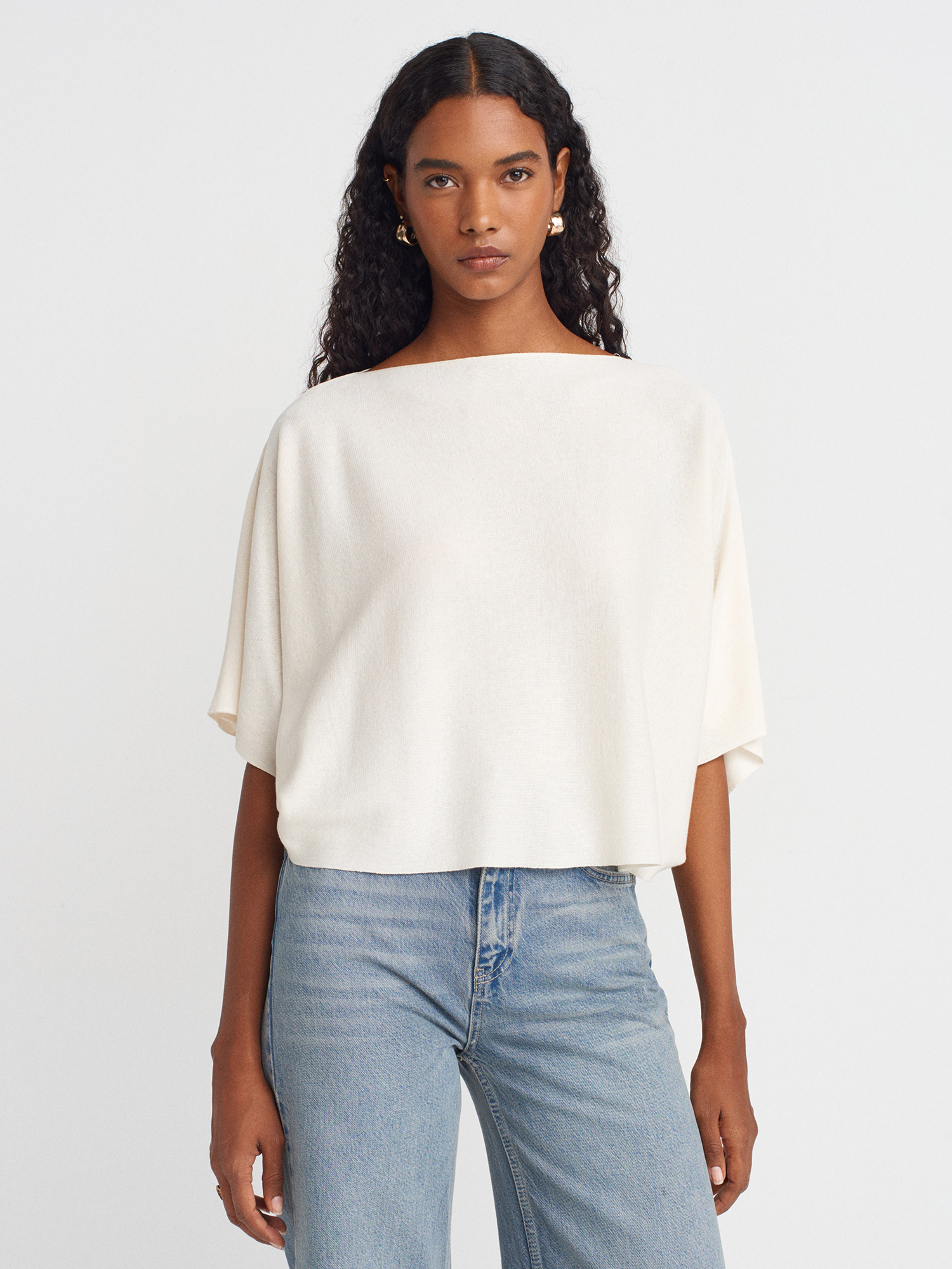 10789 Kayık Yaka Yarasa Kol İnce Triko Bluz-Ekru