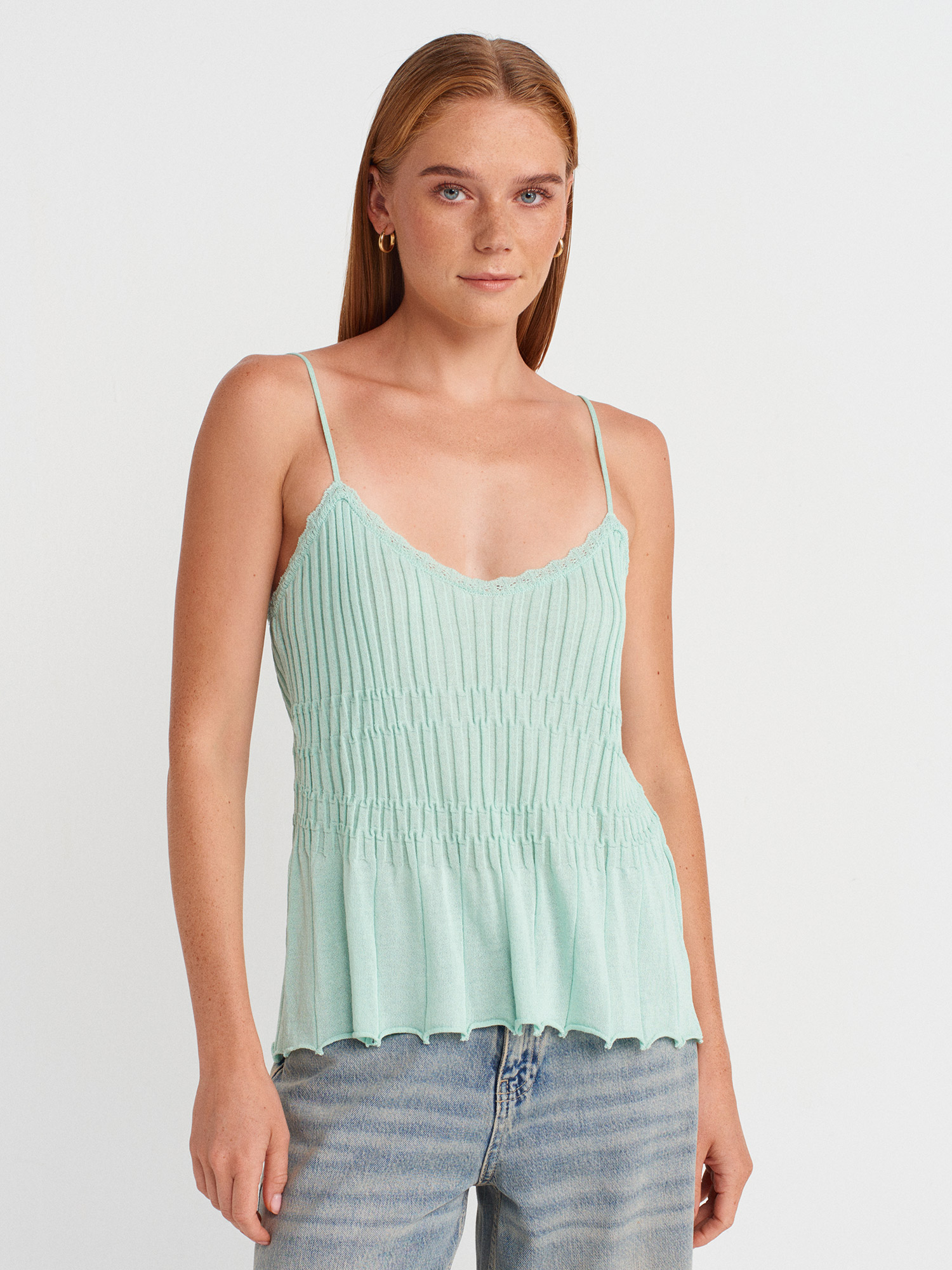 10792 Askılı İnce Dokulu Triko Bluz-Mint