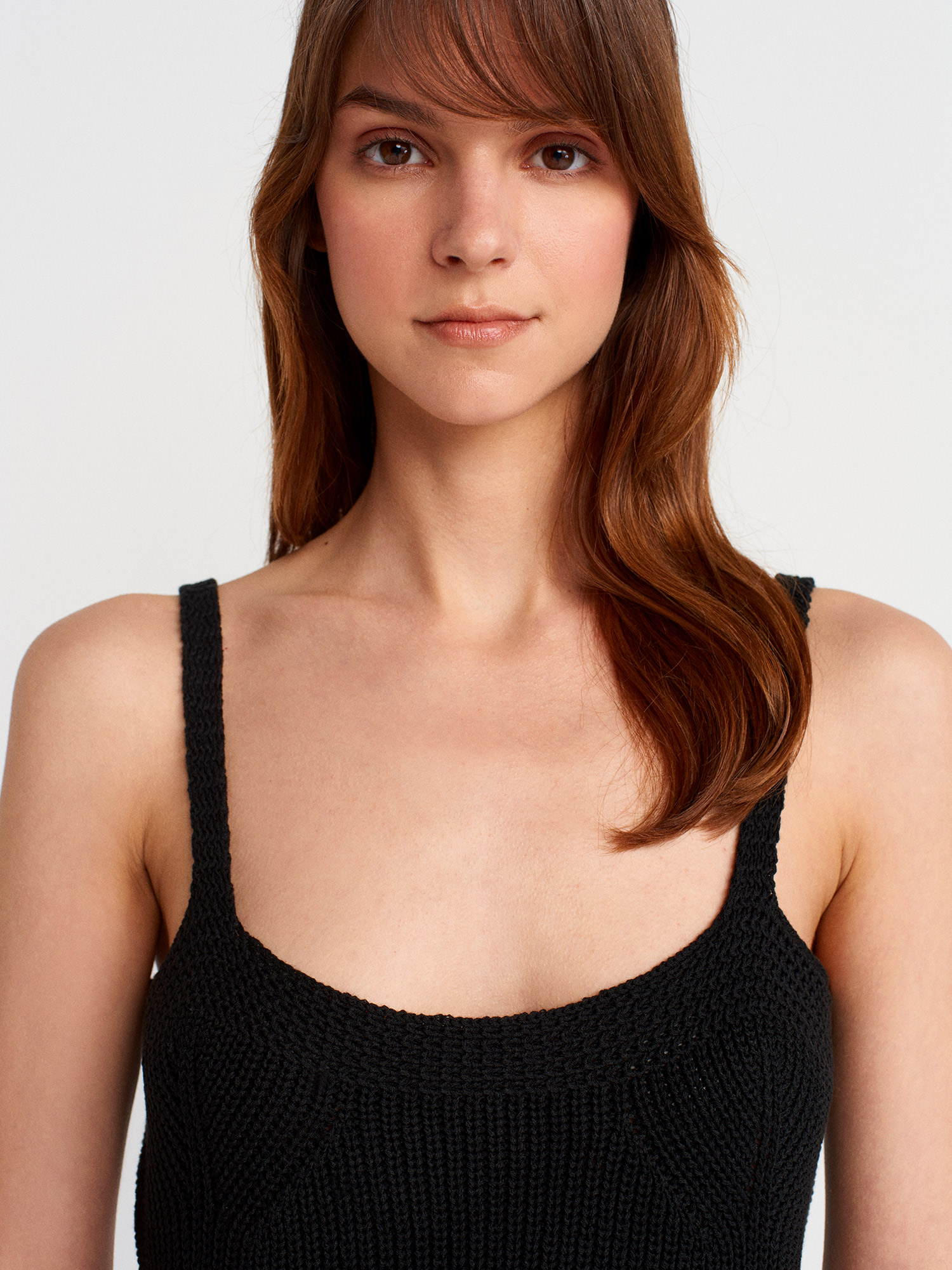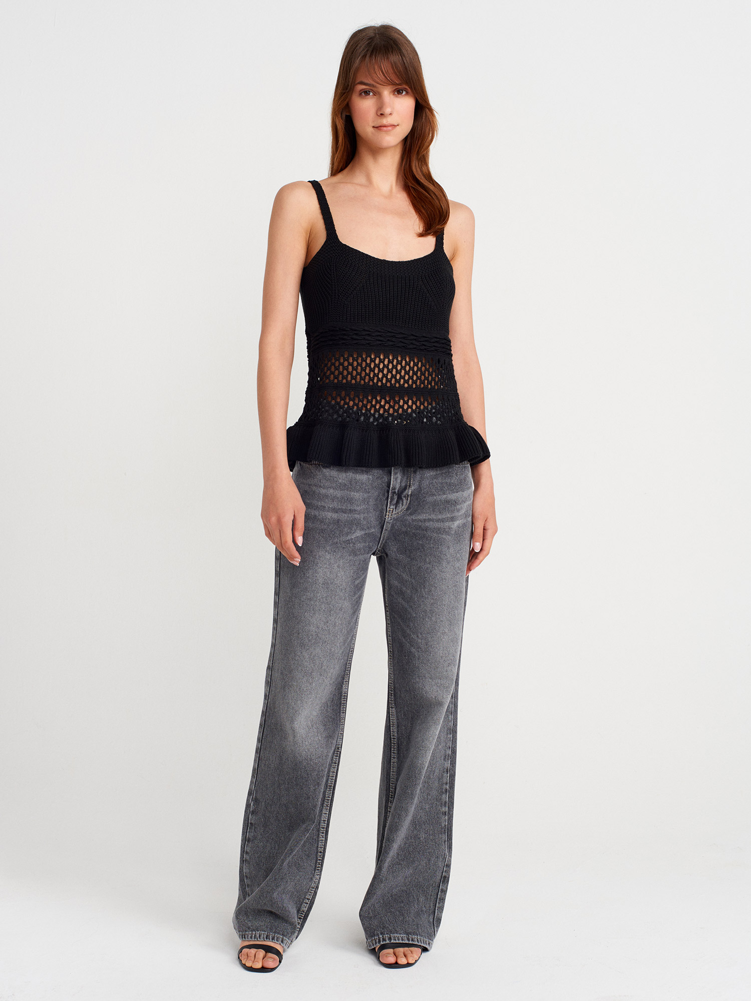 10793 Askılı Ajurlu Triko Bluz-Siyah