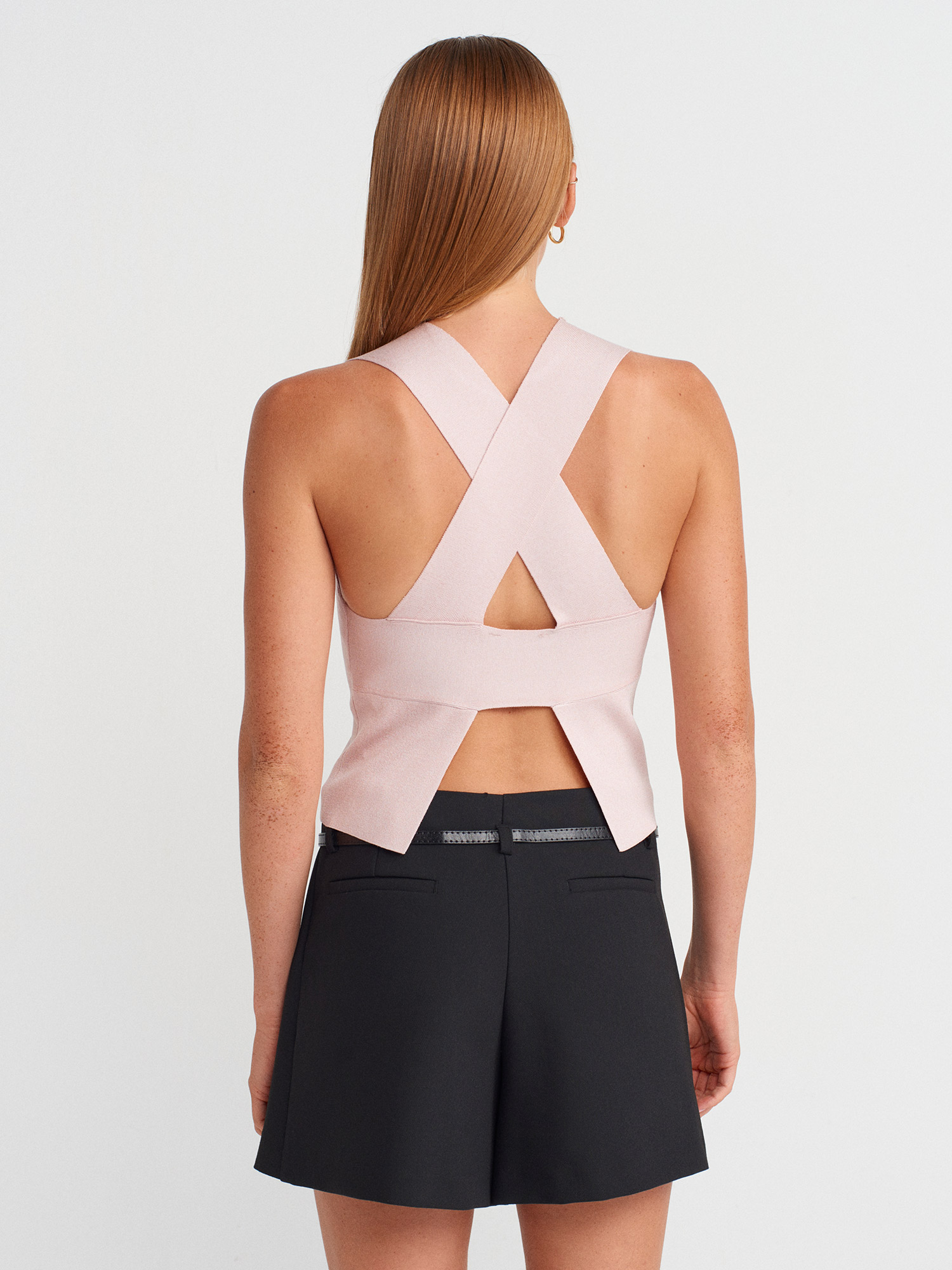 10795 Bisiklet Yaka Sırt Detaylı Triko Top-Pudra