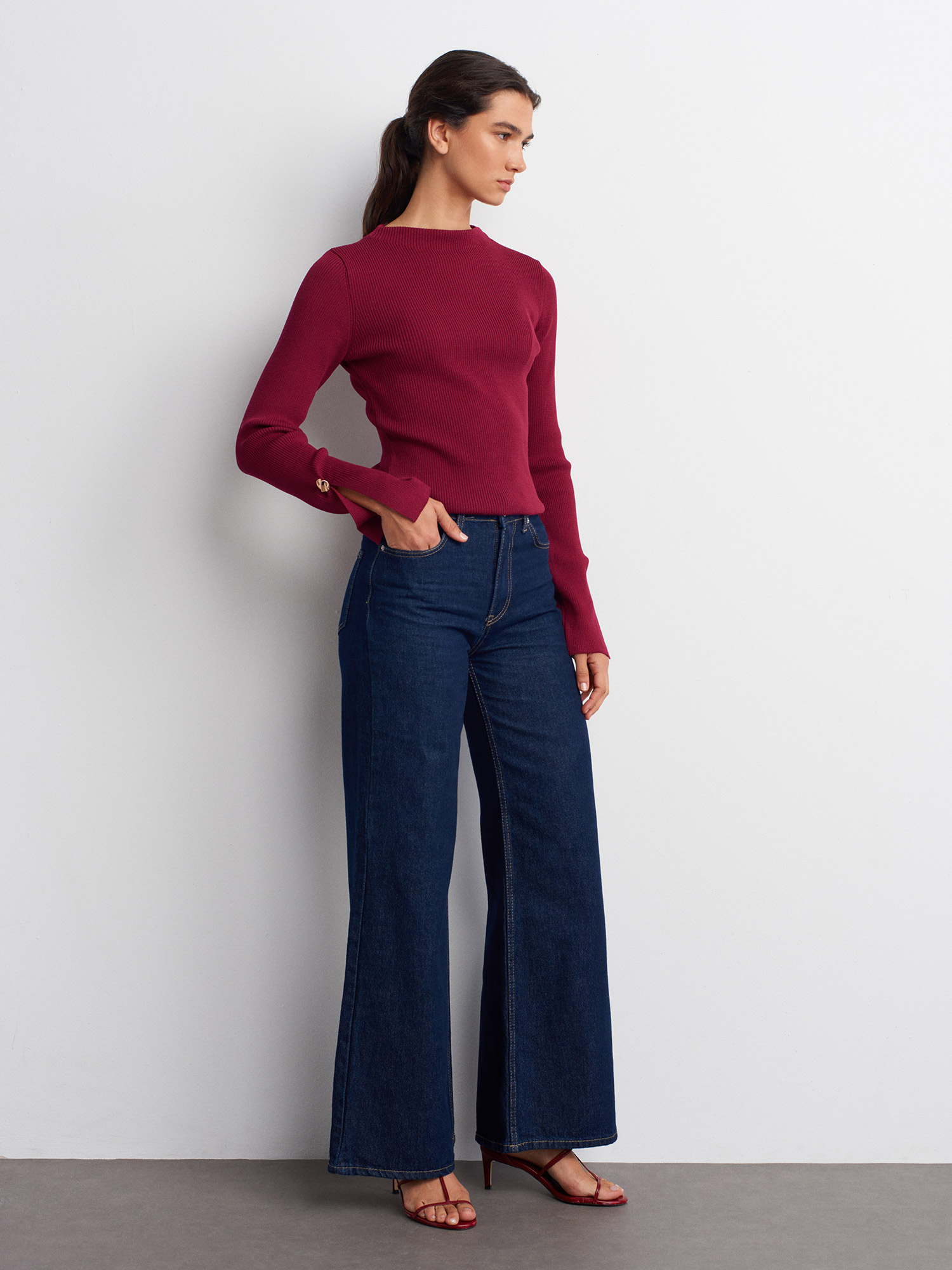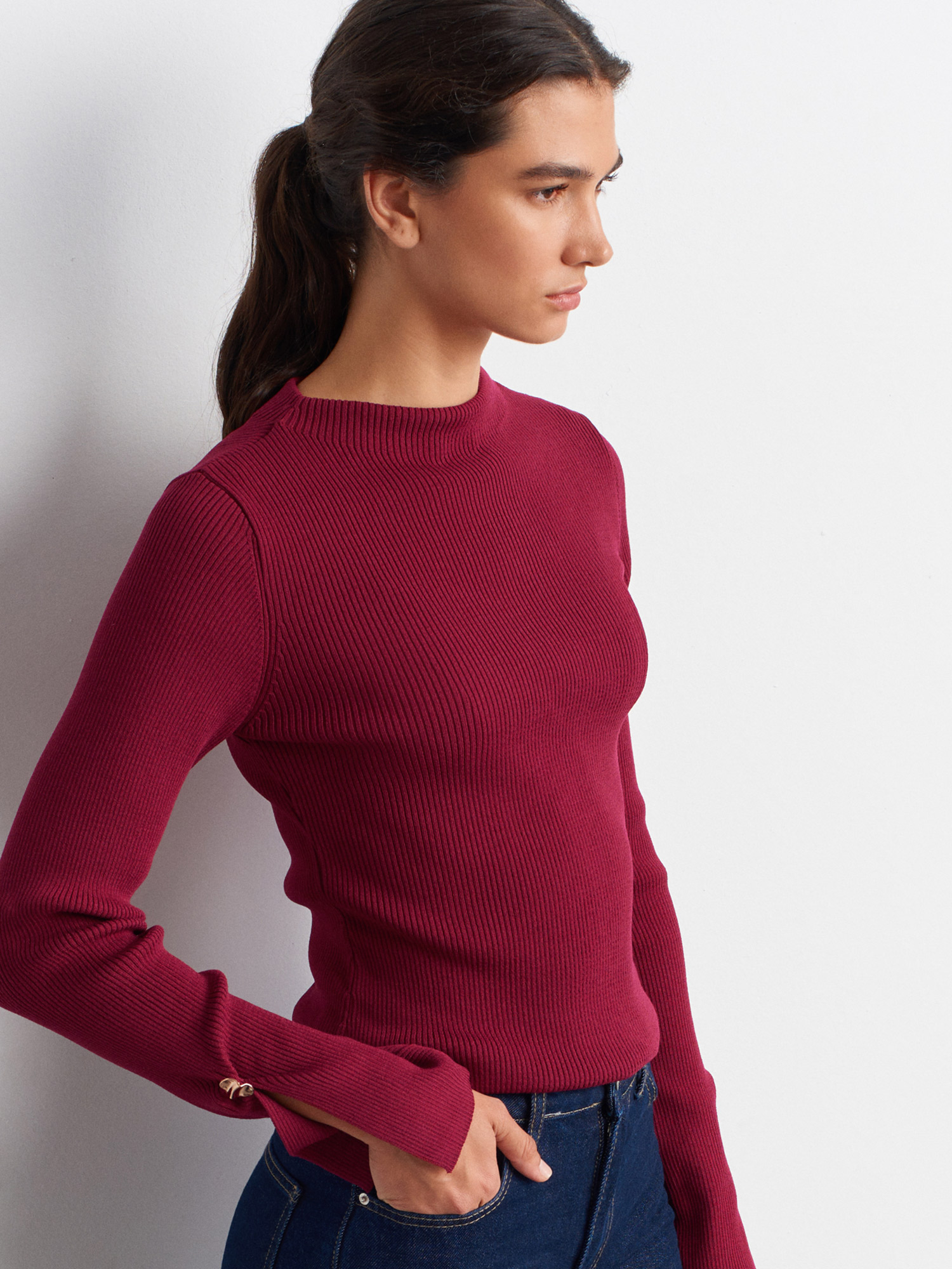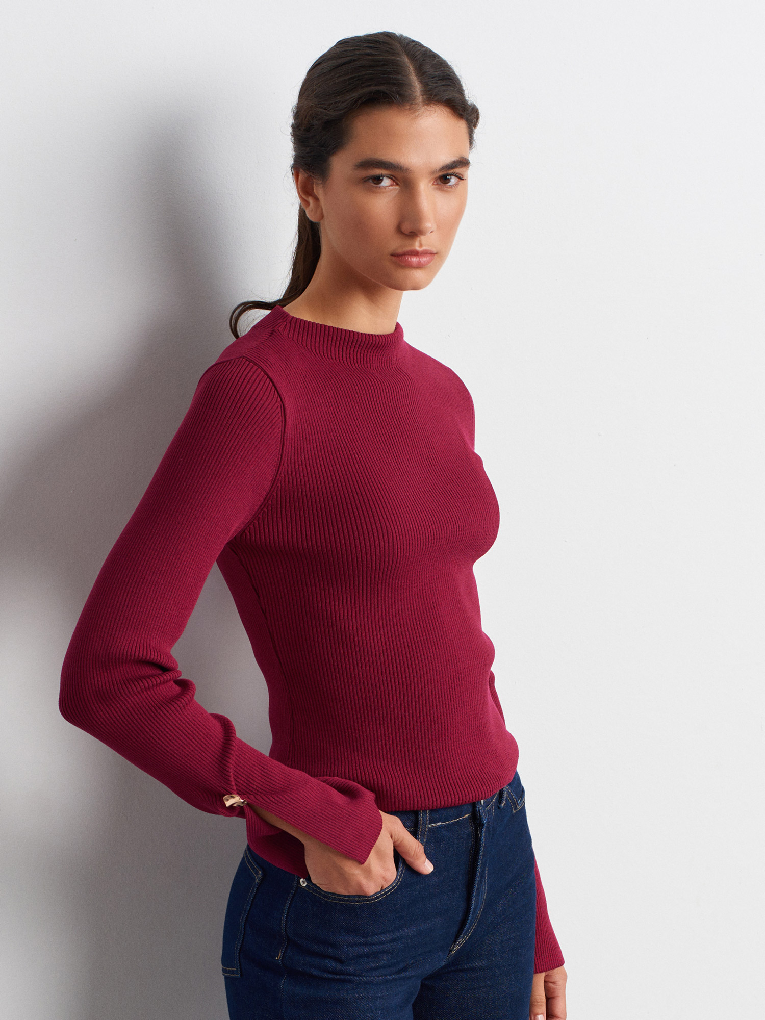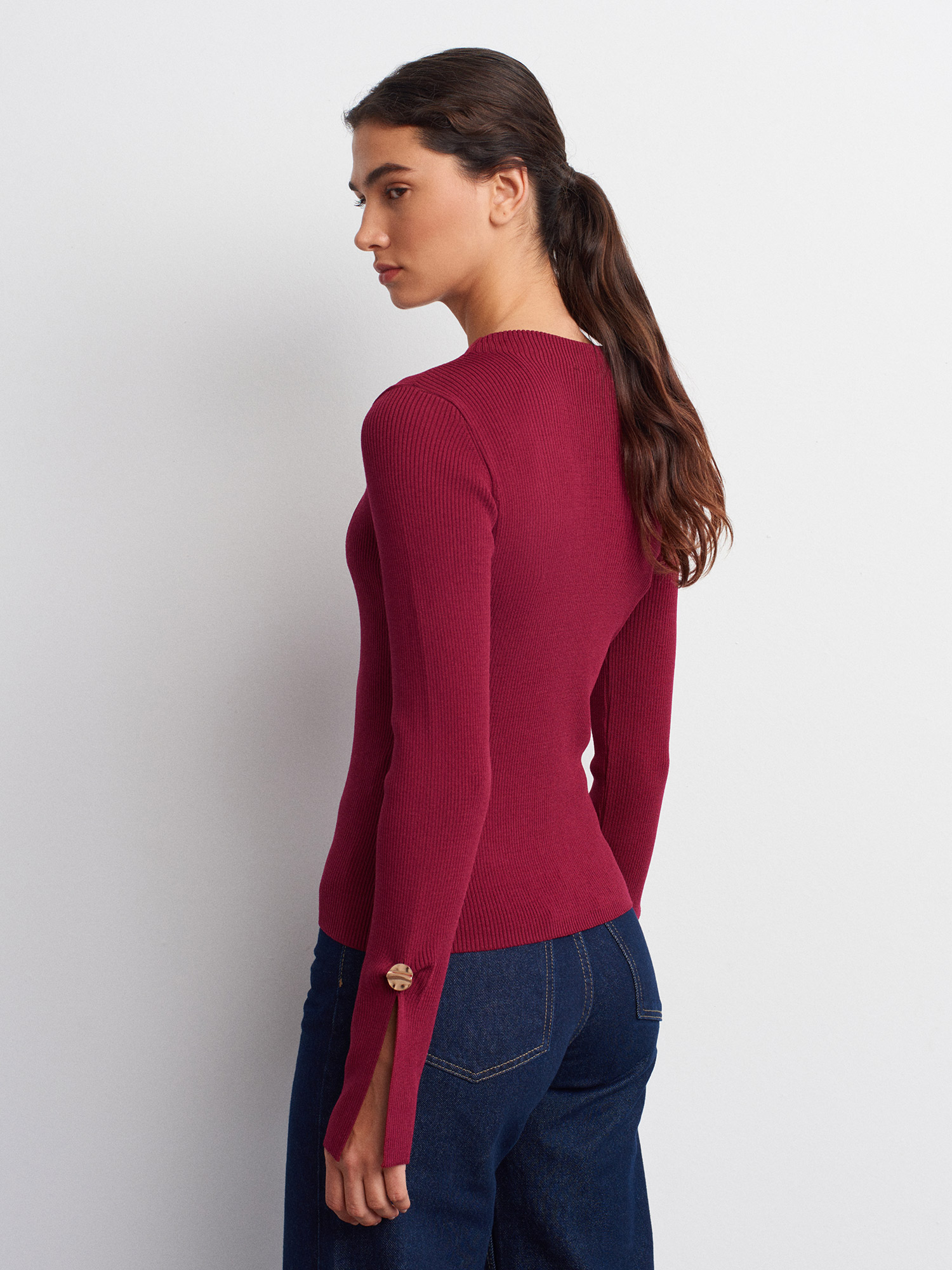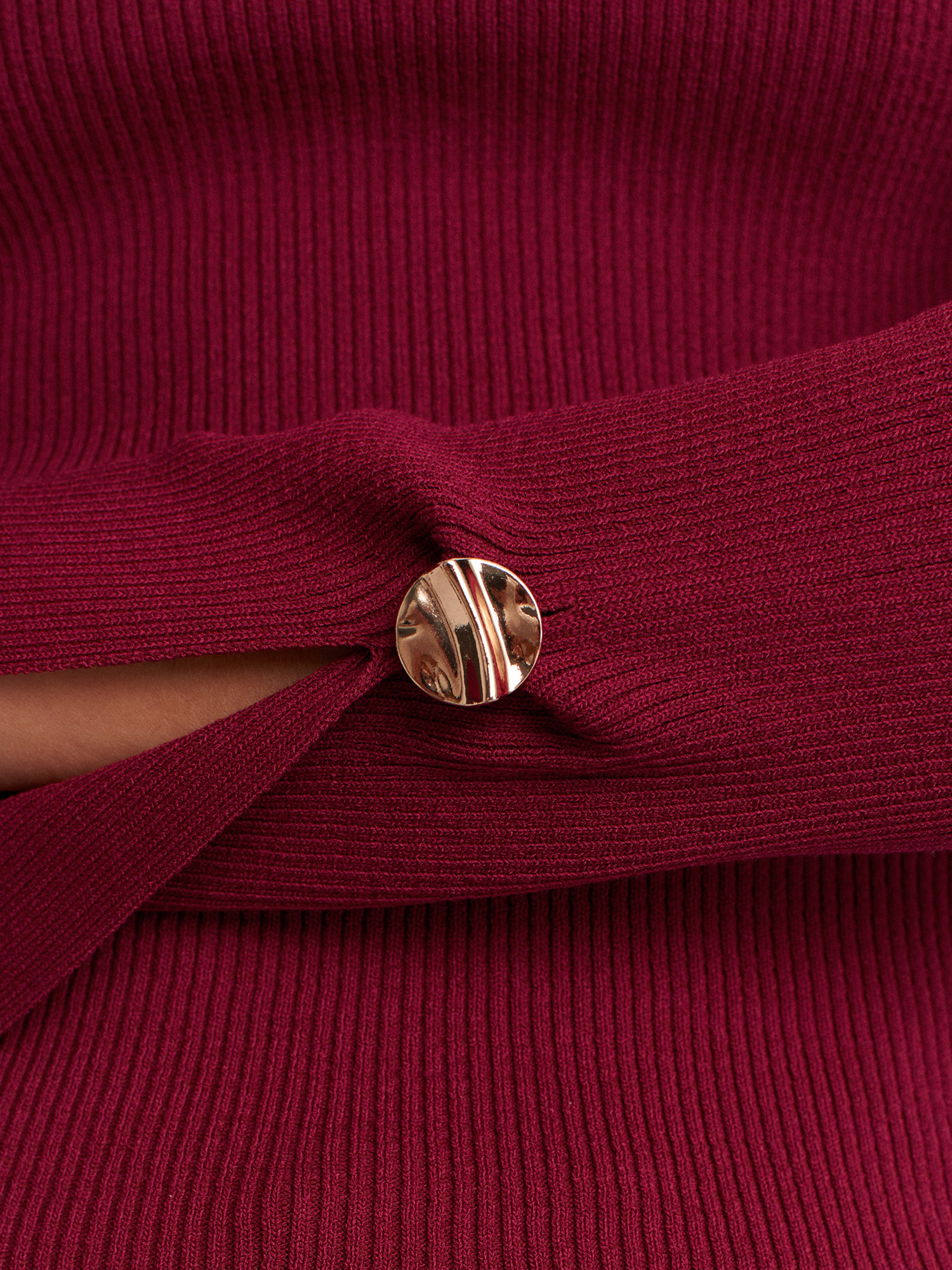 10811 Fitilli Yırtmaç Detaylı Triko Kazak-Açık Bordo