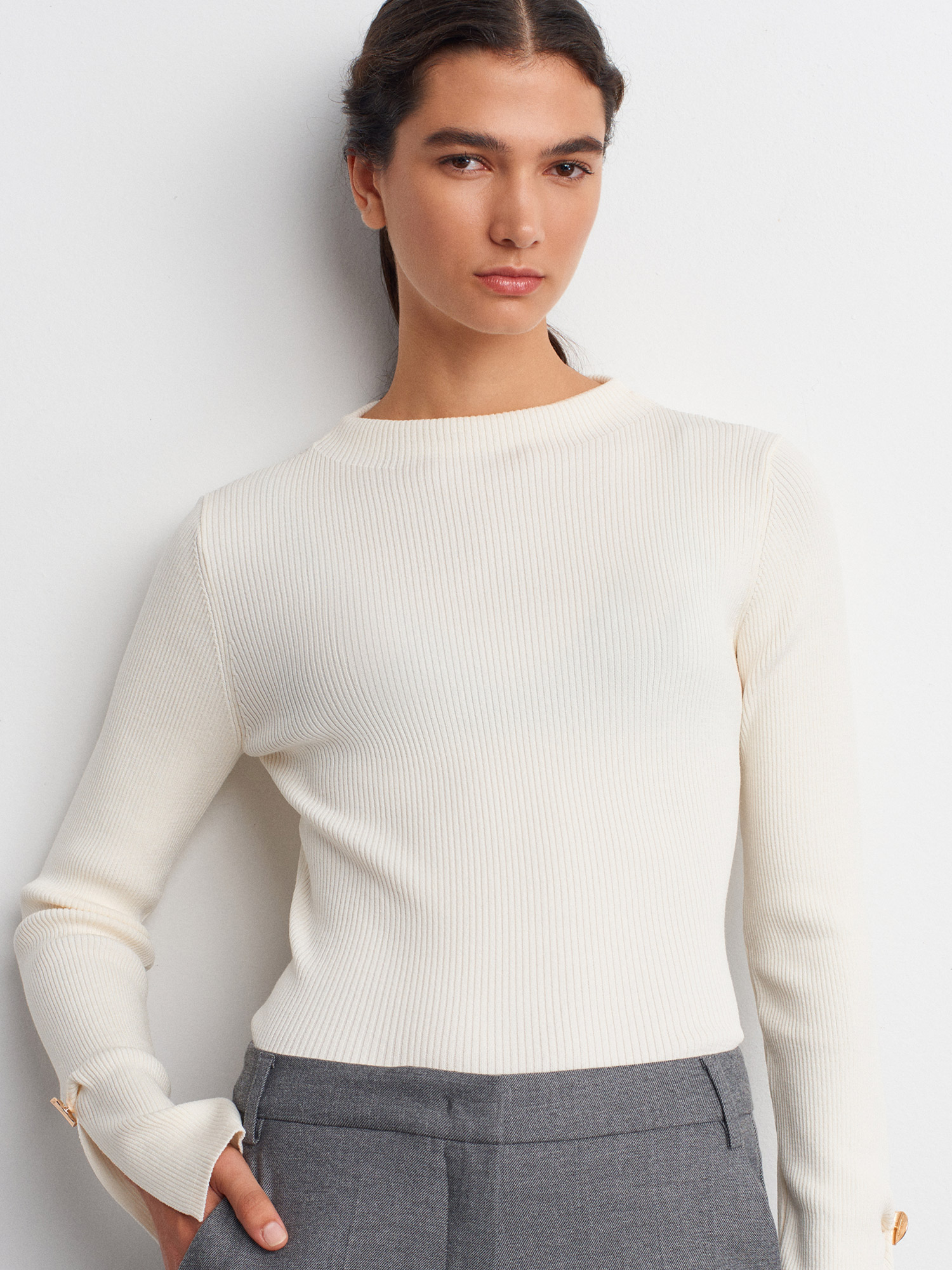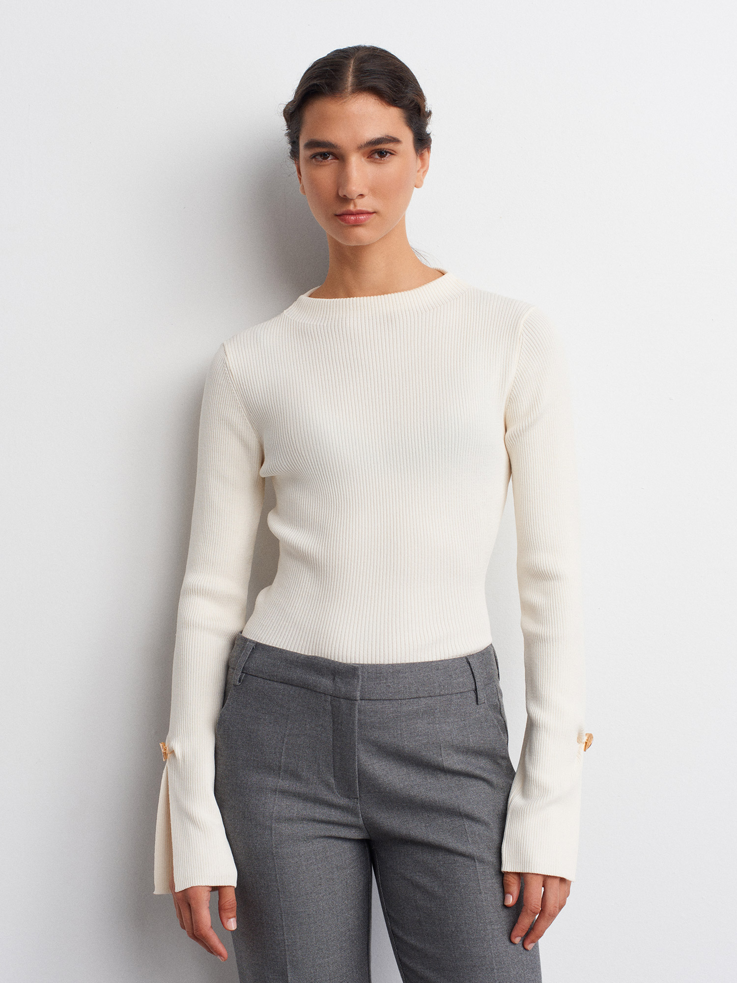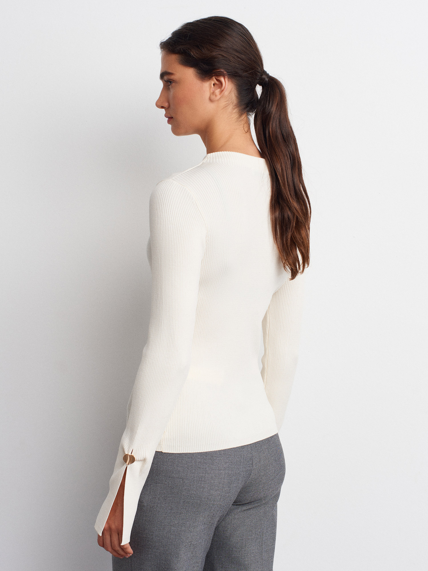 10811 Fitilli Yırtmaç Detaylı Triko Kazak-Ekru