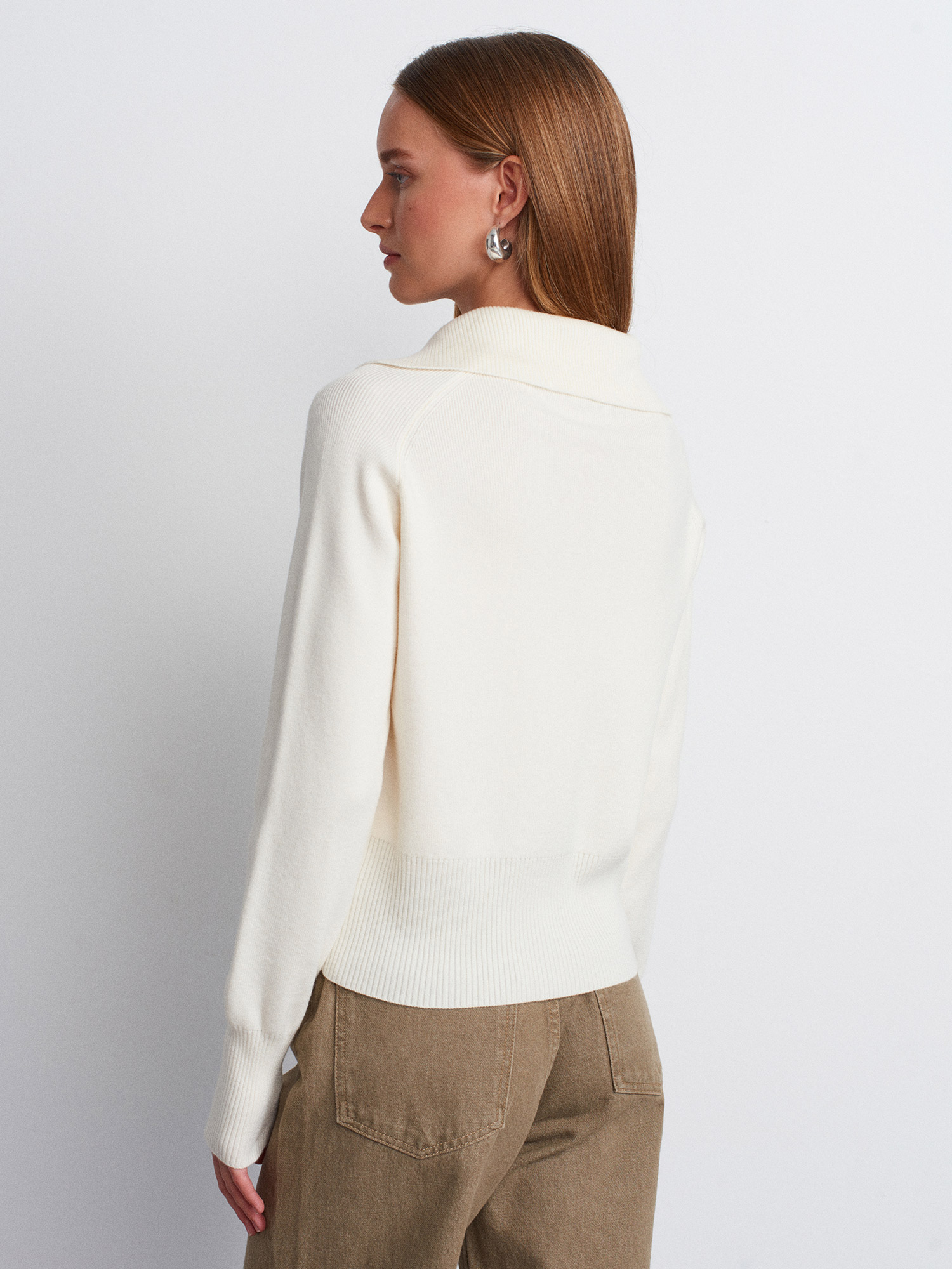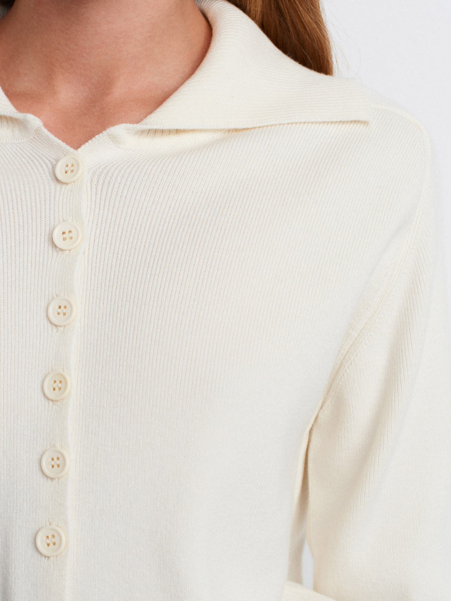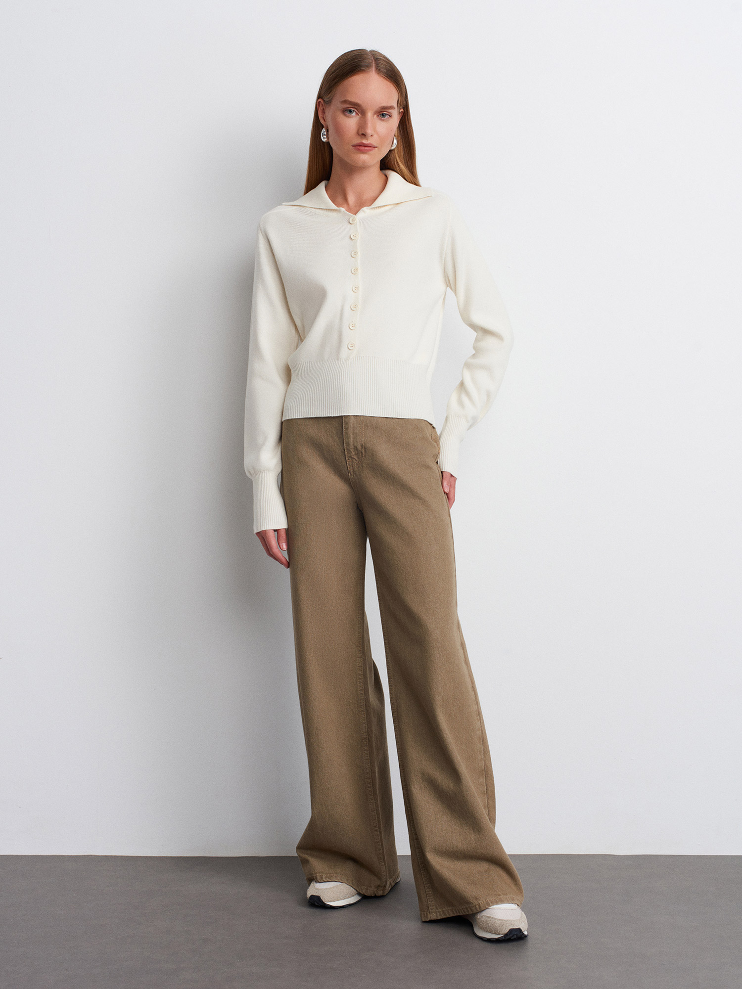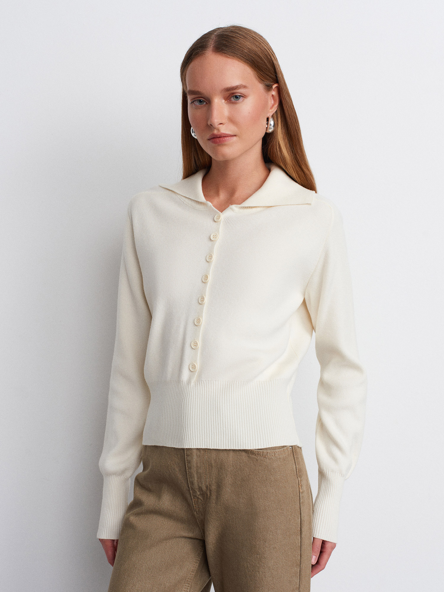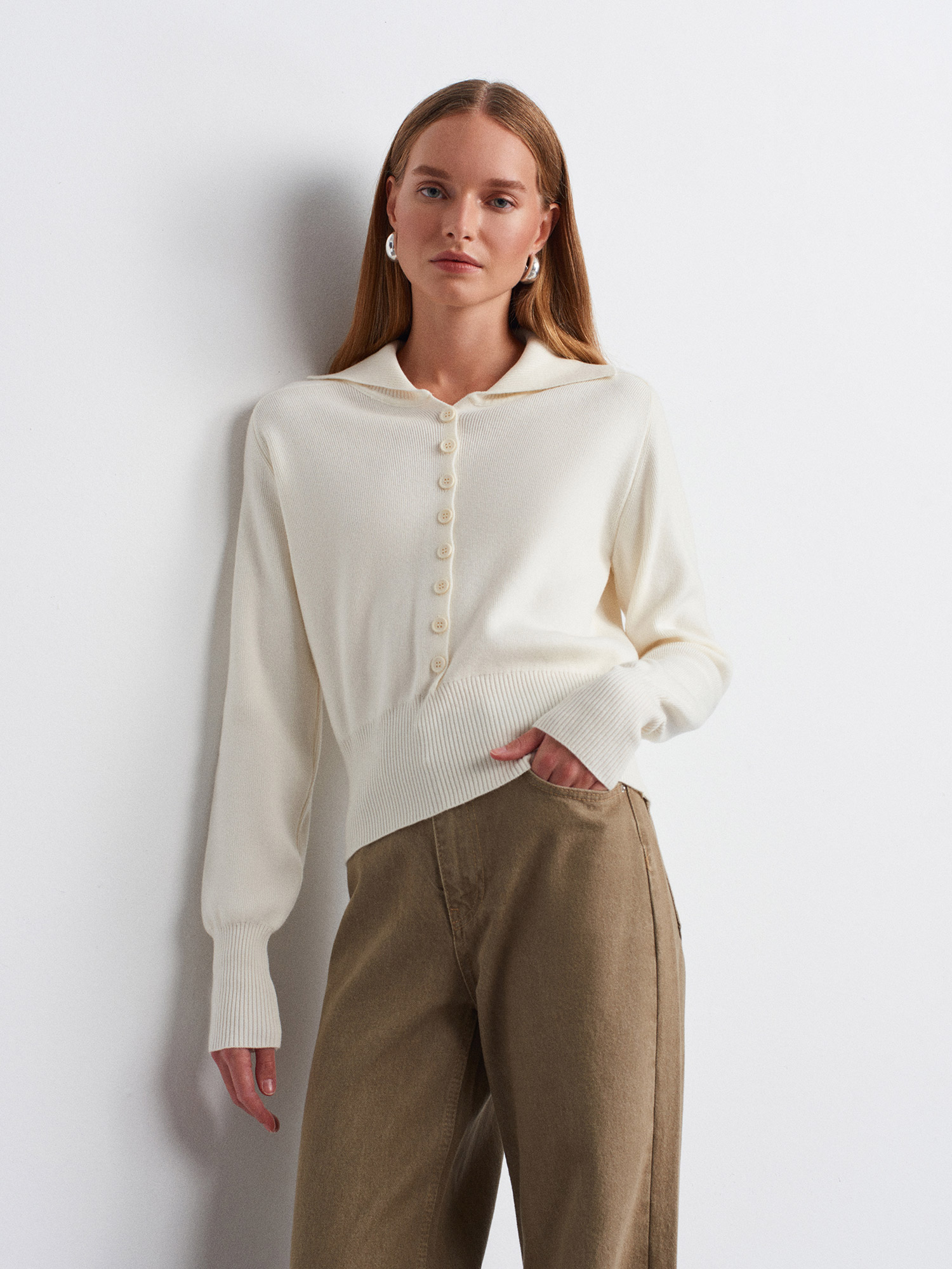 10816 Yün Karışımlı Düğmeli Triko Kazak-Ekru