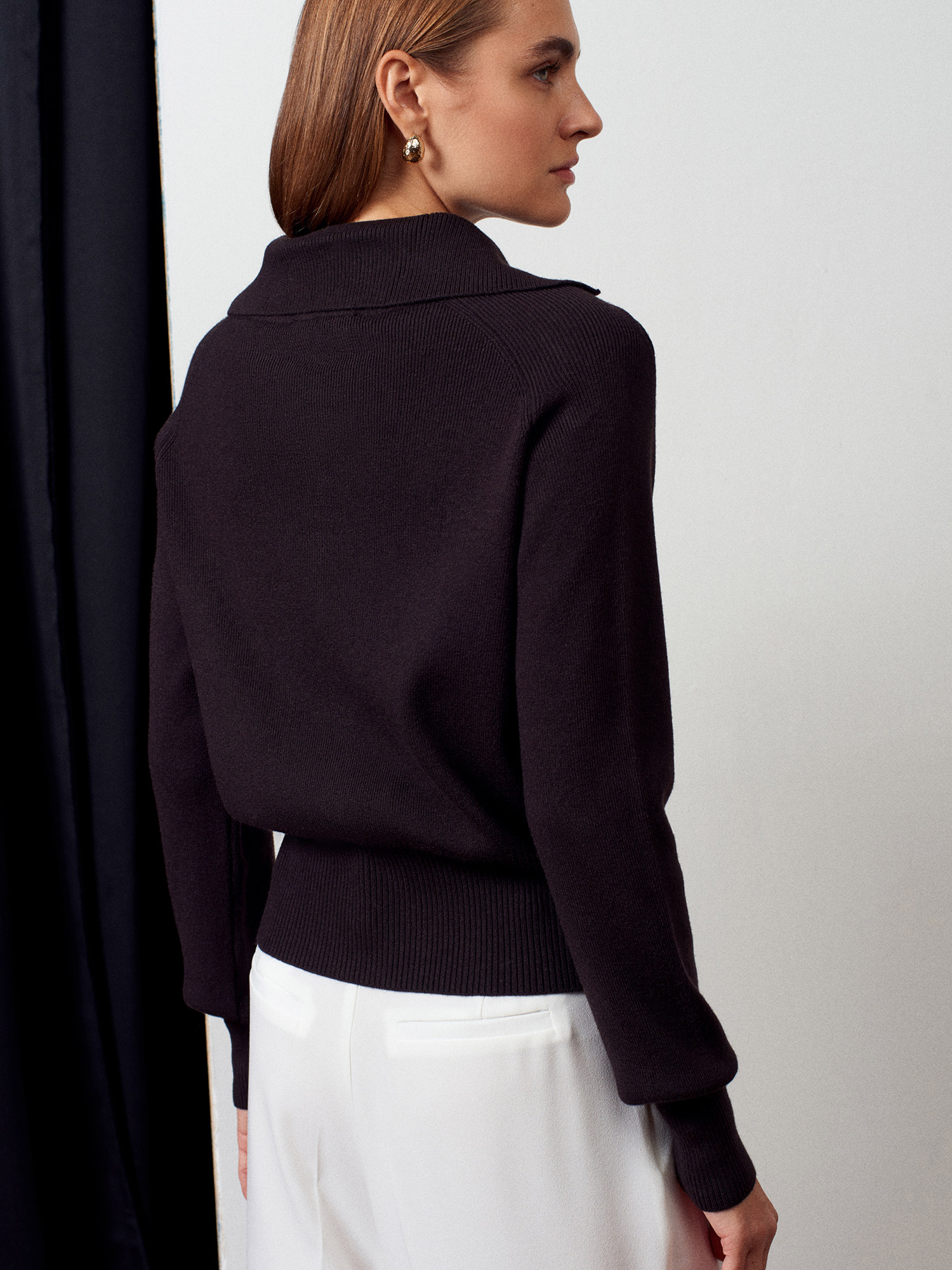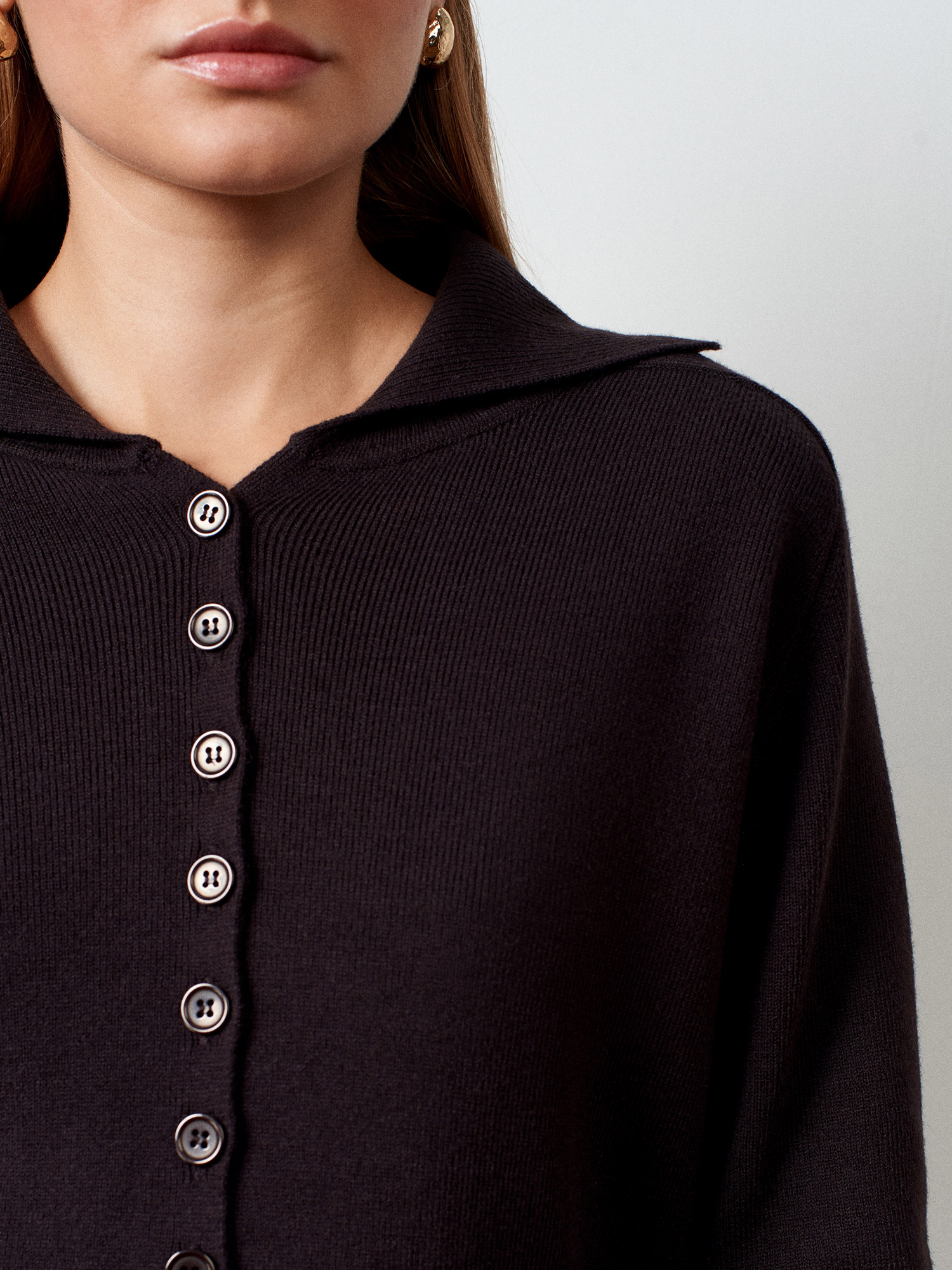 10816 Yün Karışımlı Düğmeli Triko Kazak-Koyu Kahve
