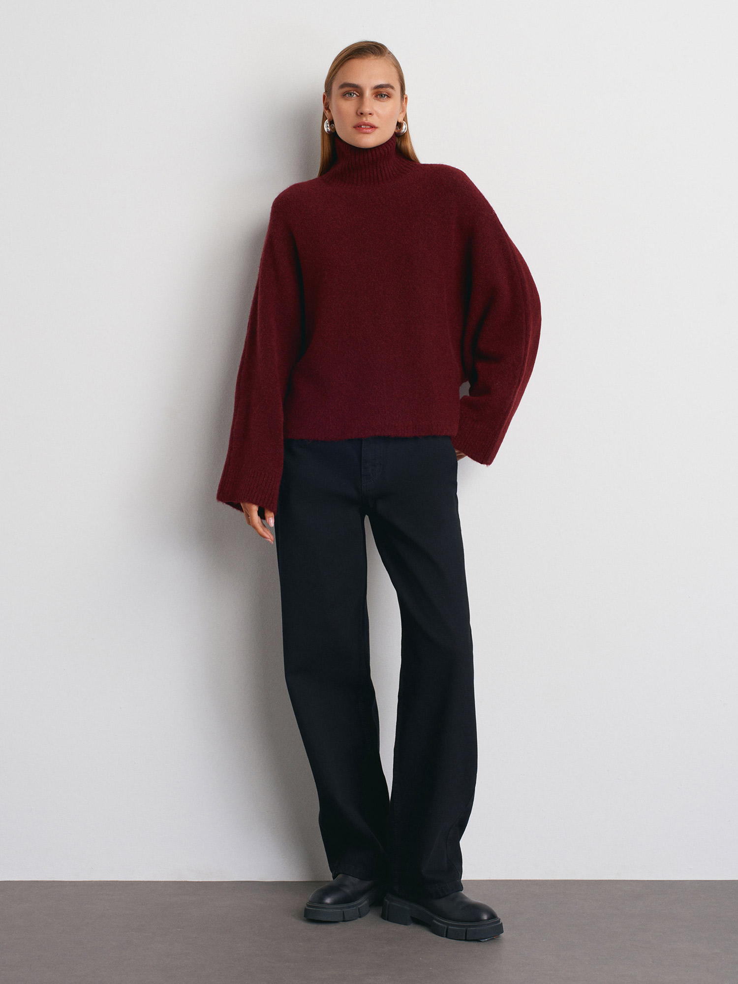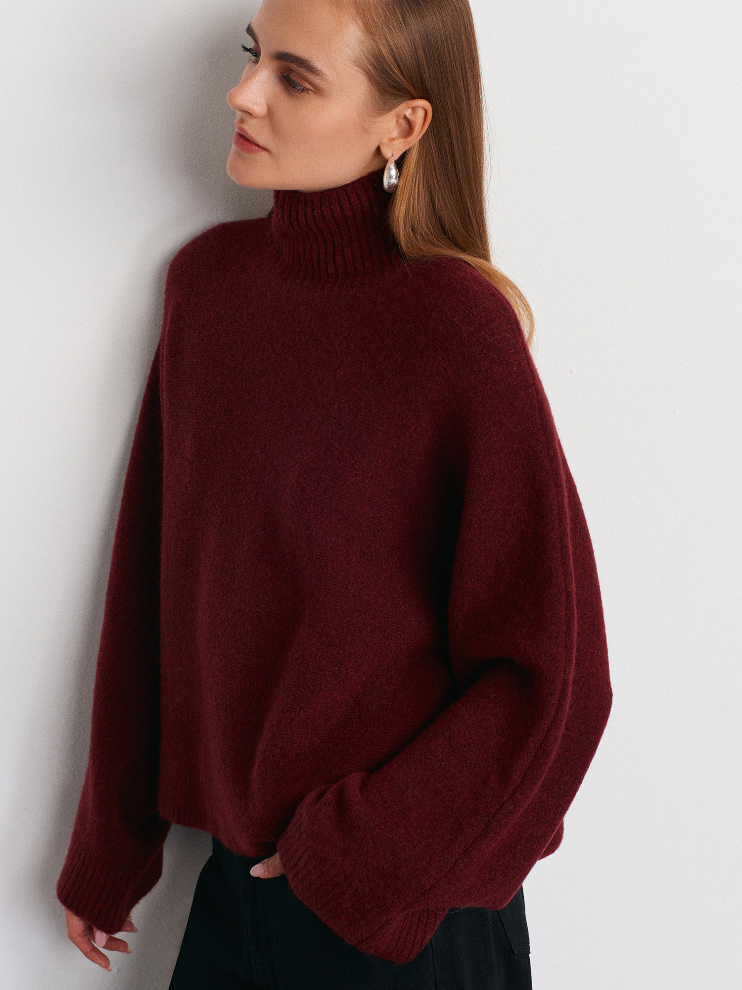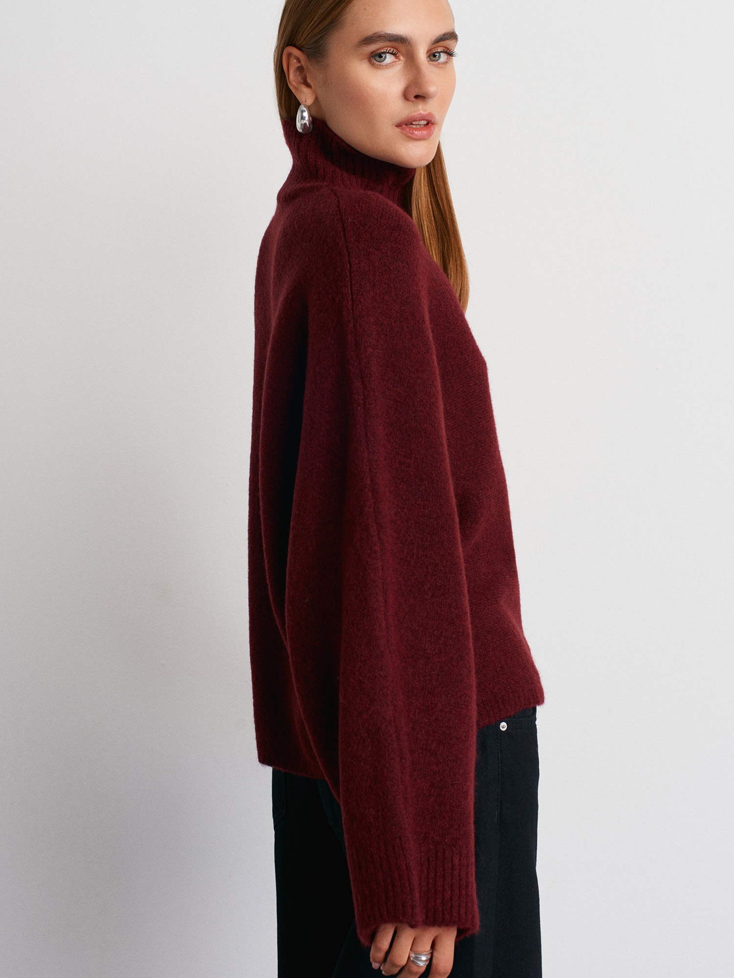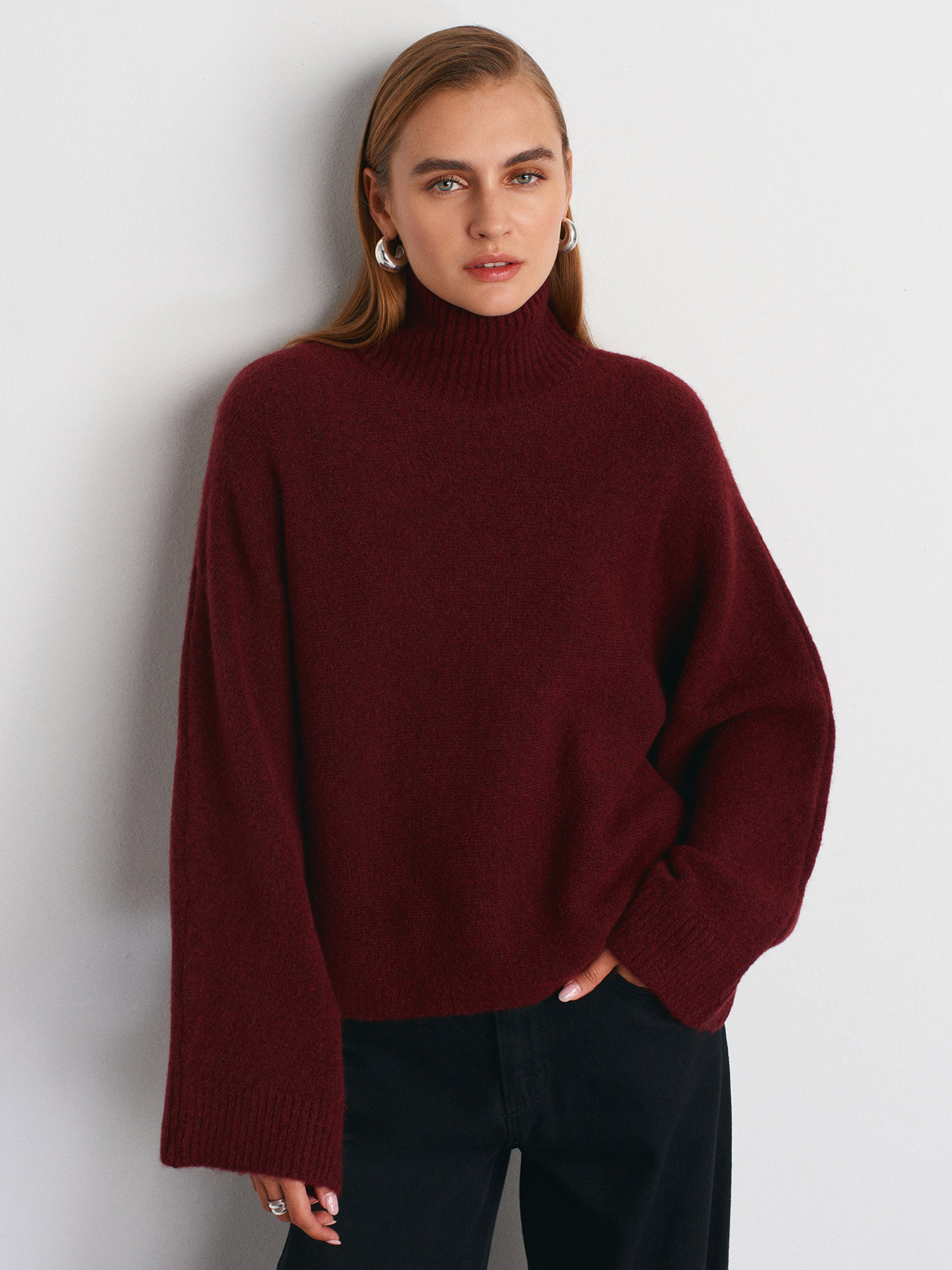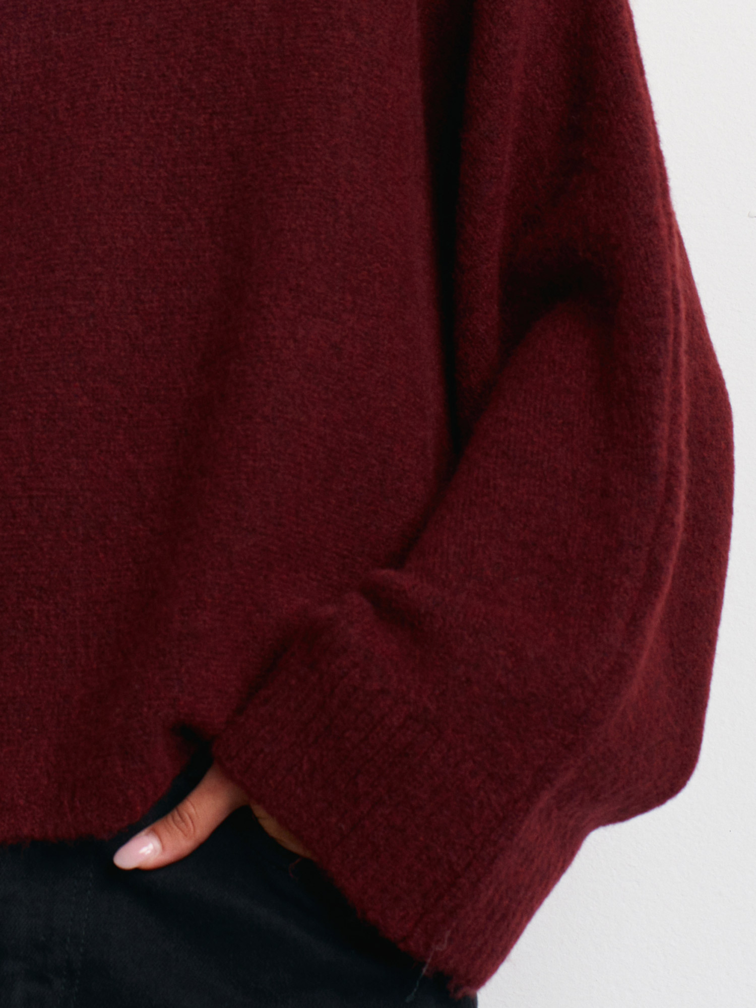 10817 Yarasa Kol Yün Karışımlı Triko Kazak-Bordo M.