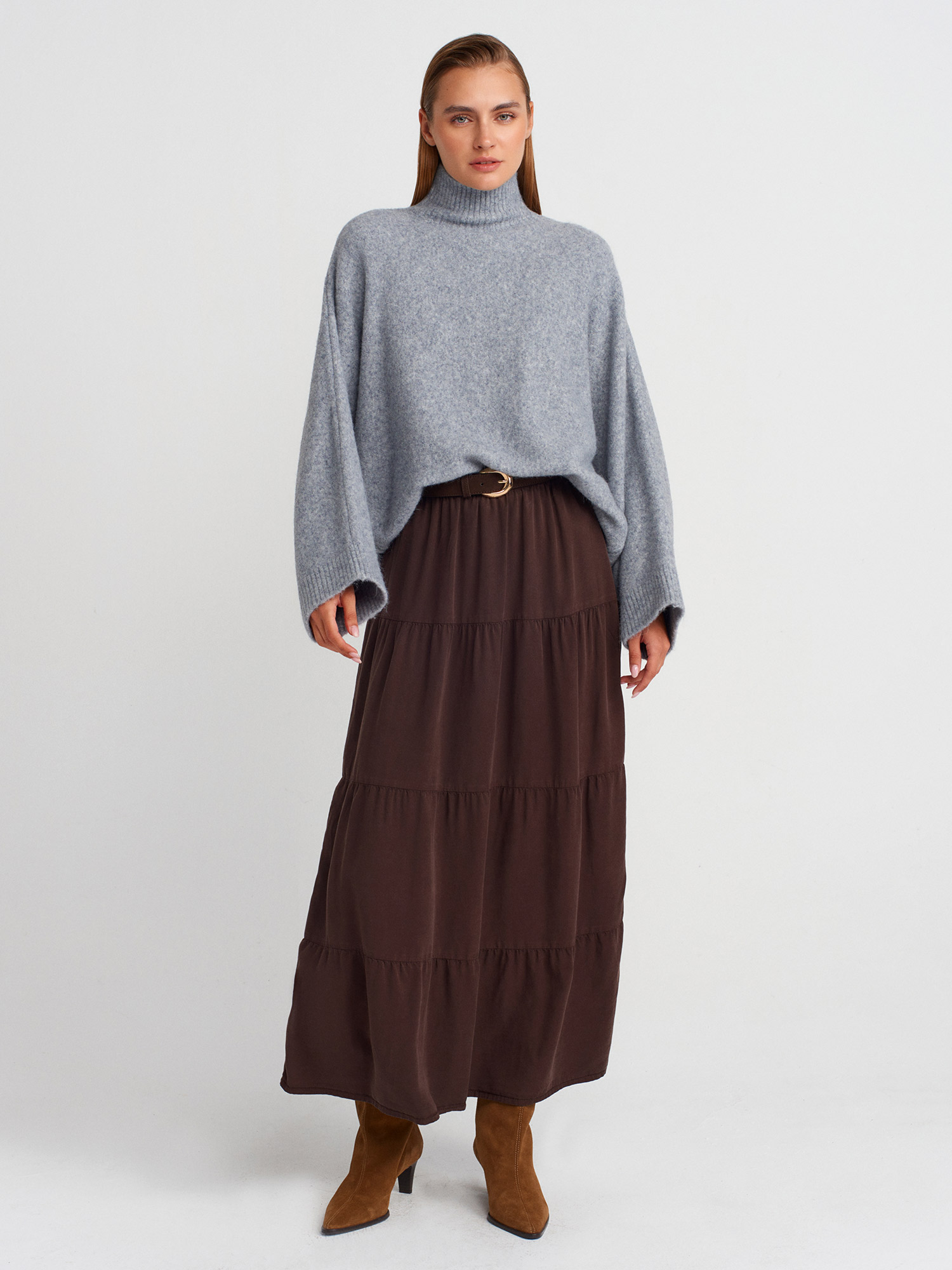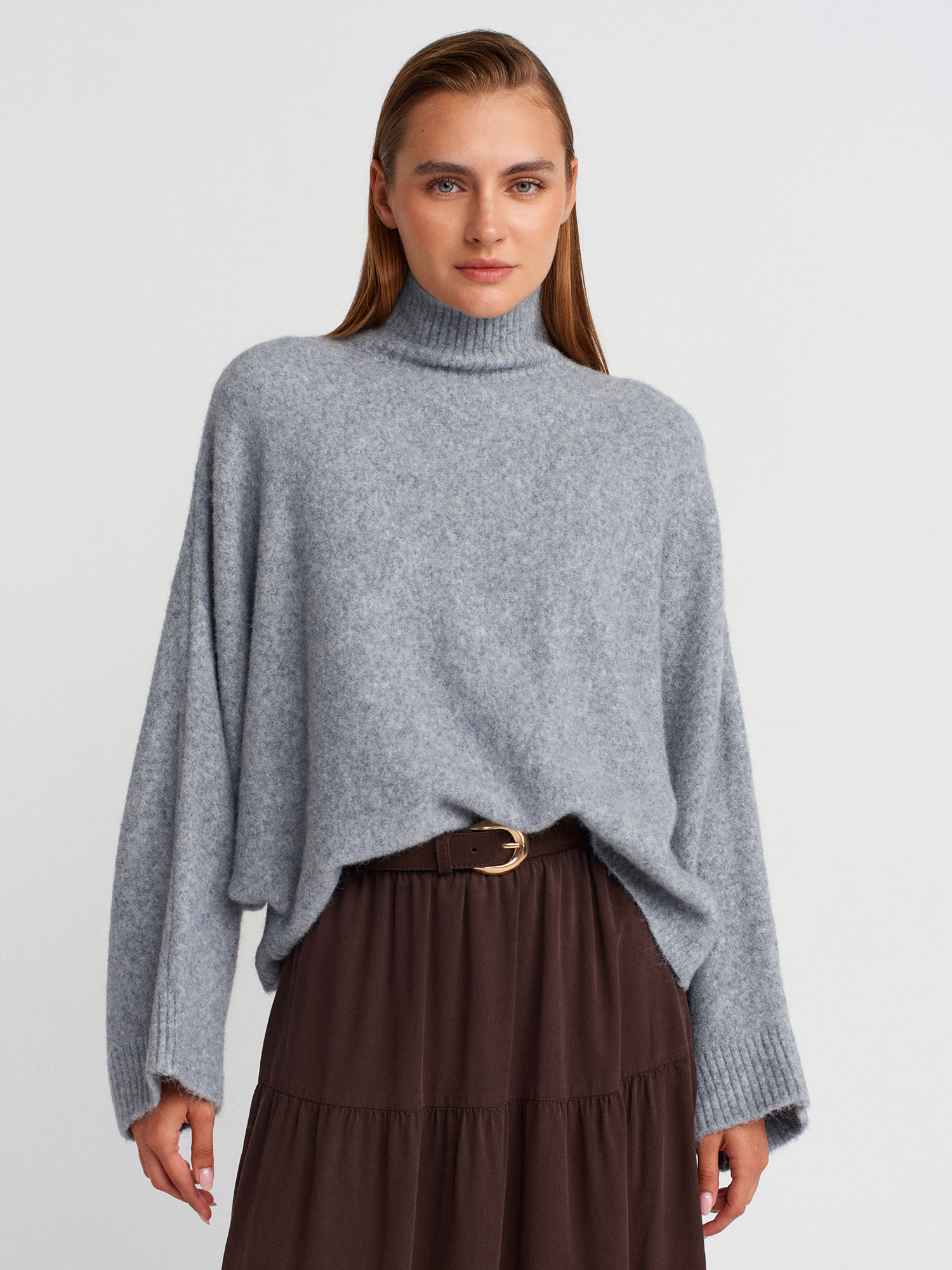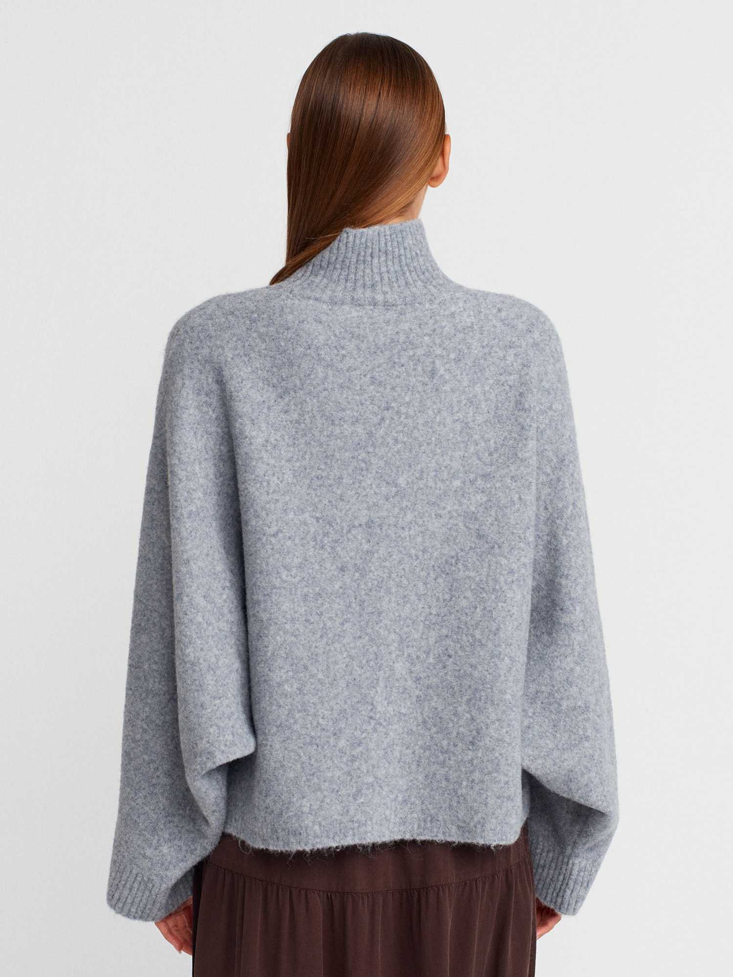 10817 Yarasa Kol Yün Karışımlı Triko Kazak-K.Gri Mel.
