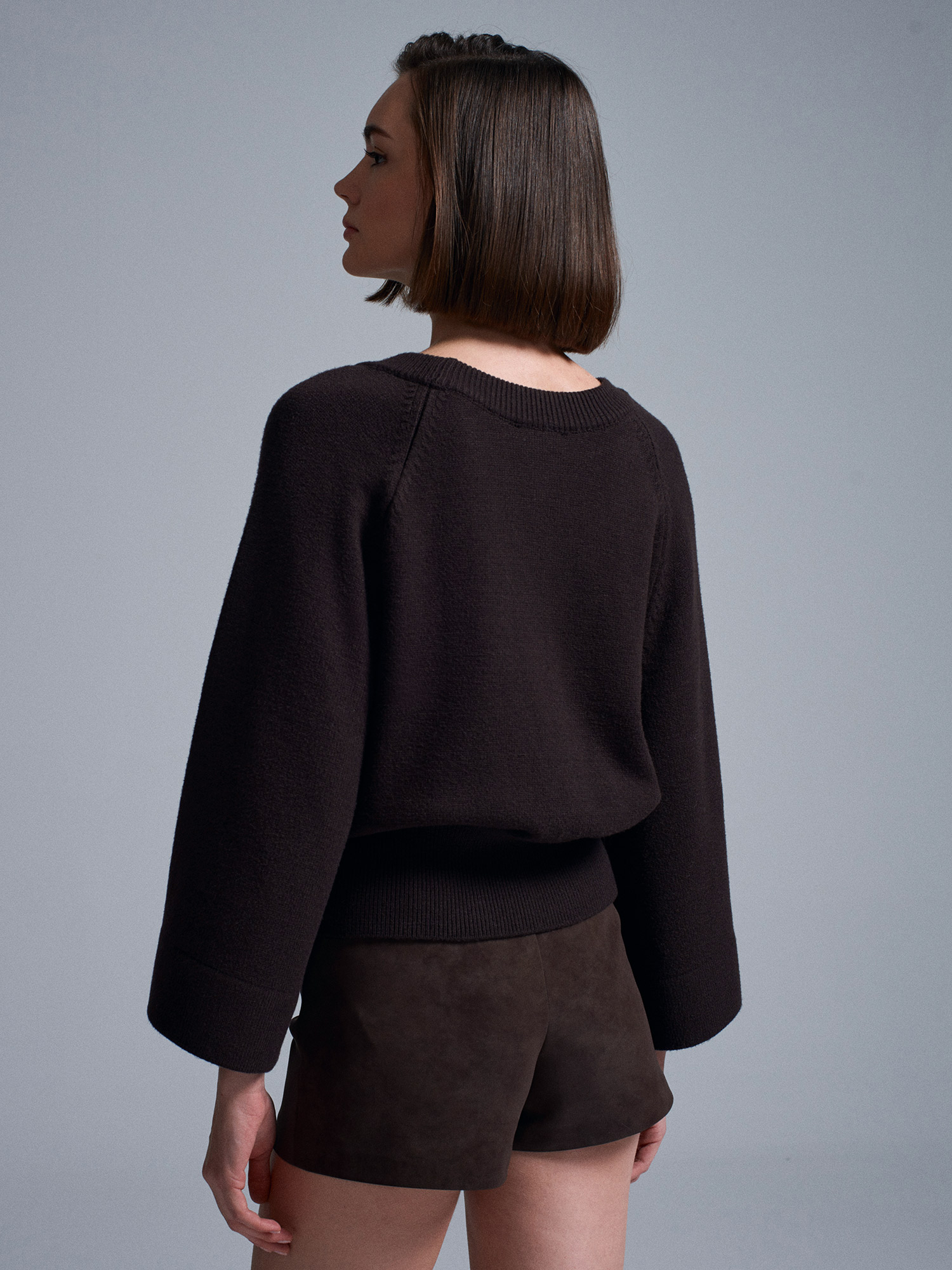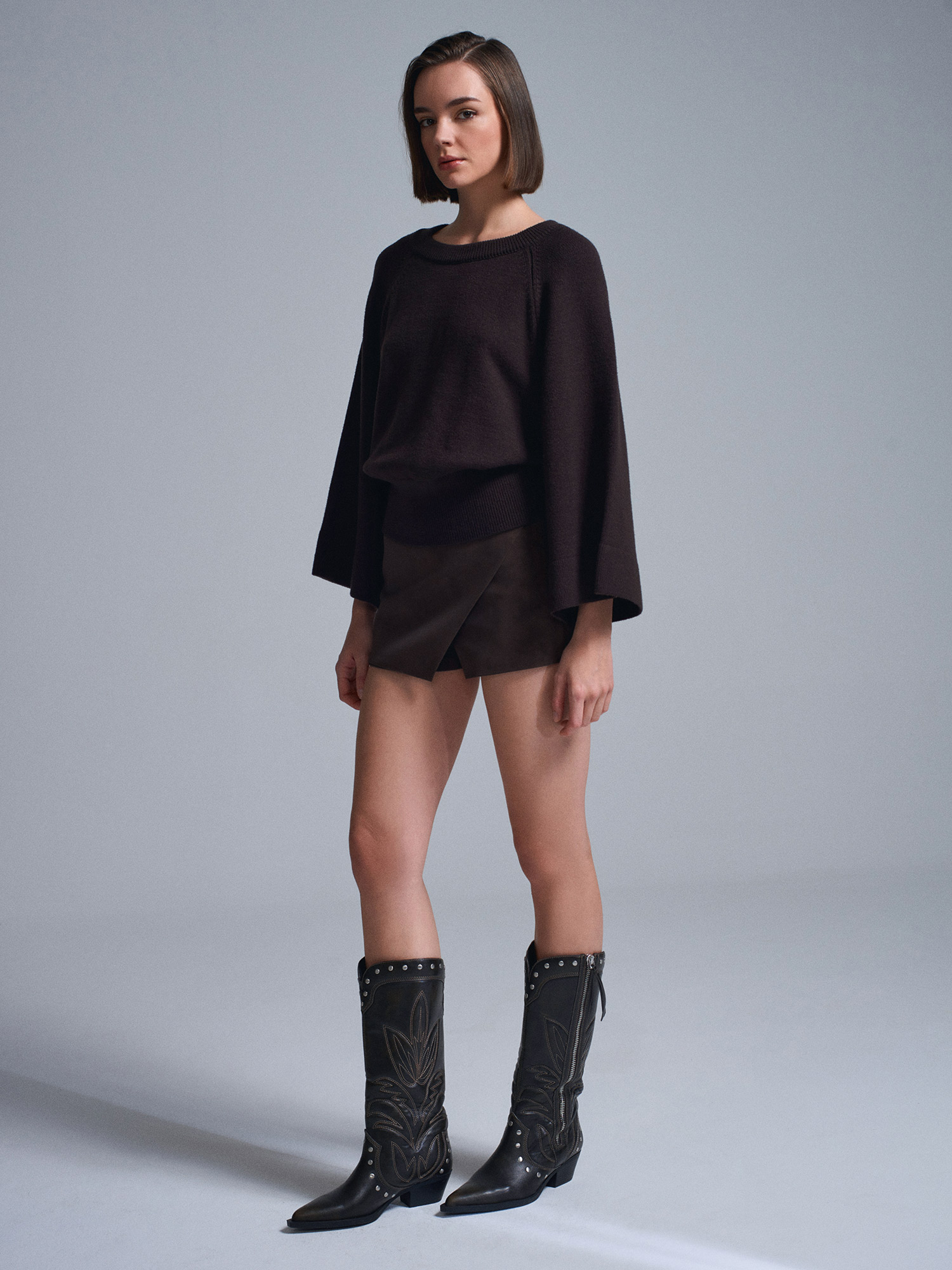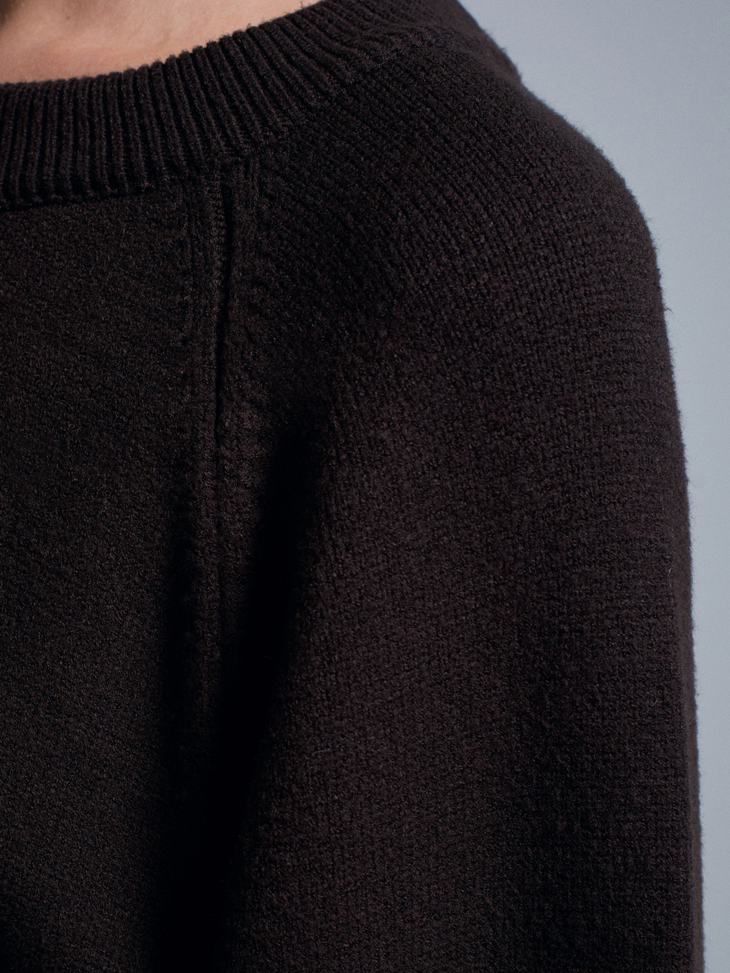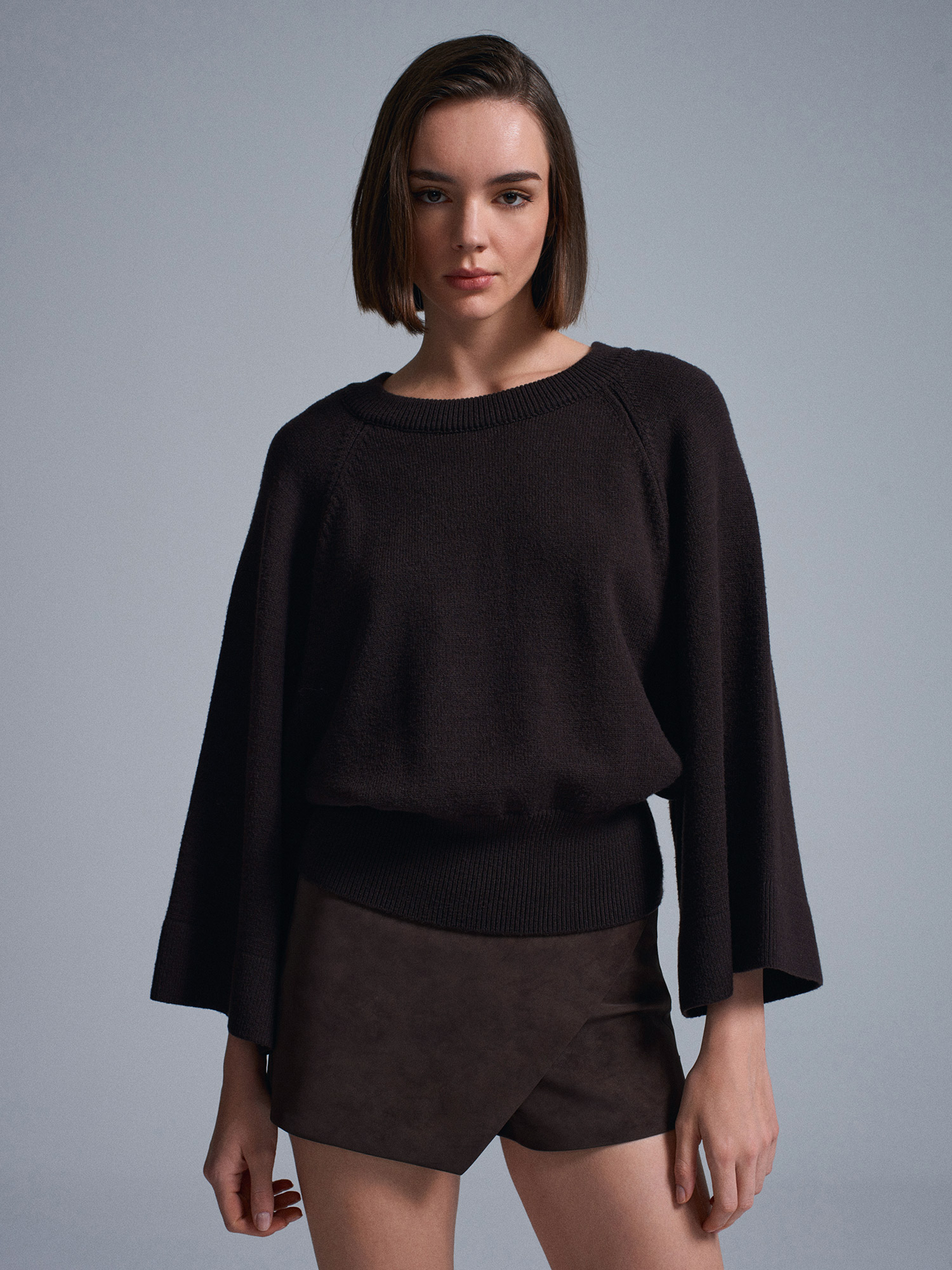 10818 Bisiklet Yaka Geniş Kol Triko Kazak-Koyu Kahve